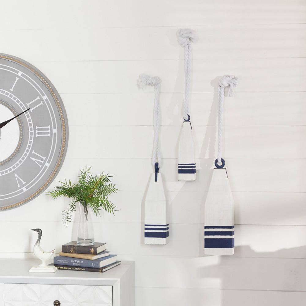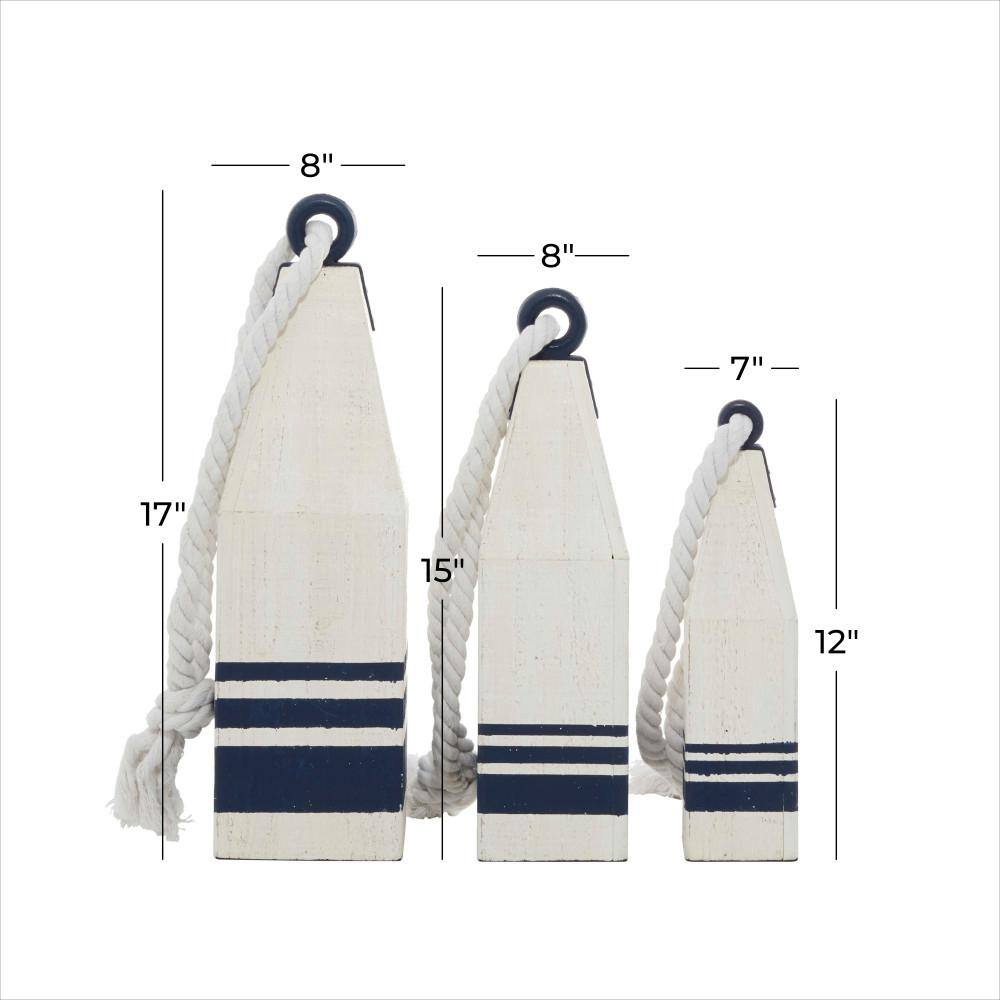 Litton Lane White Wood Handmade Buoy Sculpture with Rope Accents (Set of 3)