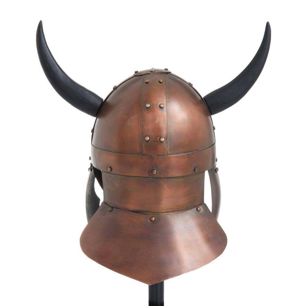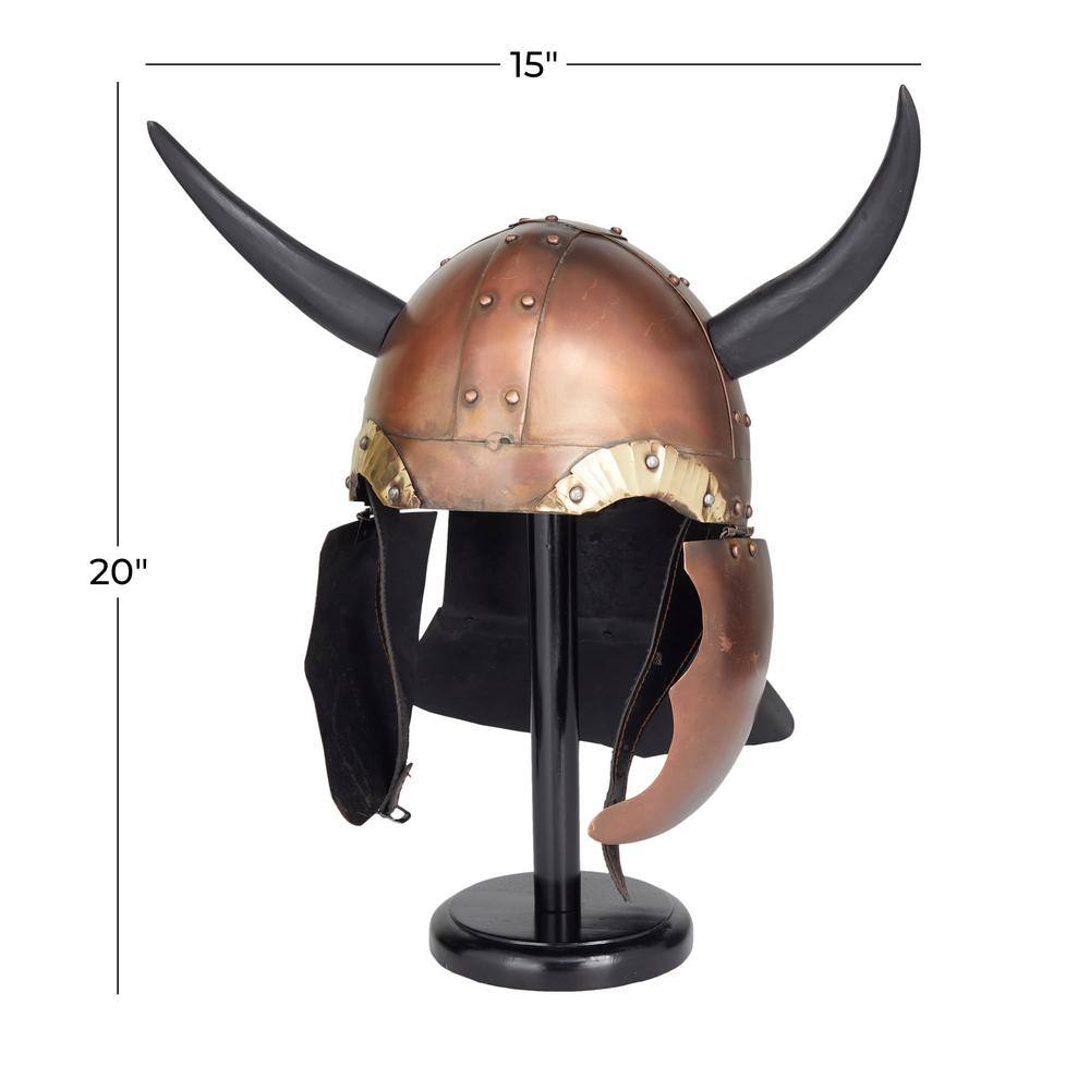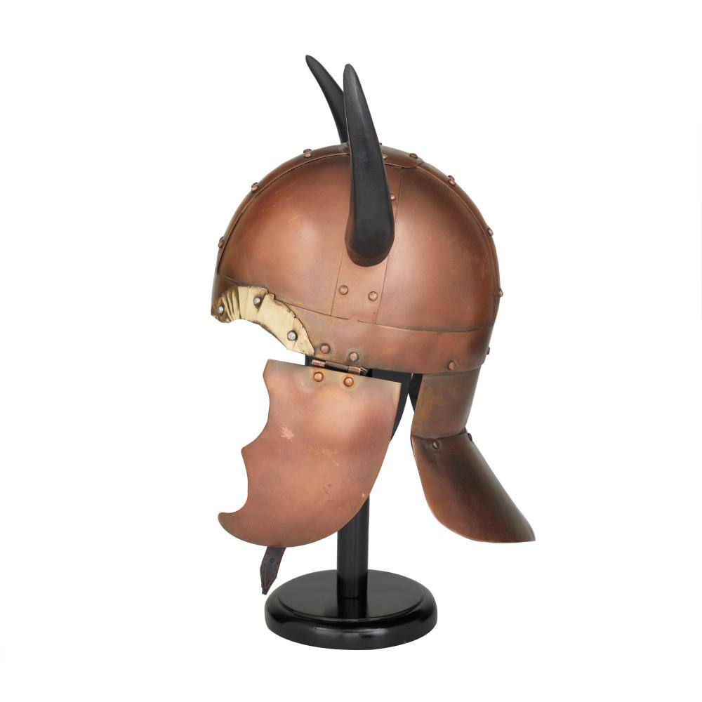 Litton Lane Copper Metal Replica Medieval Viking Helmet with Black Wood Stand