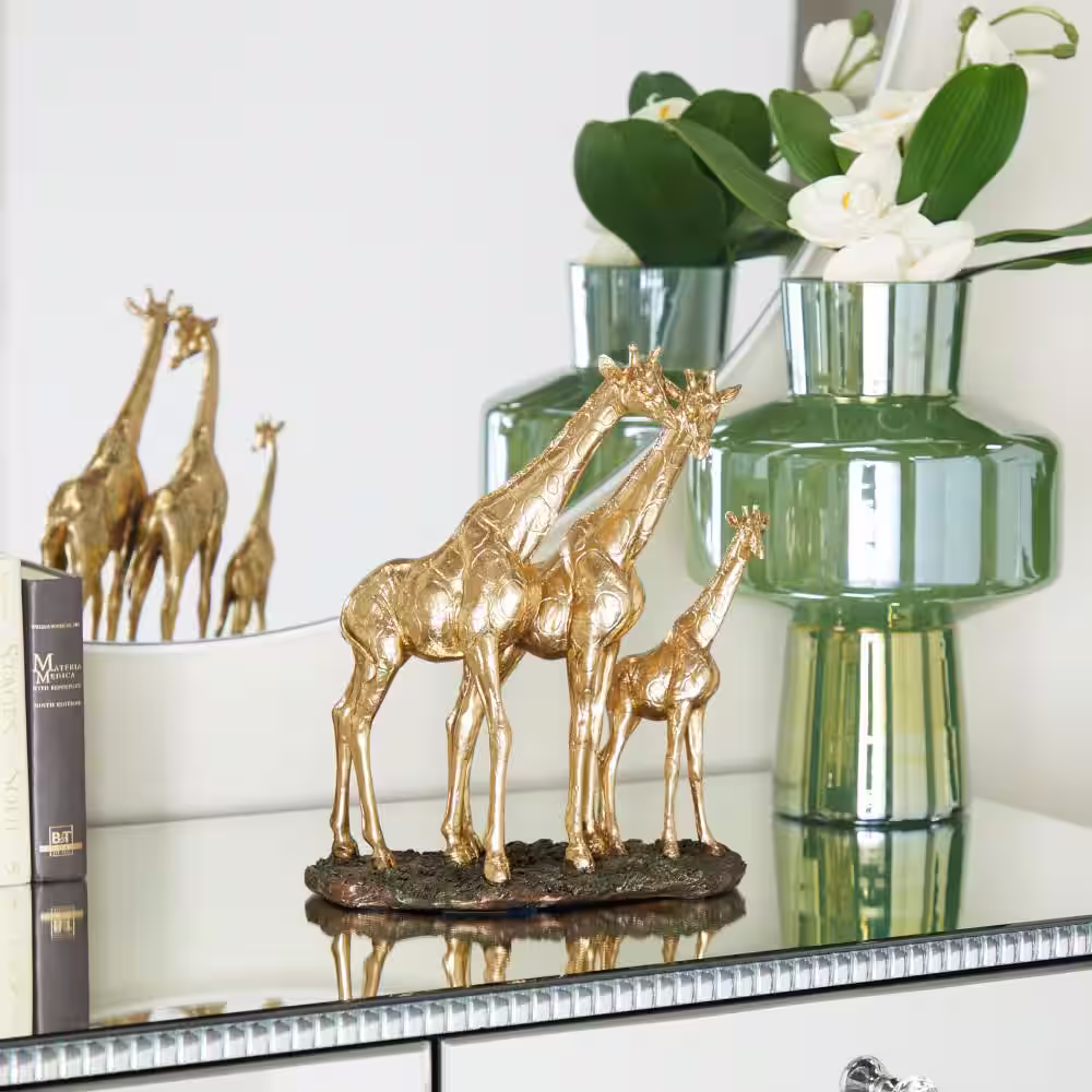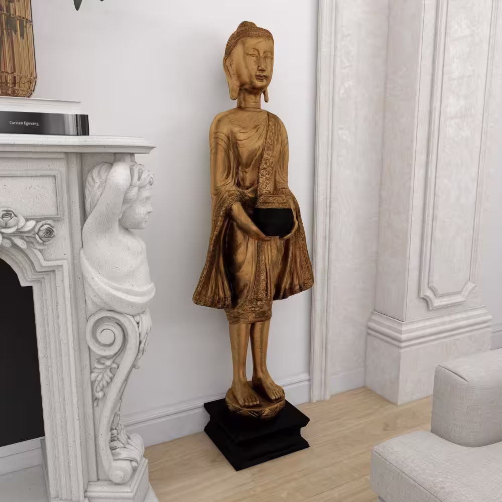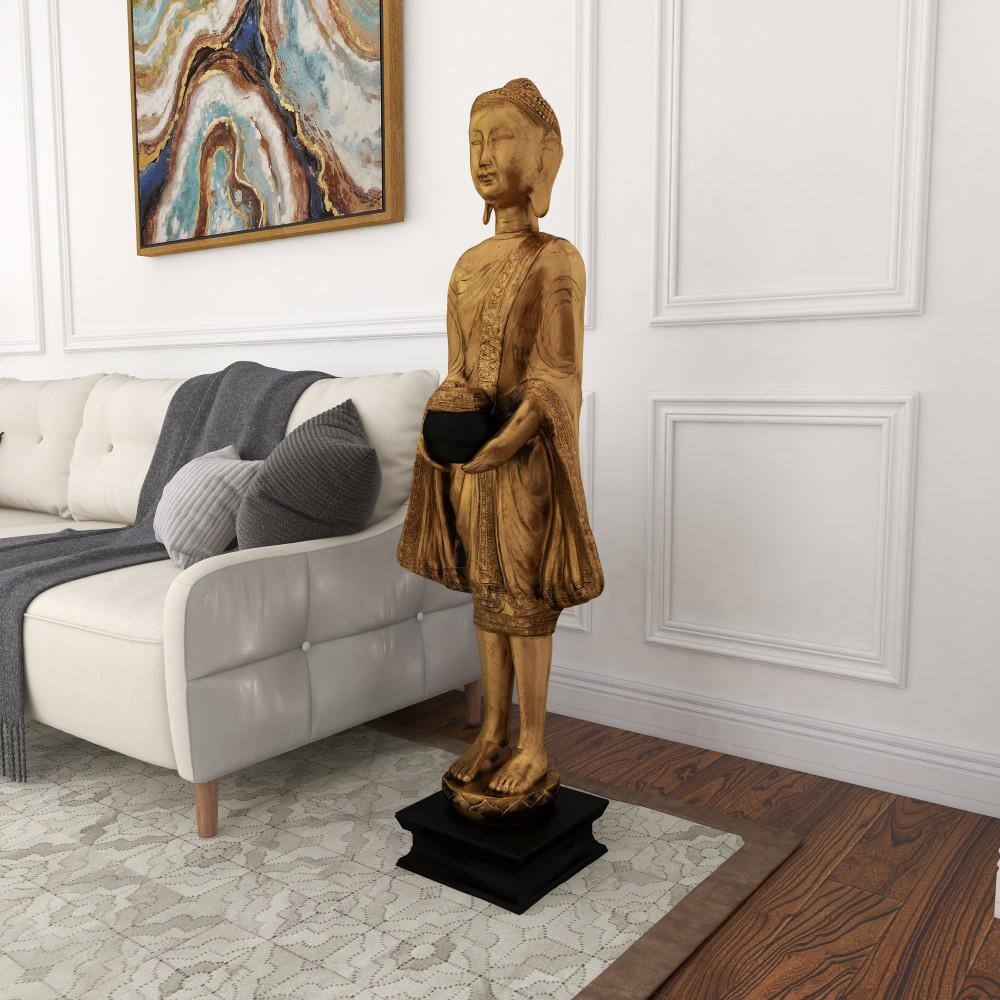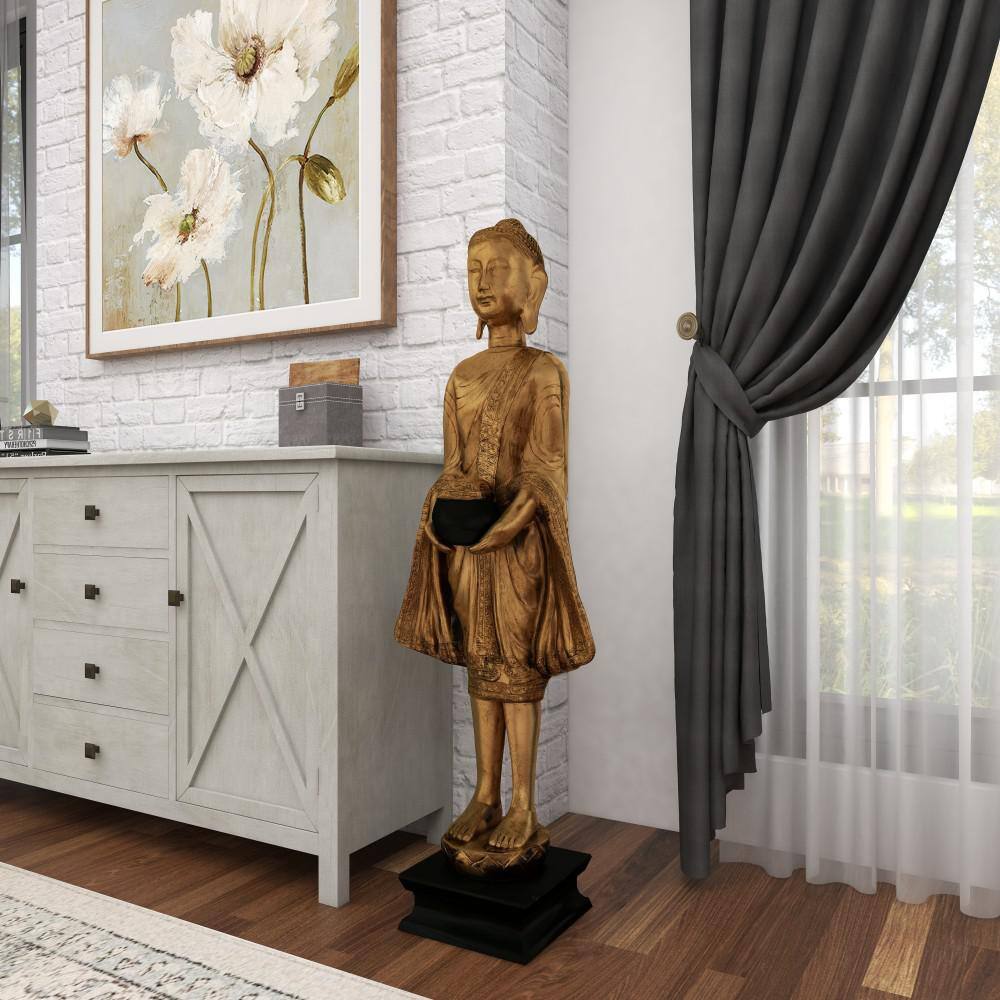 Litton Lane Gold Resin Meditating Buddha Sculpture with Engraved Carvings and Relief Detailing