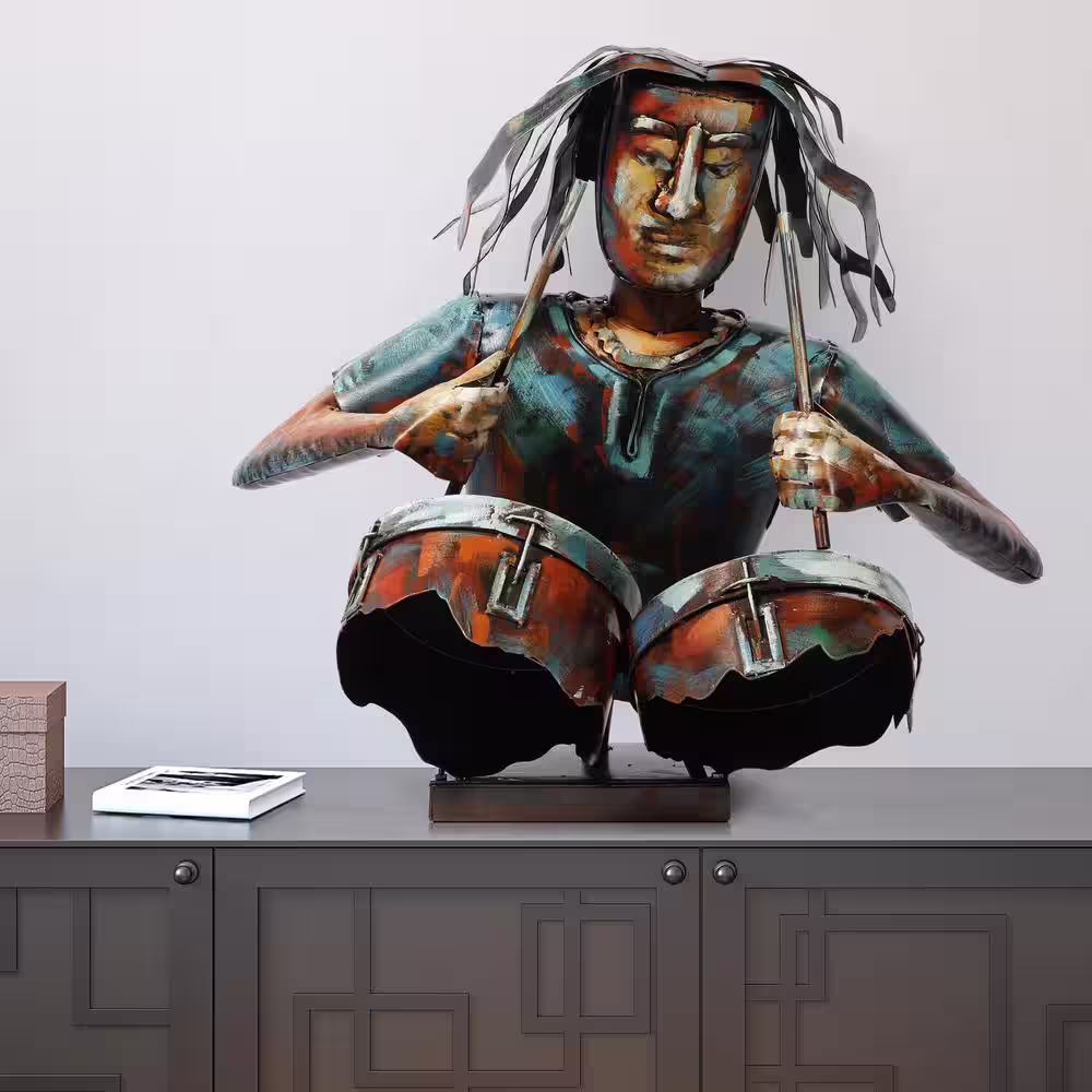 Empire Art Direct "The Drummer" Mixed Media Inregular Iron Hand-Pinted Colorful Art Sculpture