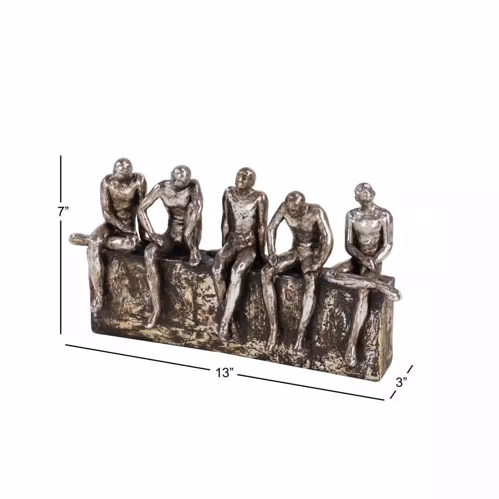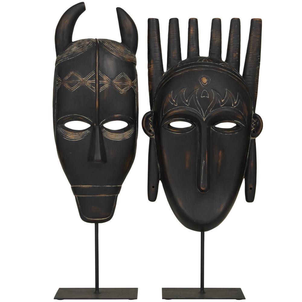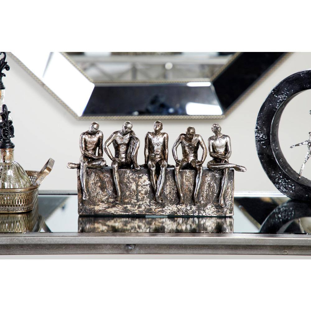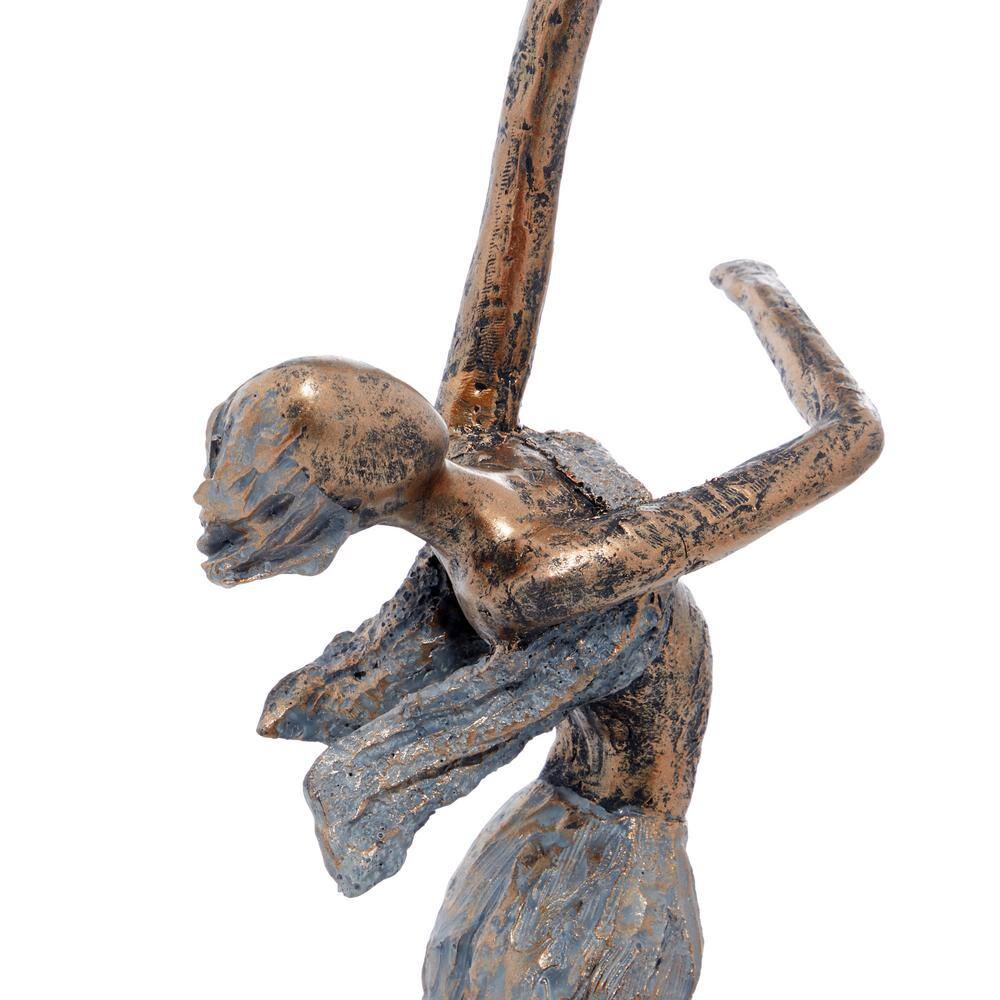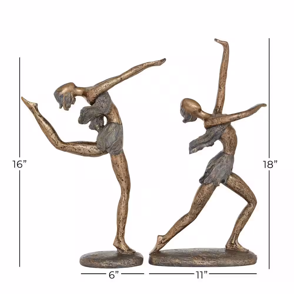 Litton Lane 11 in. x 18 in. Small Table Decor Stone Dancer Statues with Distressed Gold and Grey (Set of 2)