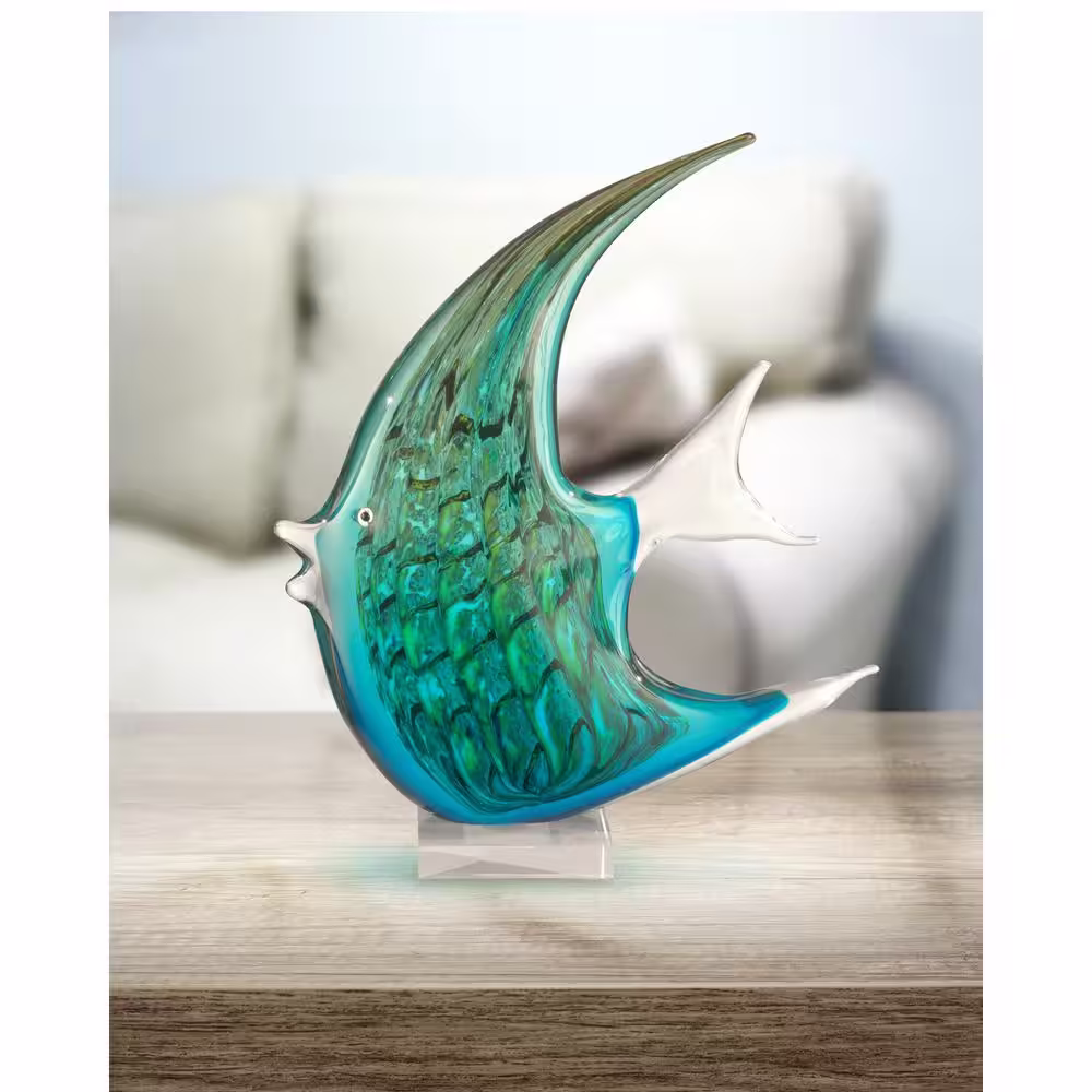 Dale Tiffany 16 in. Aqua Fish Handcrafted Irregular Art Glass Figurine