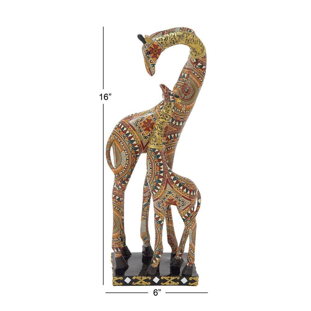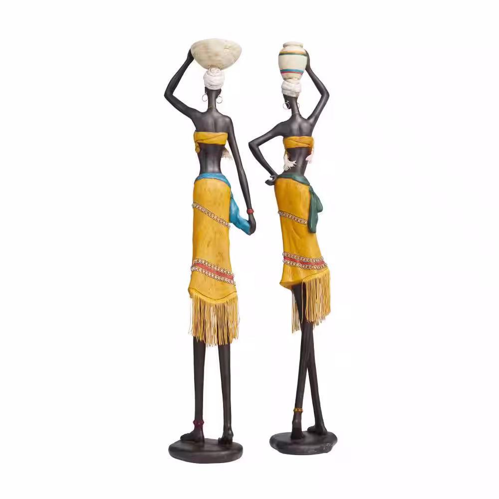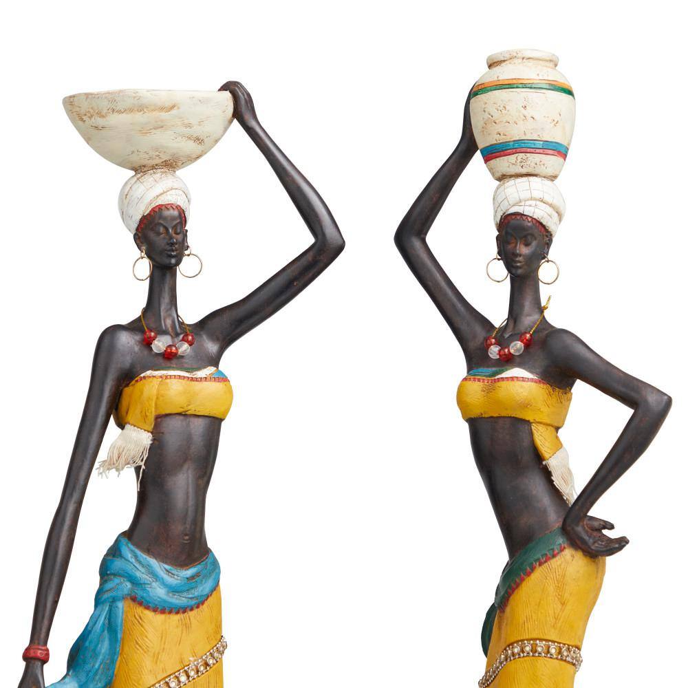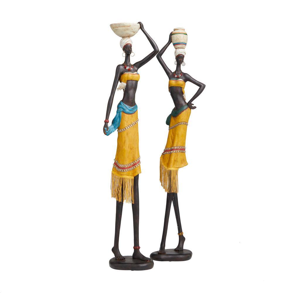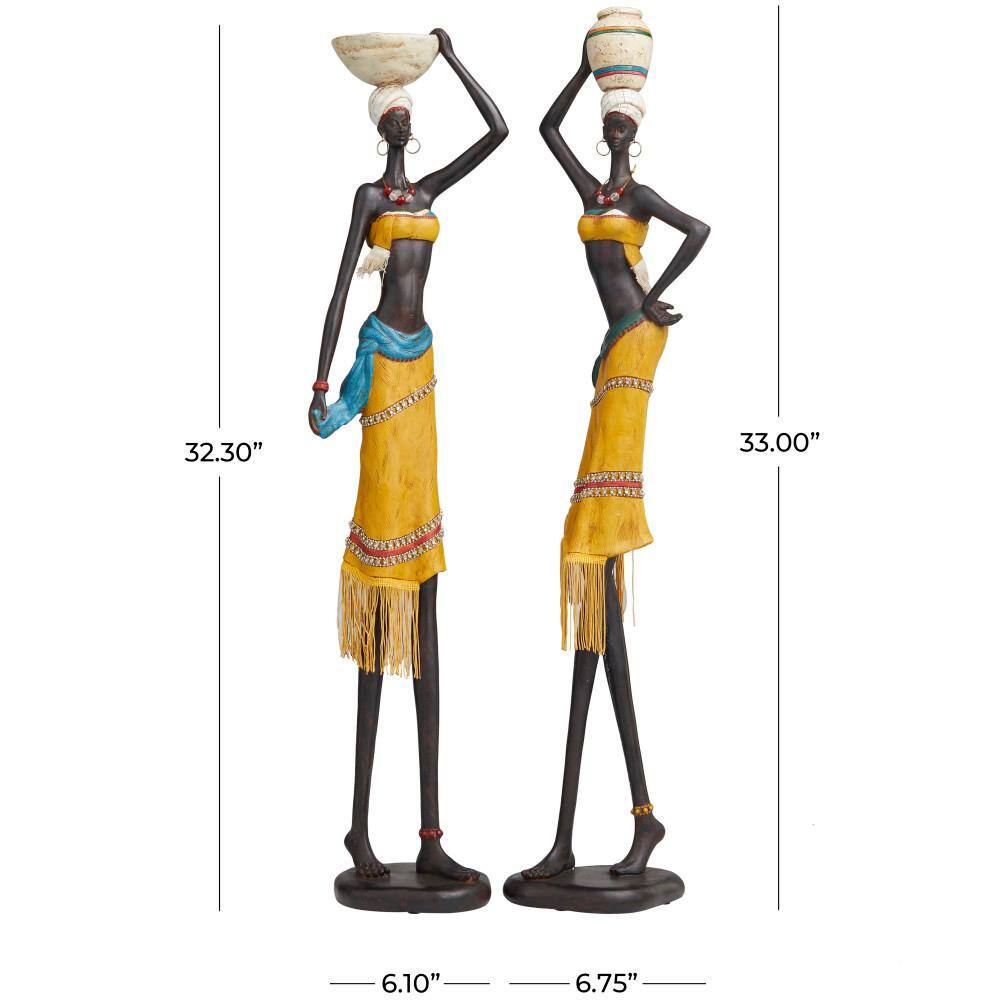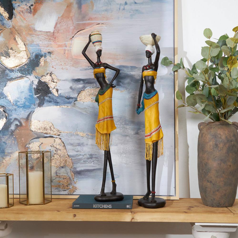 Litton Lane Yellow Resin Handmade African Woman People Sculpture with Water Jugs and Jeweled Details (Set of 2)
