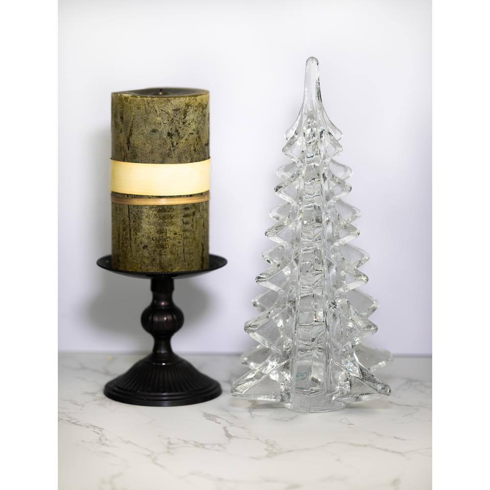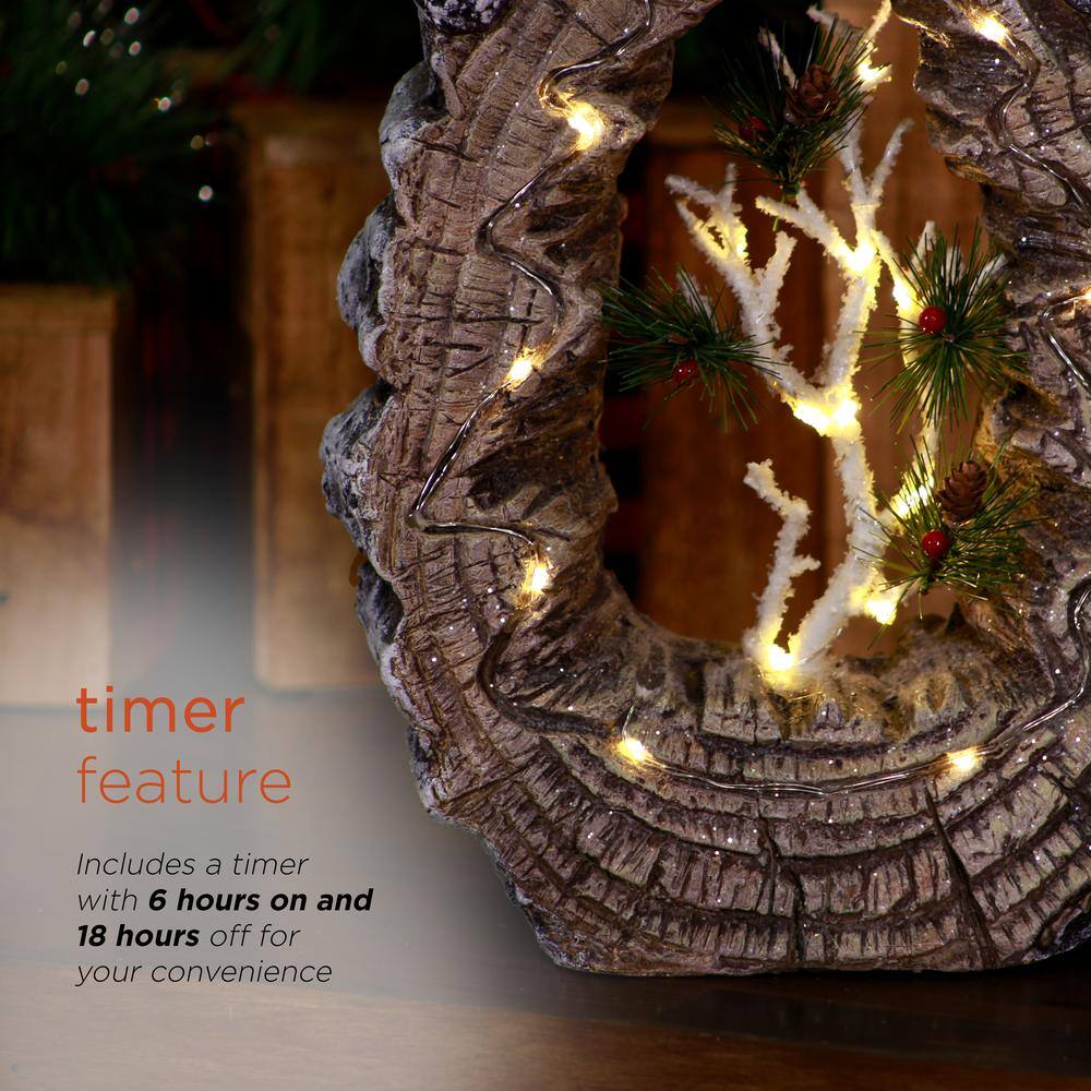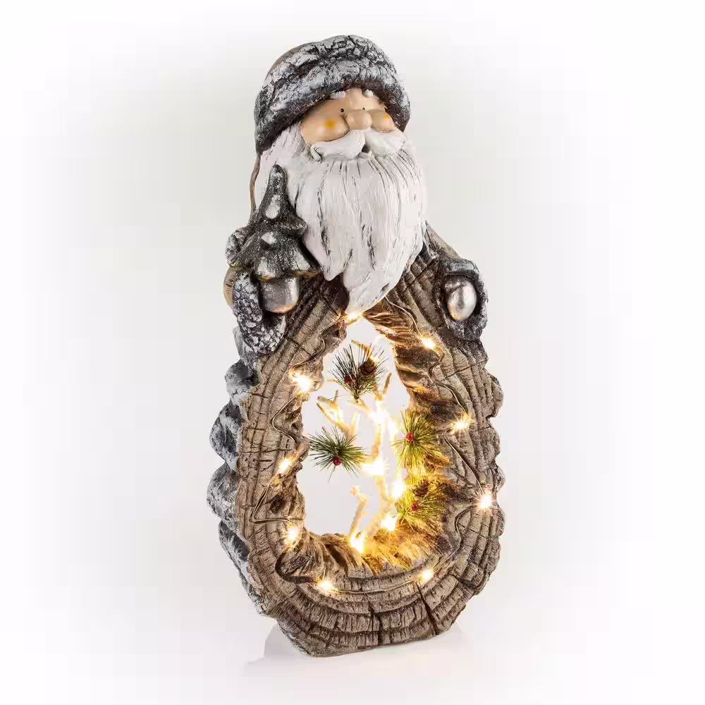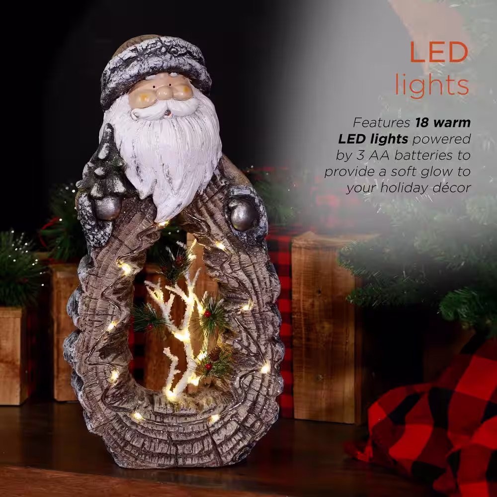 Alpine Corporation 21 in. Tall Santa Statue with Carved Wood Look and LED Lights