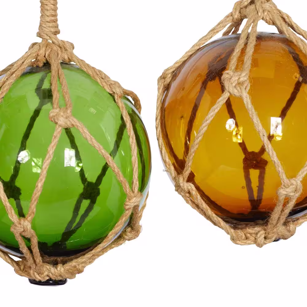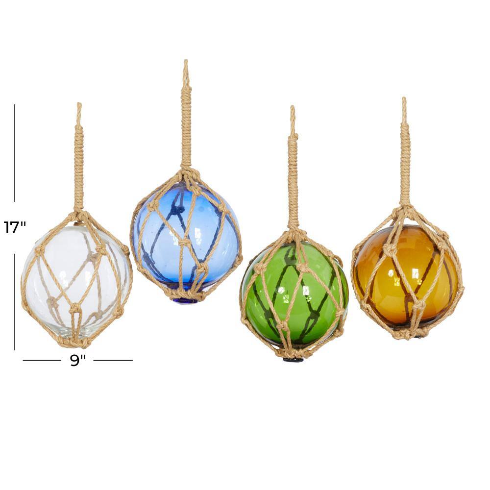 Litton Lane Multi Colored Glass Buoy Sculpture with Rope Accents (Set of 4)
