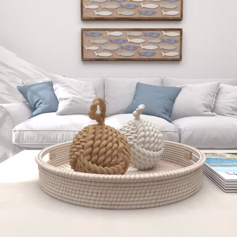 Litton Lane Multi Colored Jute Knot Sculpture with Hanging Loop (Set of 2)