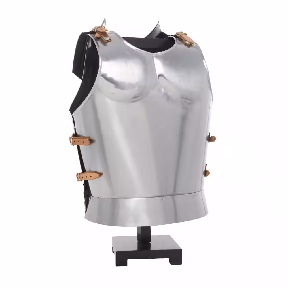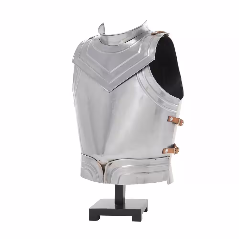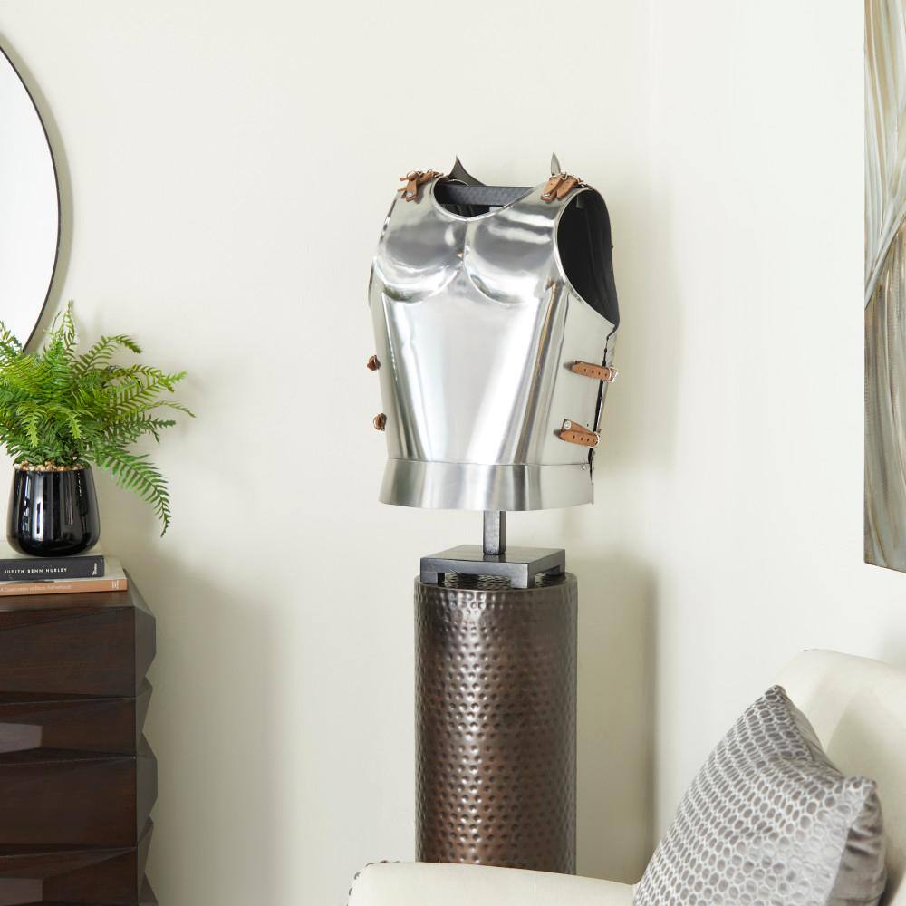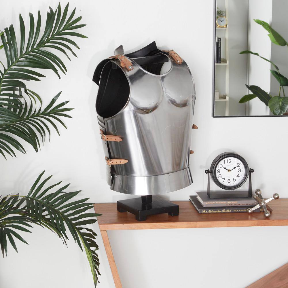 Litton Lane Silver Metal Replica Medieval Armour with Black Wood Stand
