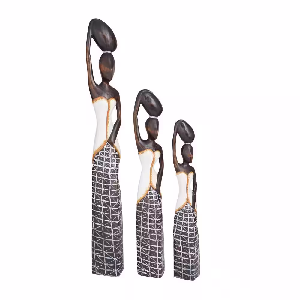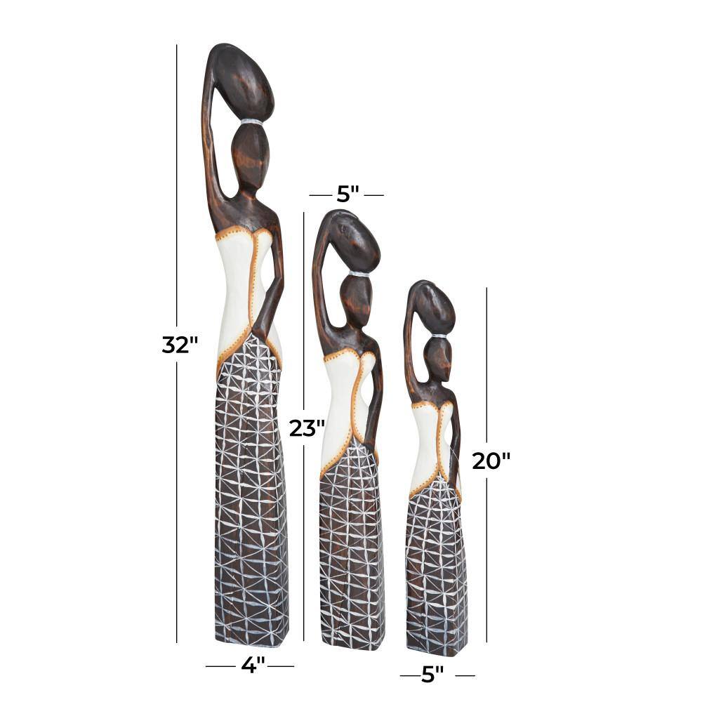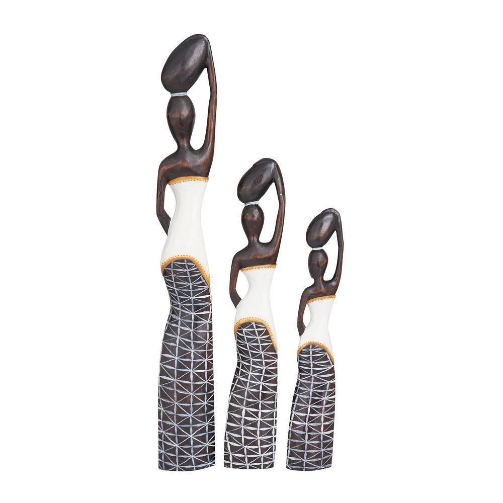 Litton Lane Brown Wood Standing African Woman Sculpture with Baskets on Their Heads (Set of 3)