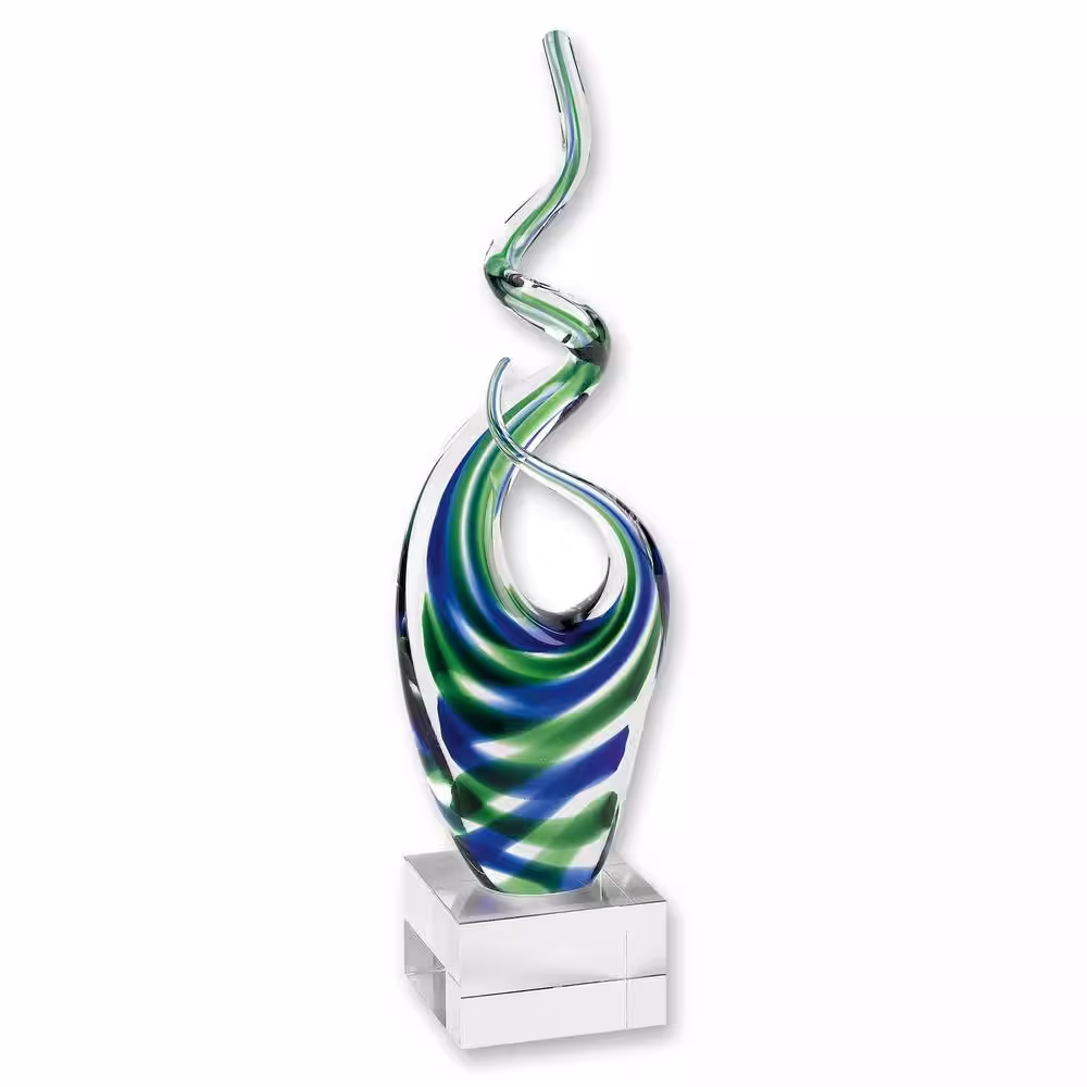 Badash Crystal Ocean - Blue /Green Murano Style Art Glass 14 in. Abstract Centerpiece