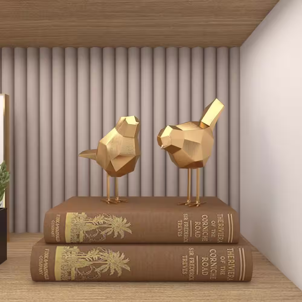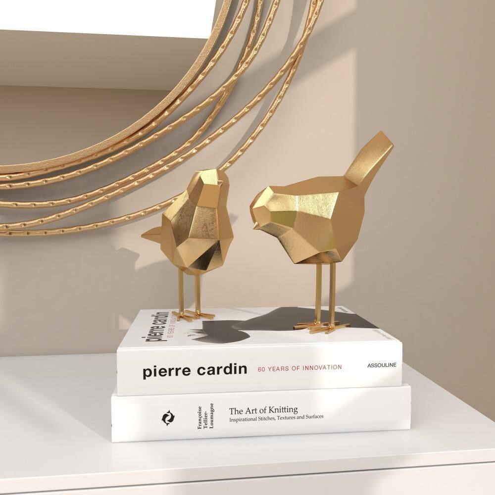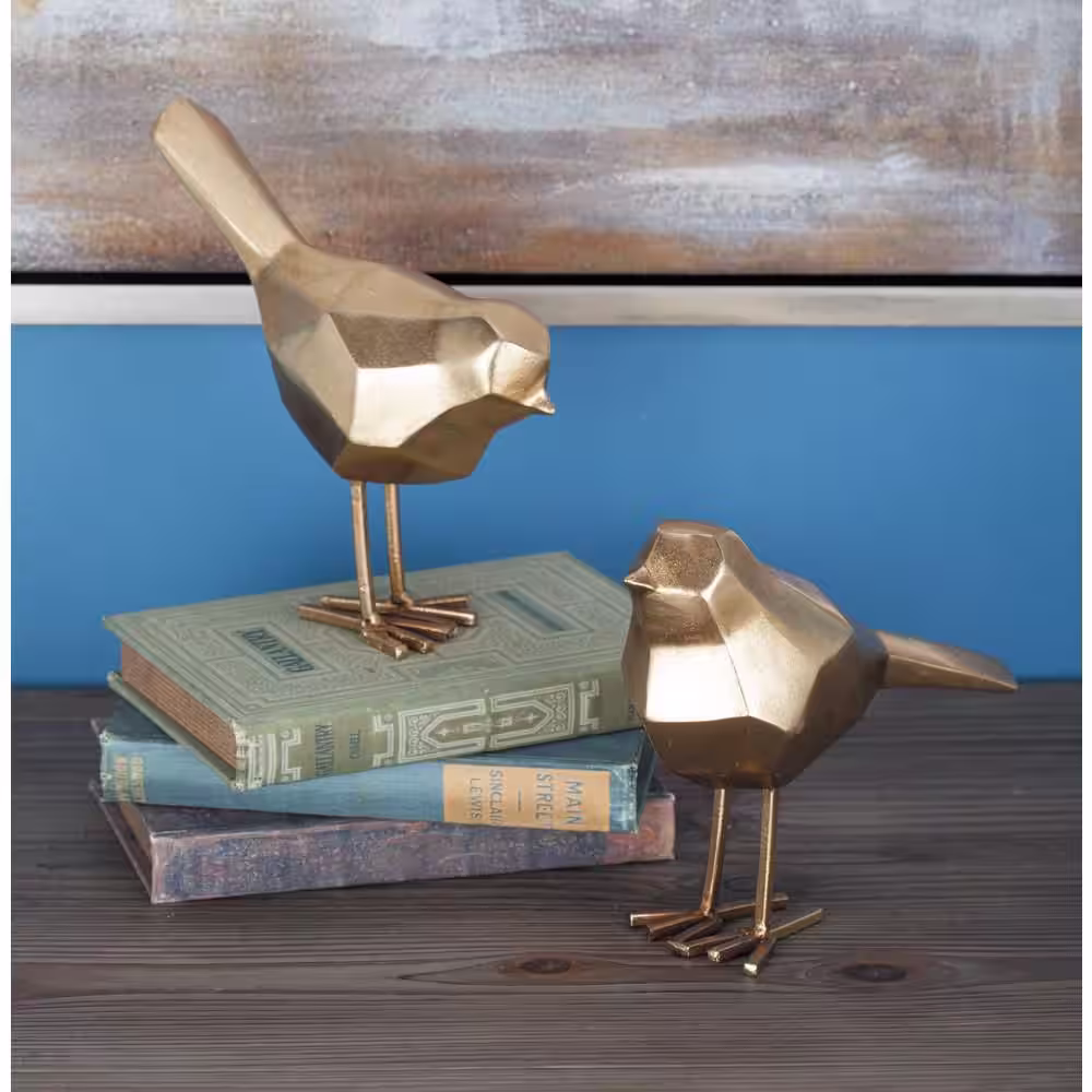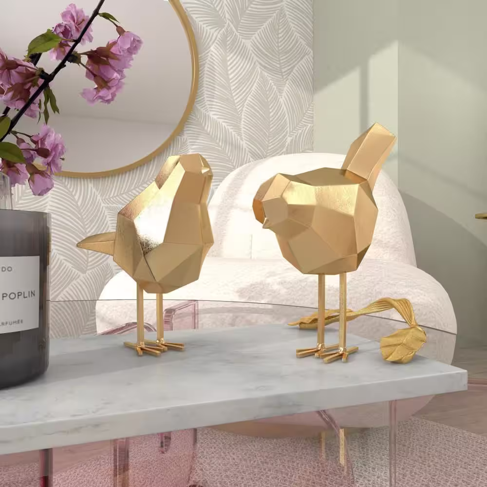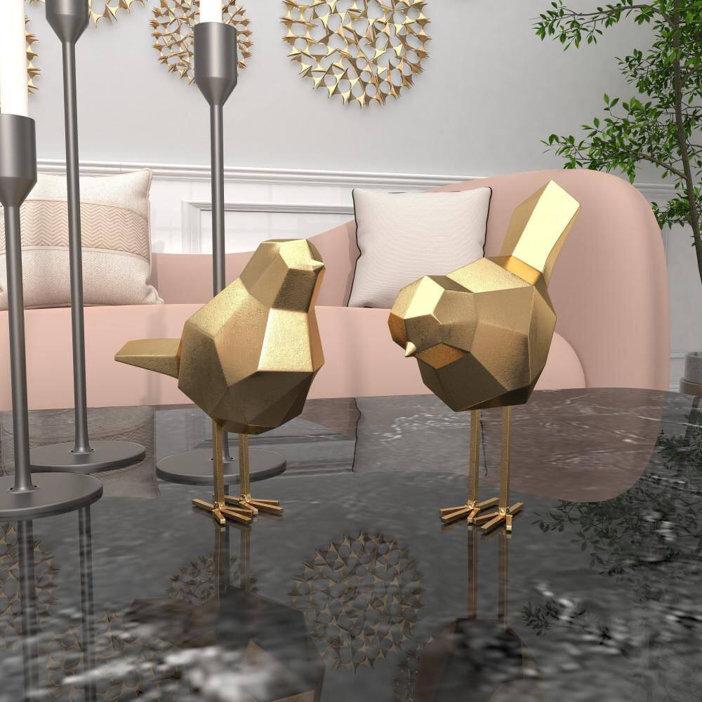 CosmoLiving by Cosmopolitan Gold Polystone Bird Sculpture with Origami Accents (Set of 2)