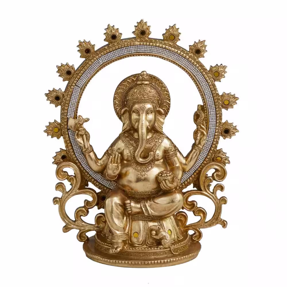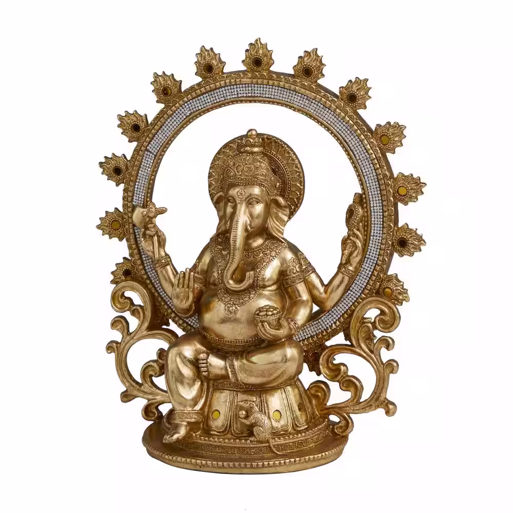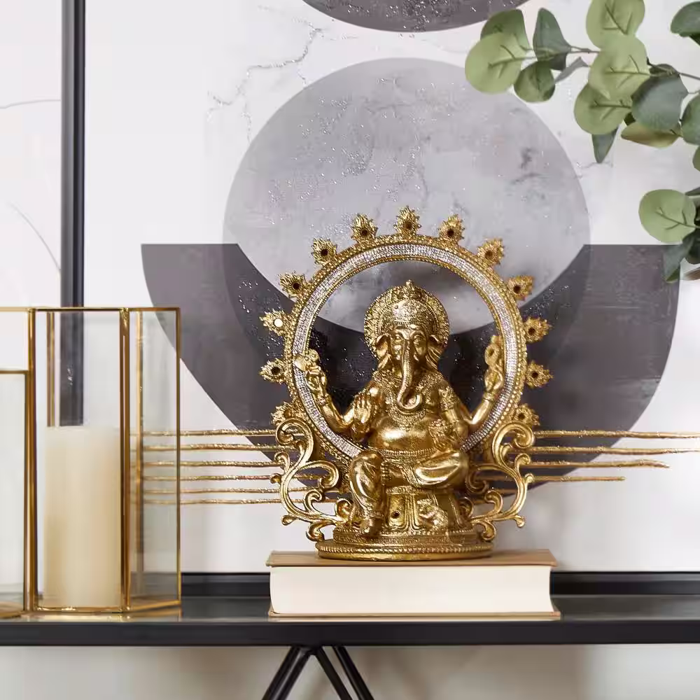Litton Lane Gold Resin Intricately Carved Ganesh Sculpture with Rhinestone Detail