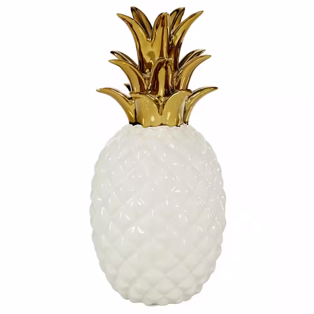 CosmoLiving by Cosmopolitan White Porcelain Pineapple Fruit Sculpture with Gold Leaves
