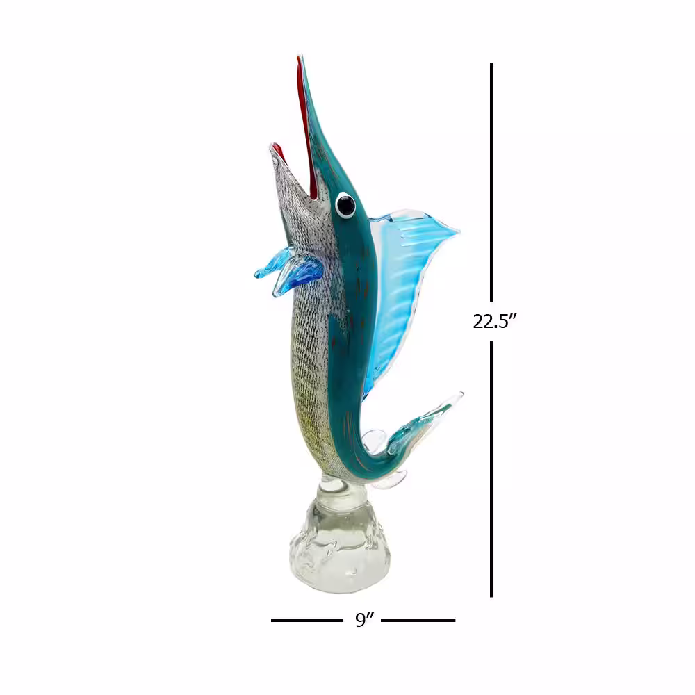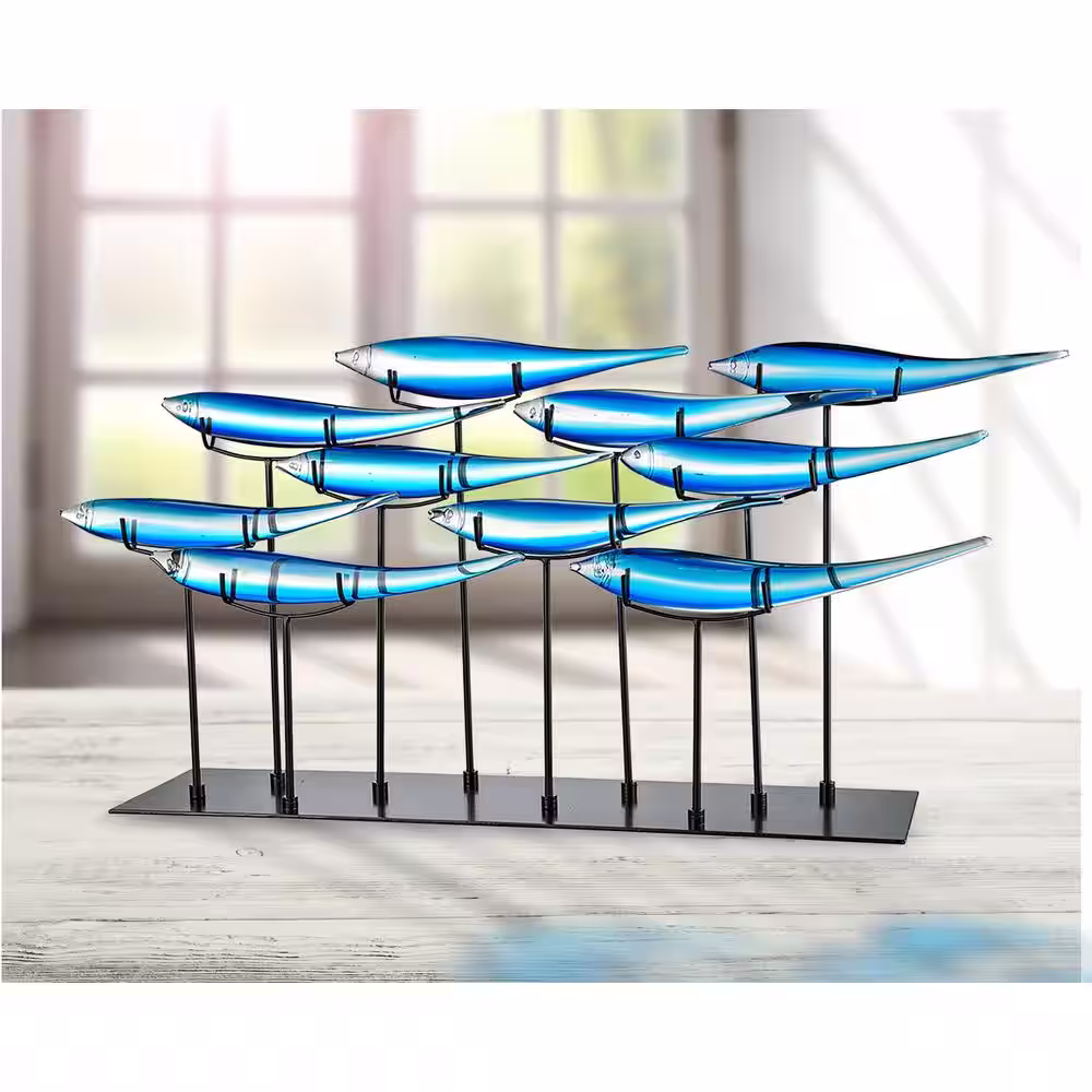 Dale Tiffany 19 in. 10 Blue Fish Handcrafted Irregular Art Glass Figurine