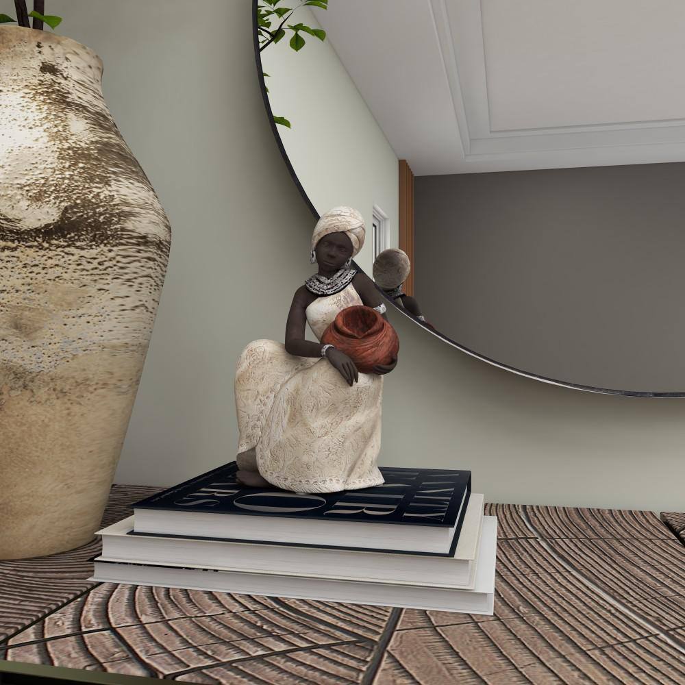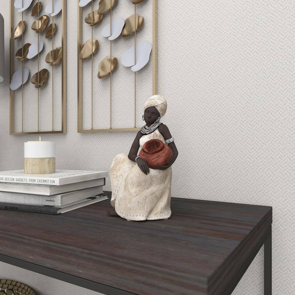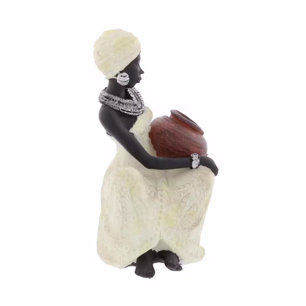 Litton Lane Cream Polystone Sitting African Woman Sculpture with Red Water Pot