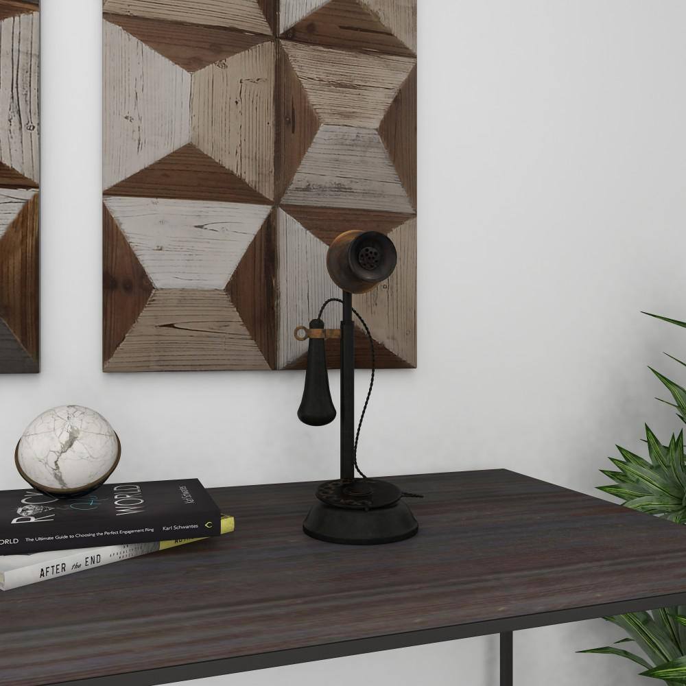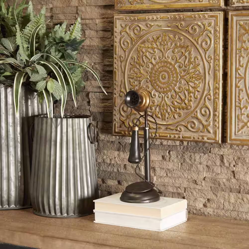 Litton Lane Black Metal Decorative Vintage Style Telephone Sculpture with Tiered Base and Coil Wire Detailing