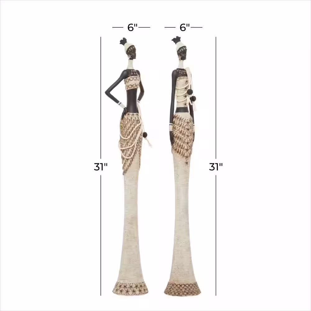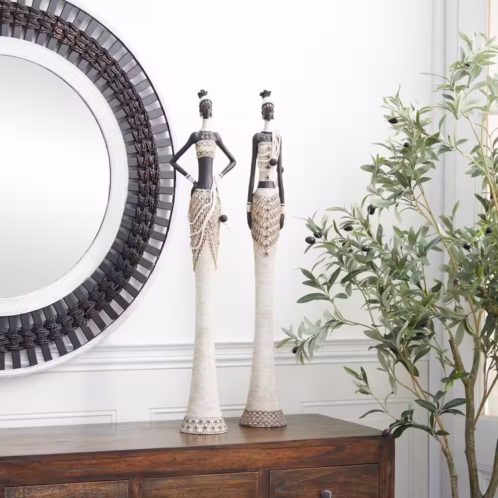 Litton Lane White Polystone Standing African Woman Sculpture with Intricate Details (Set of 2)