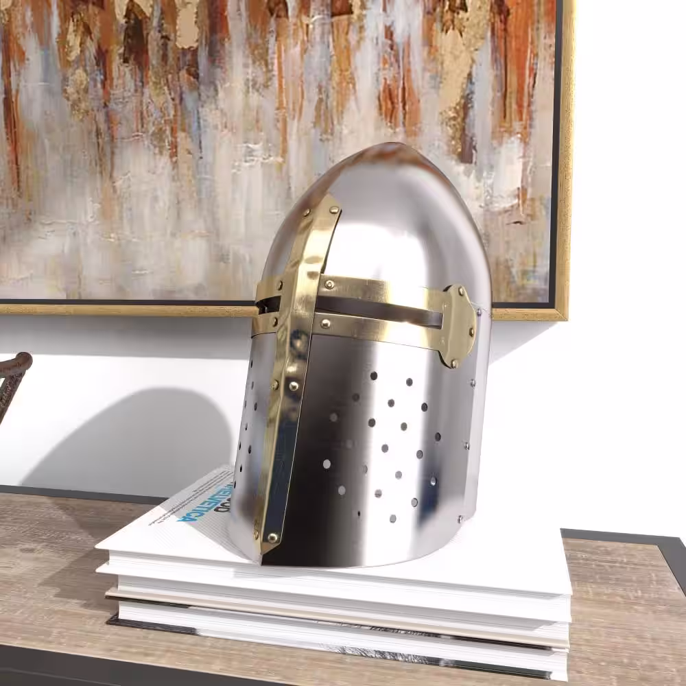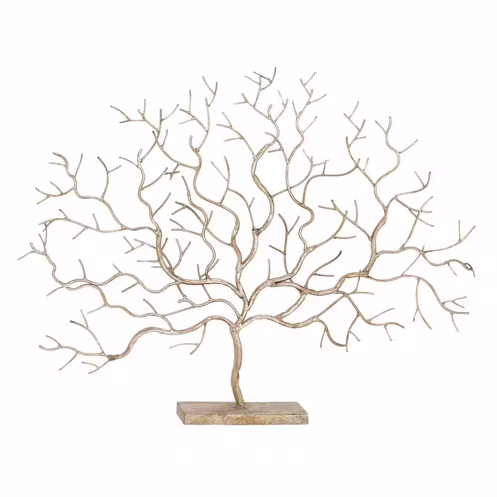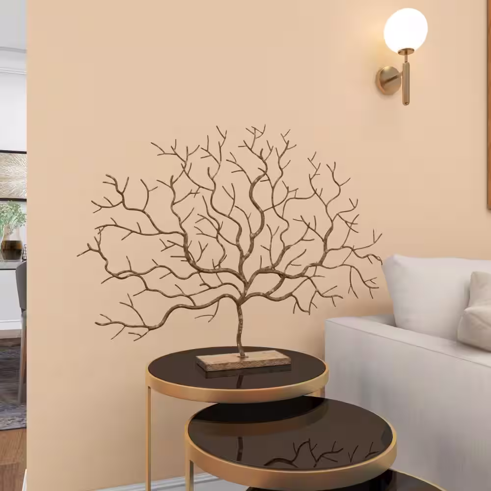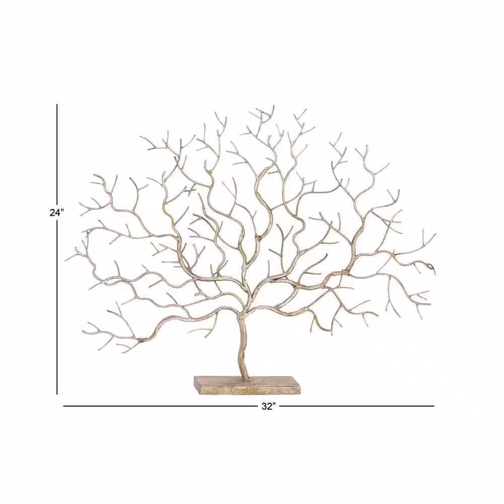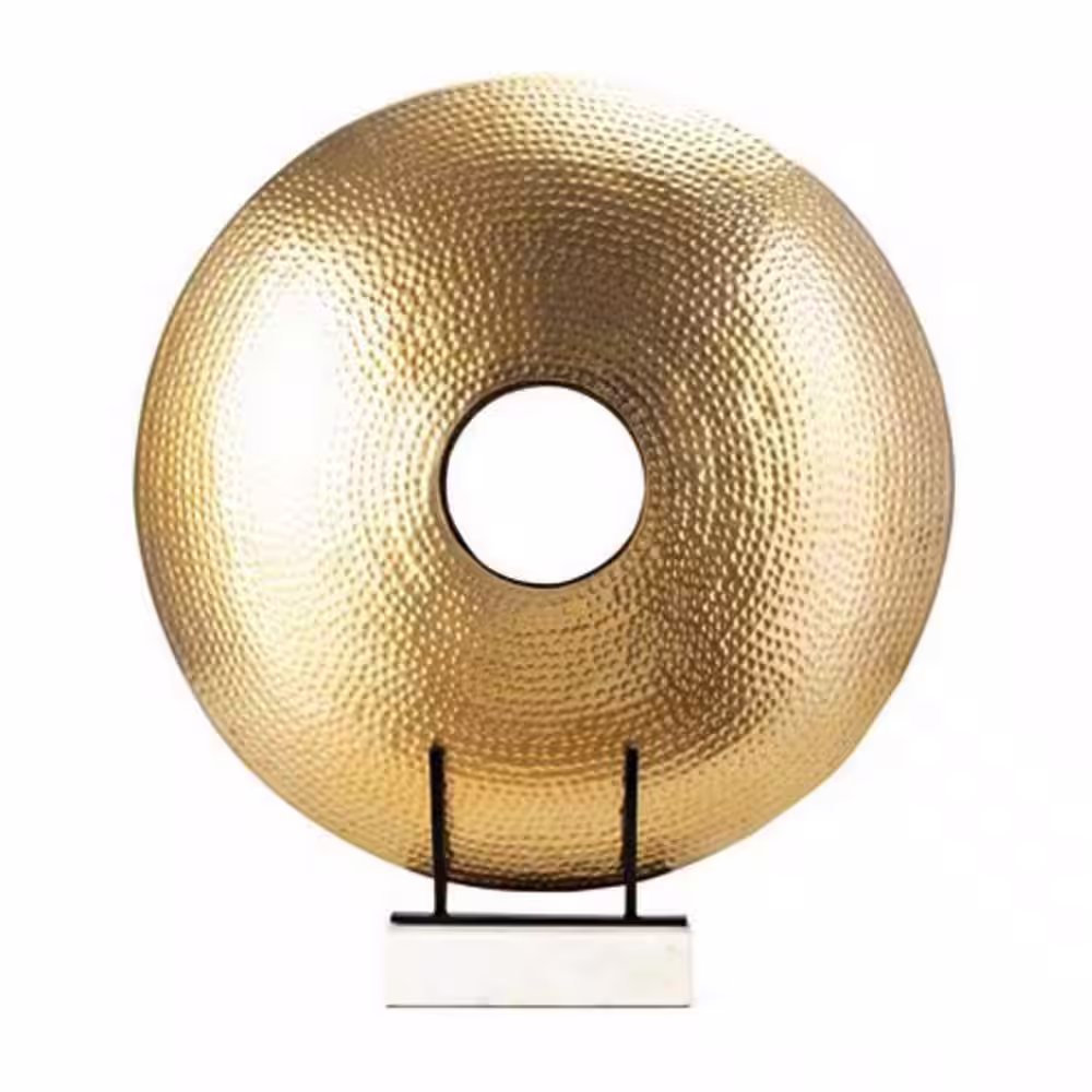 Benjara Gold Disk Round Statuette Tabletop Decor with White Marble Base