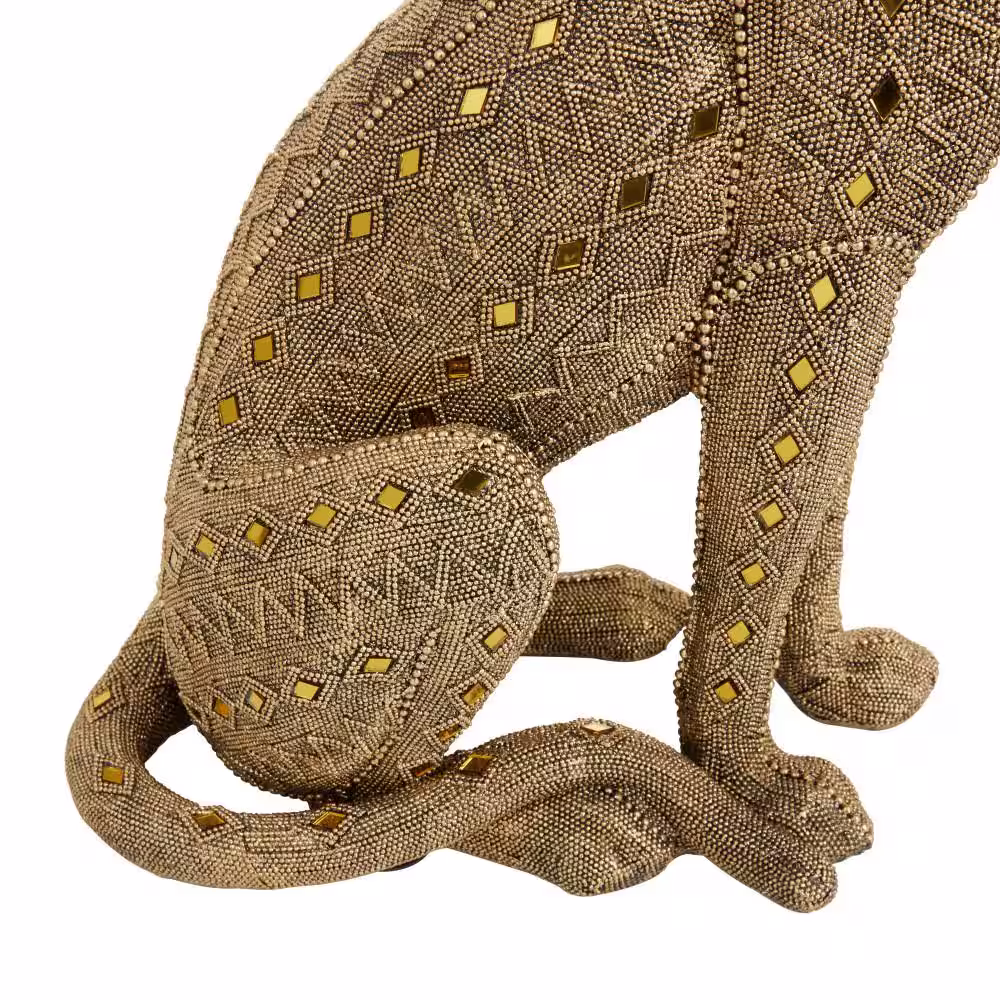 CosmoLiving by Cosmopolitan Gold Polystone Encrusted Beading Leopard Sculpture with Diamond Shaped Mirrored Accent