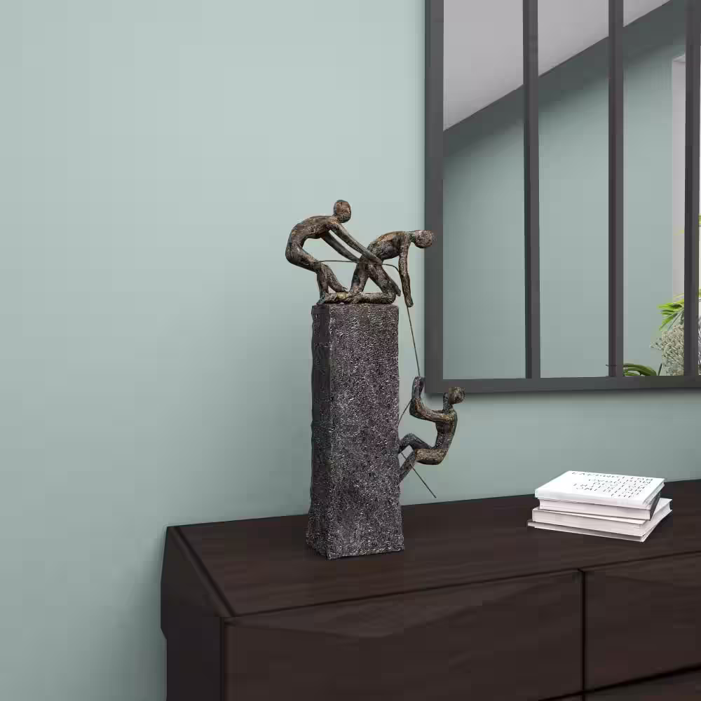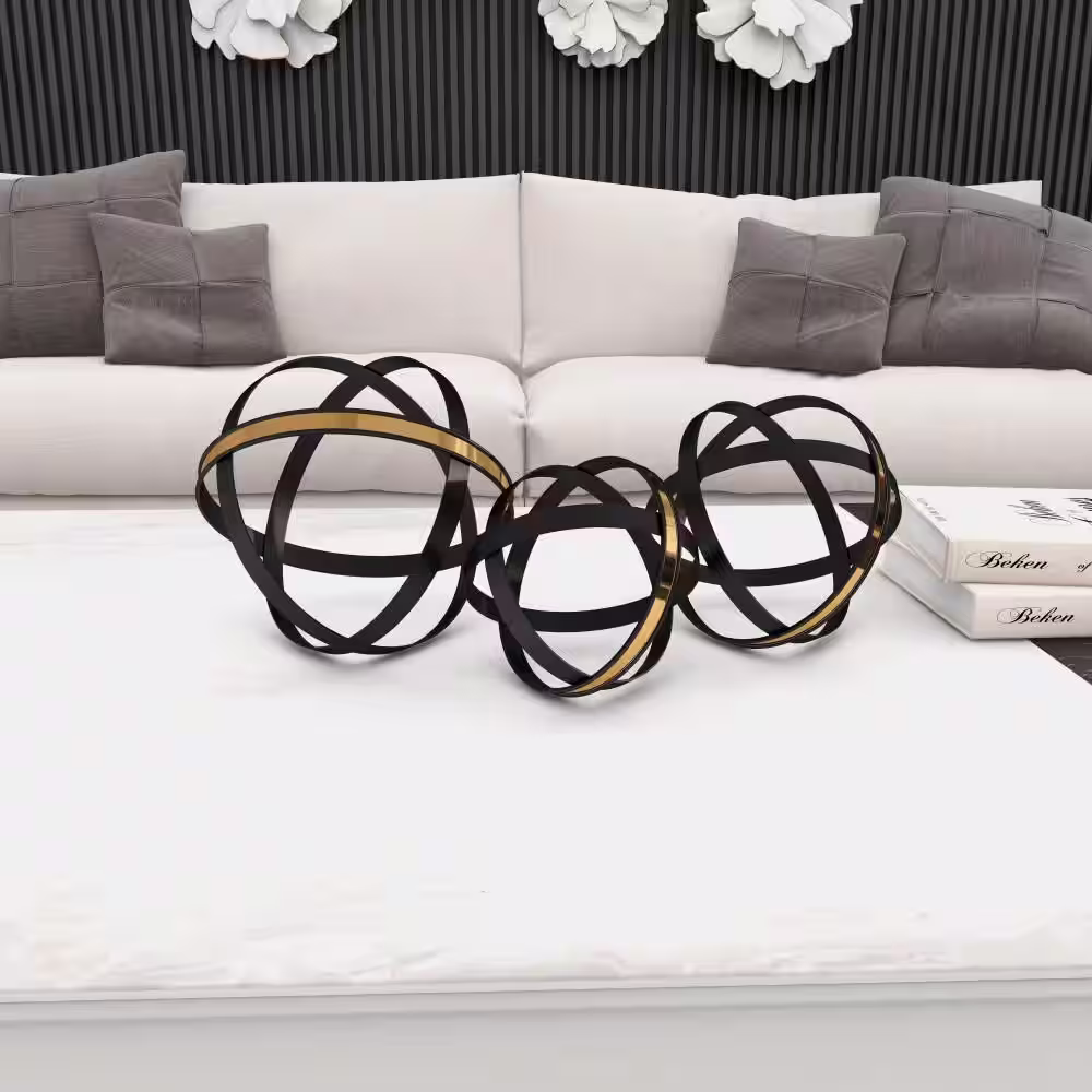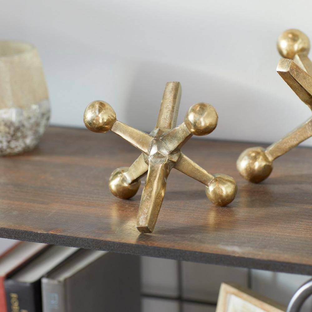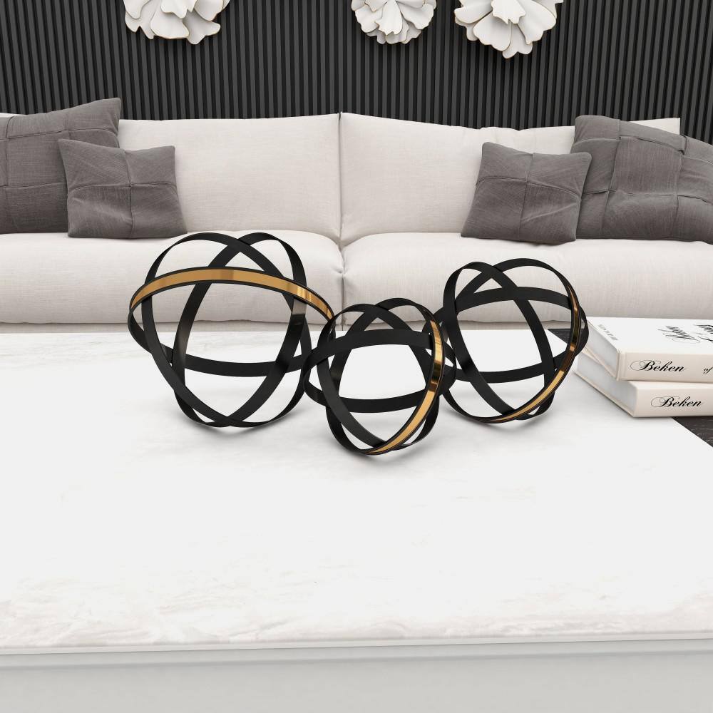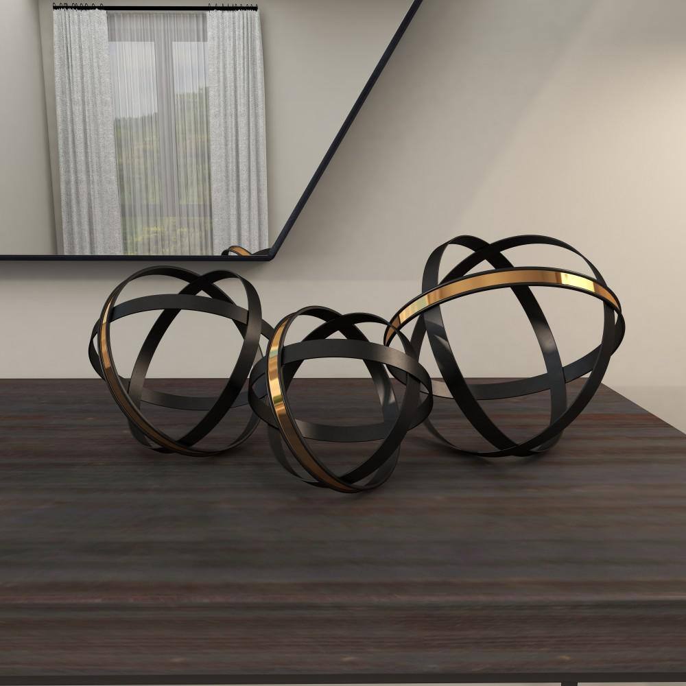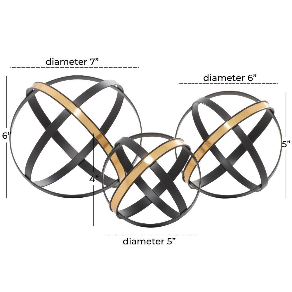 Litton Lane Black Metal Geometric Sculpture with Gold Accents (Set of 3)