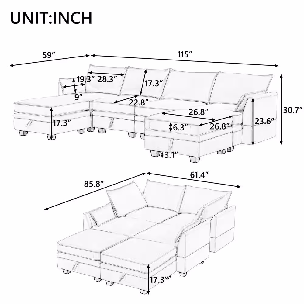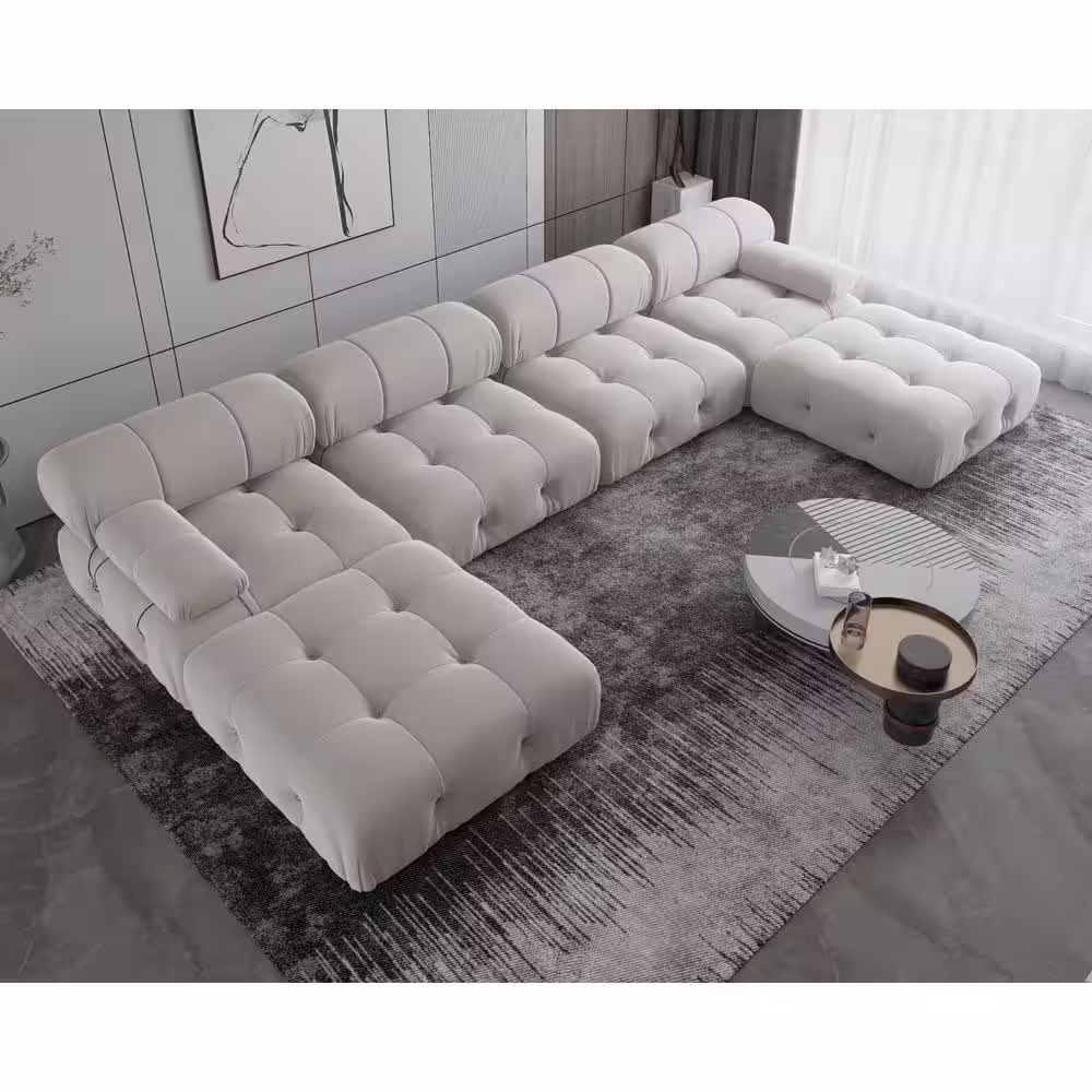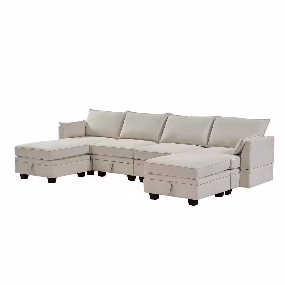 Harper & Bright Designs 115 in. W Flared Arm 6-piece Linen U-Shape Modern Sectional Sofa in Beige with Storage