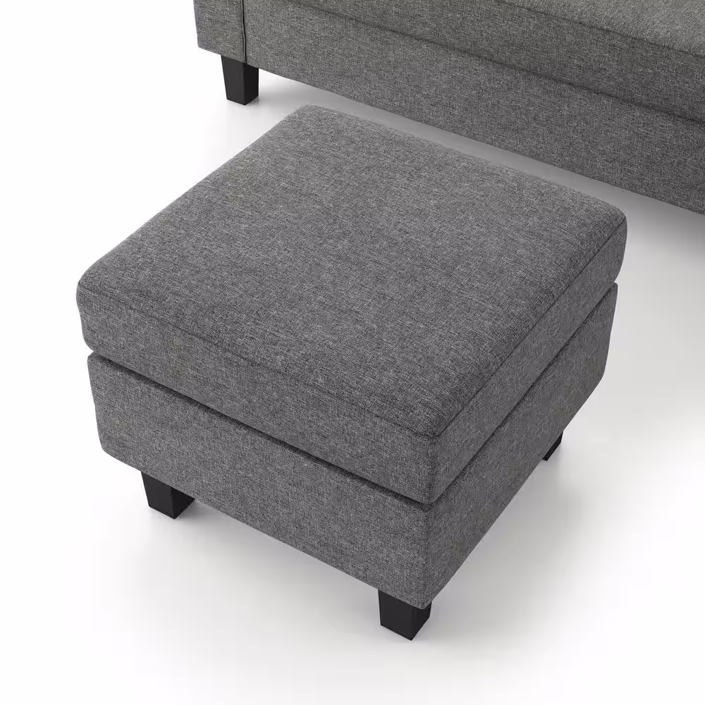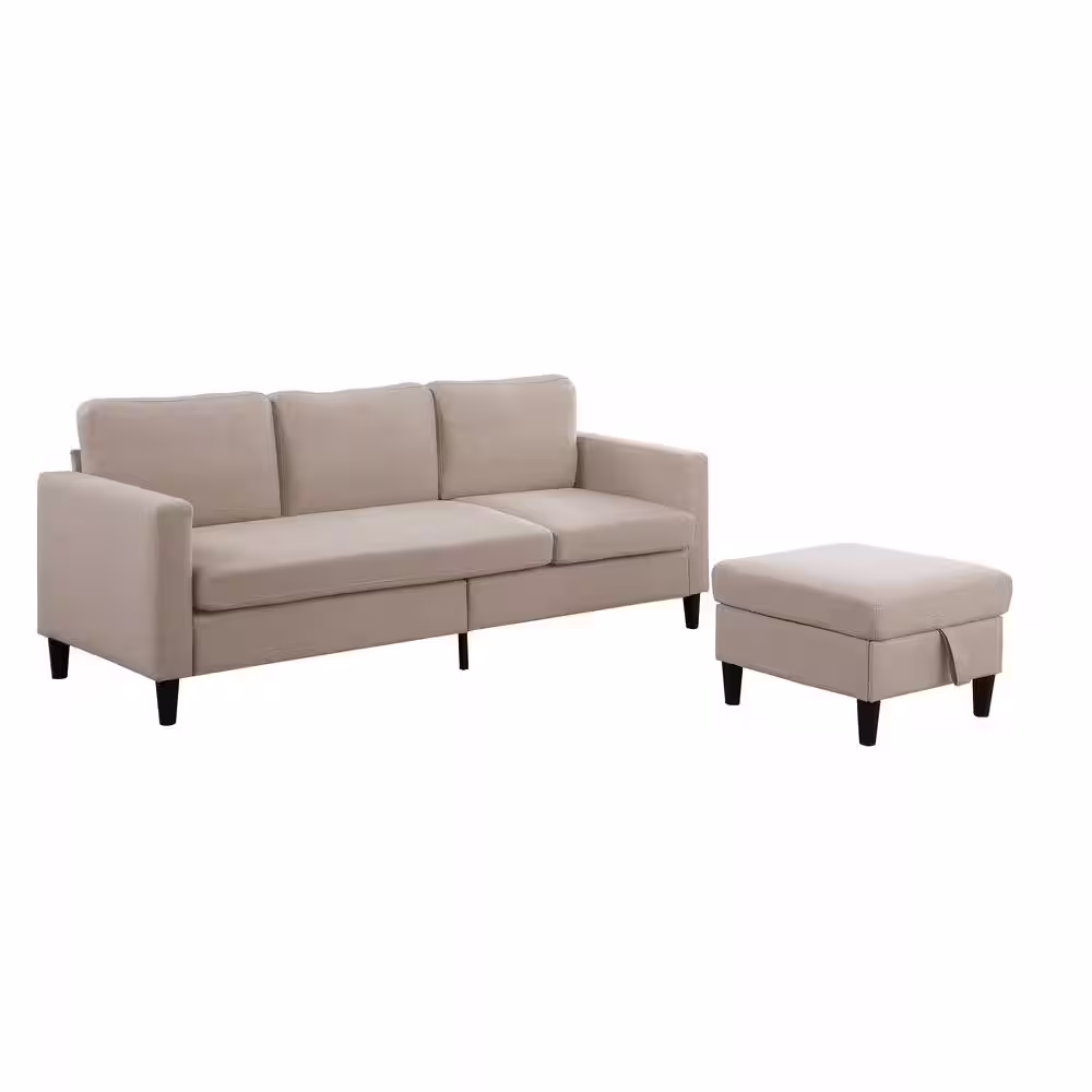 Dwell Home Inc Marcus 77 in Mid-Century Polyester Reversible Sectional Sofa in Oatmeal with Storage Ottoman