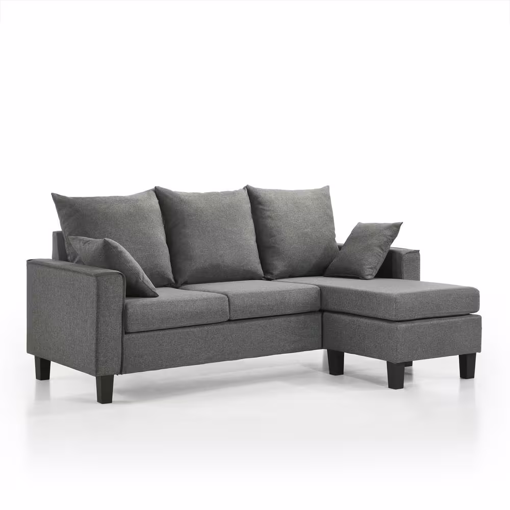 None Tully 74 in. W Straight Arm 1-Piece Polyester L-Shaped Sectional Sofa in Gray