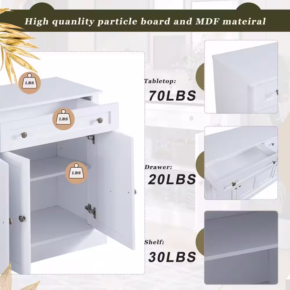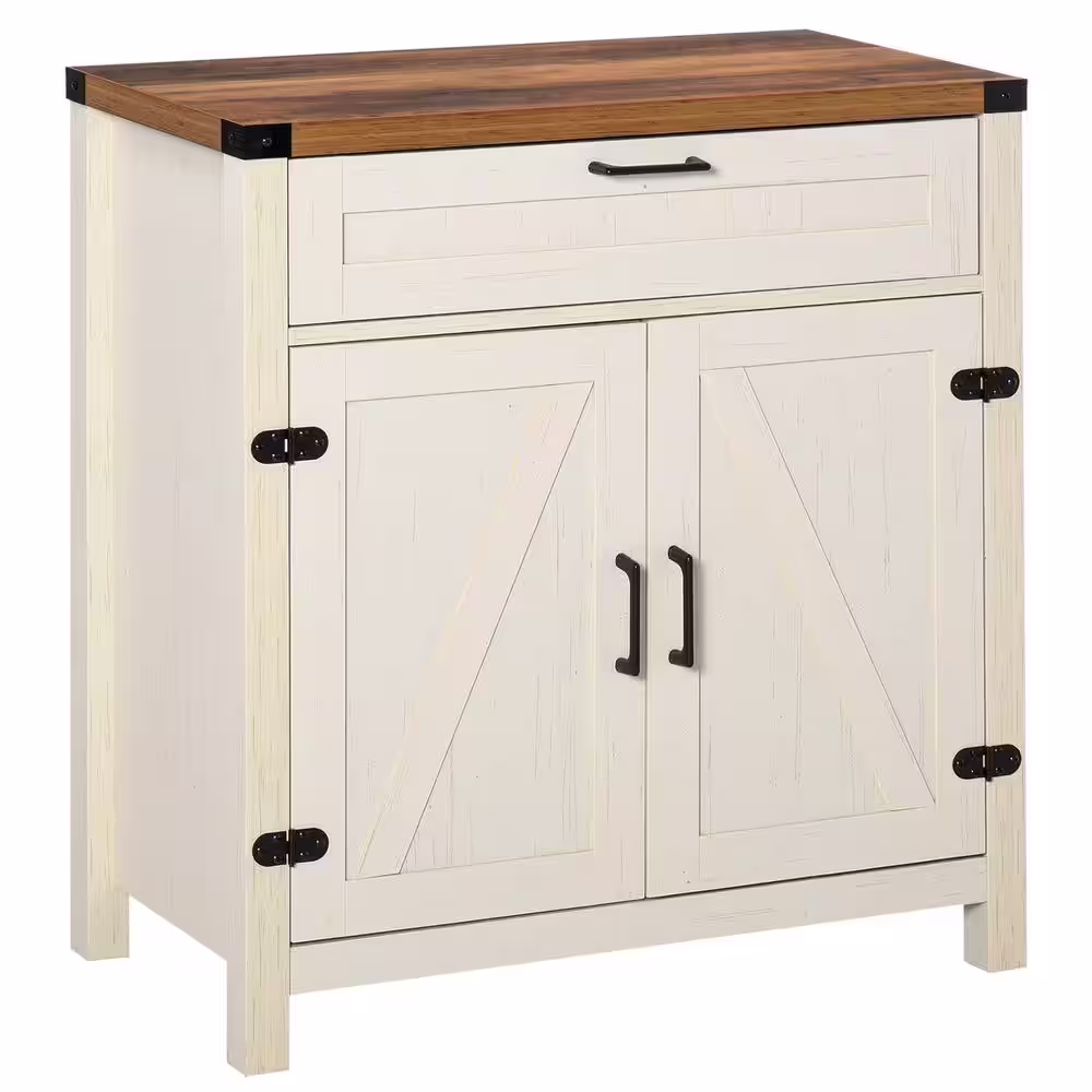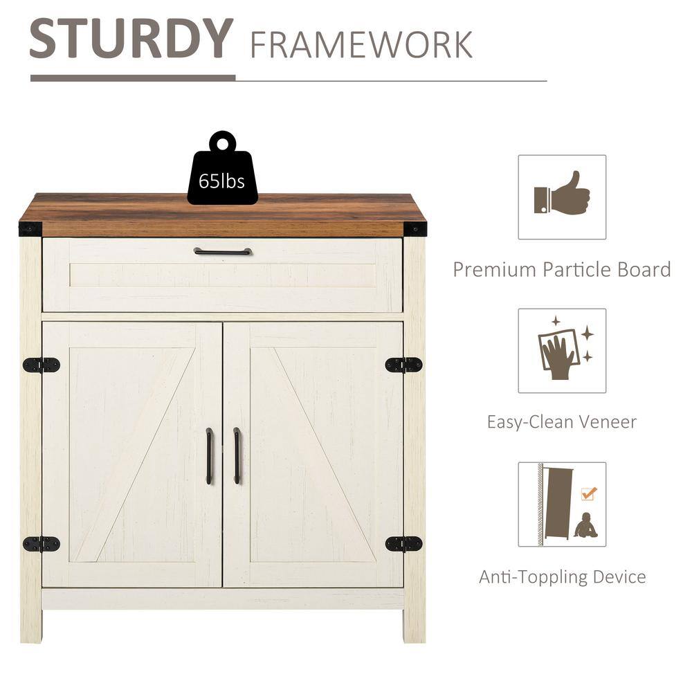 HOMCOM White Industrial Storage Sideboard with-Drawer and Double Door Cabinet