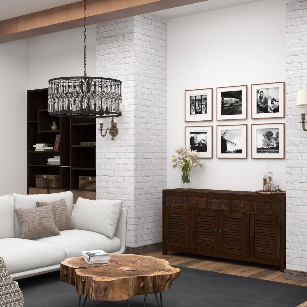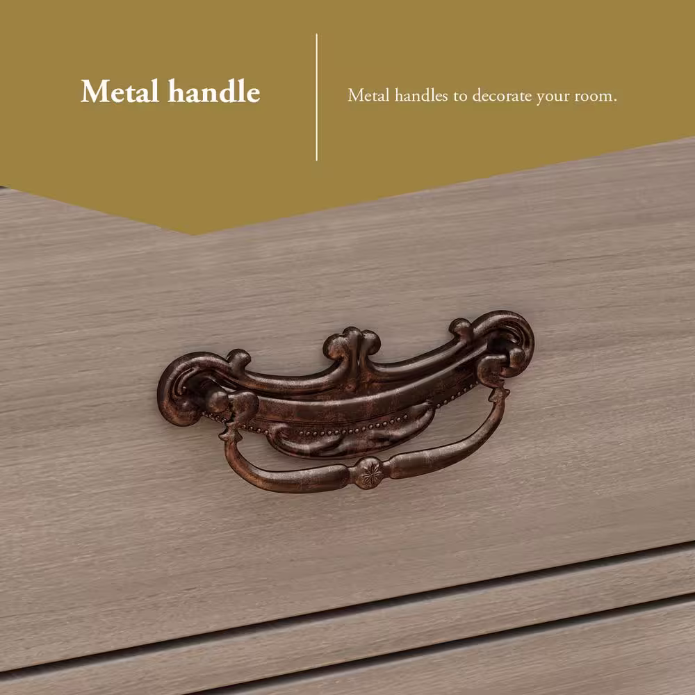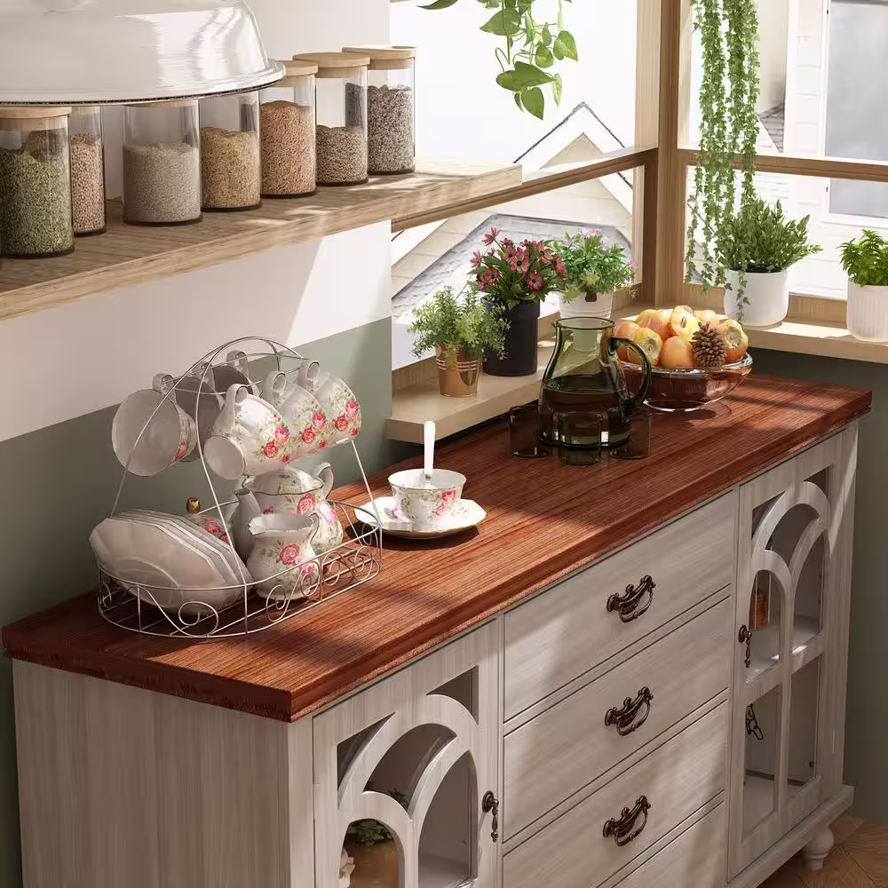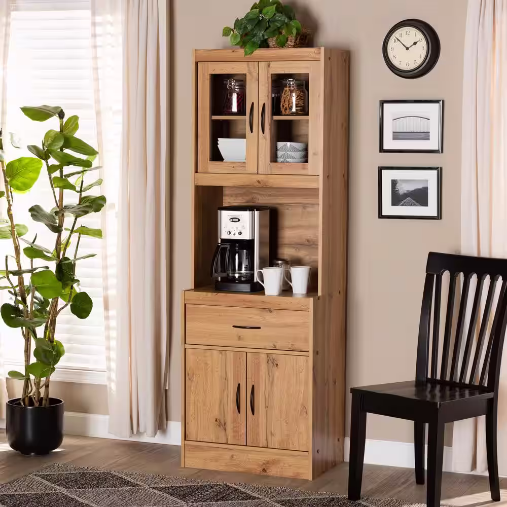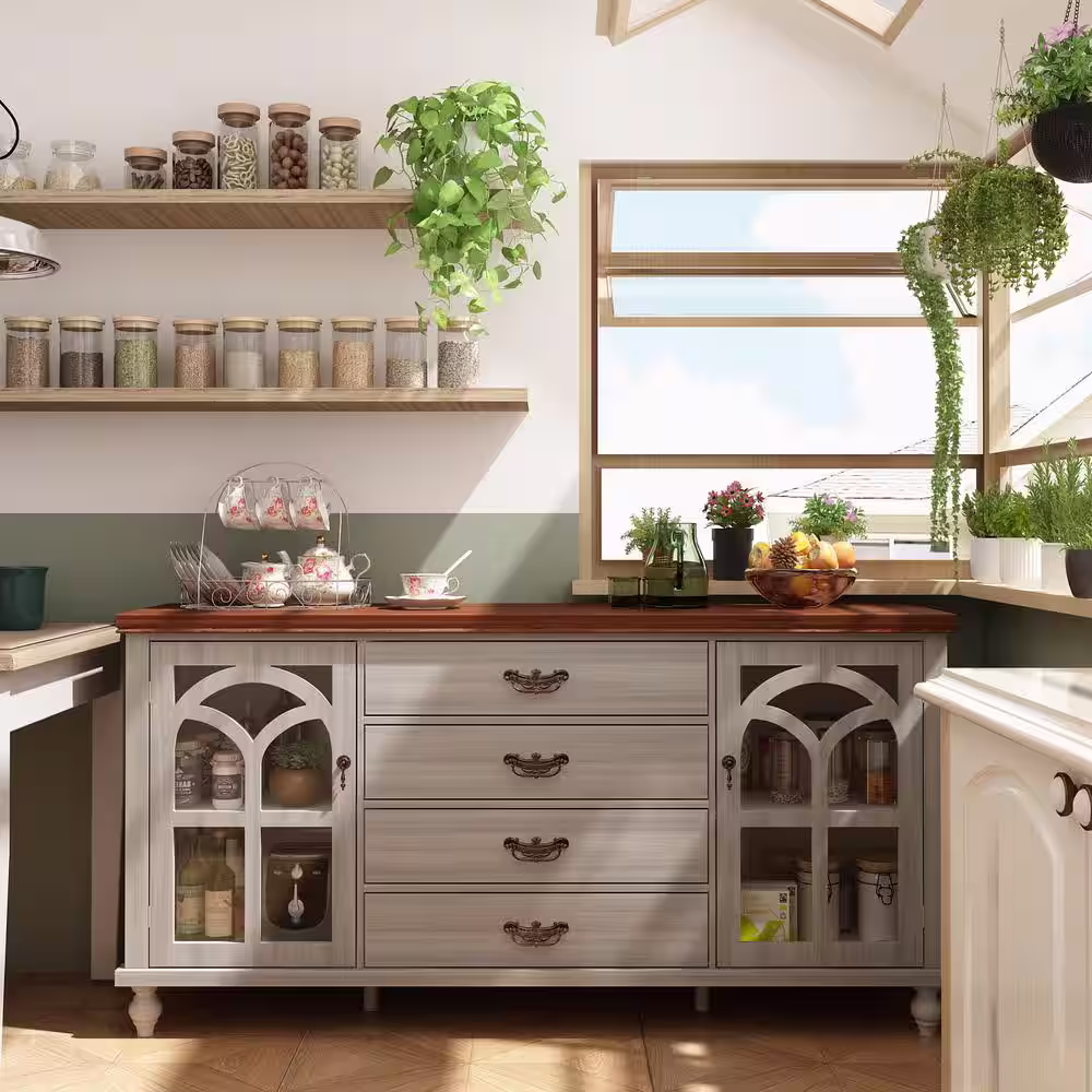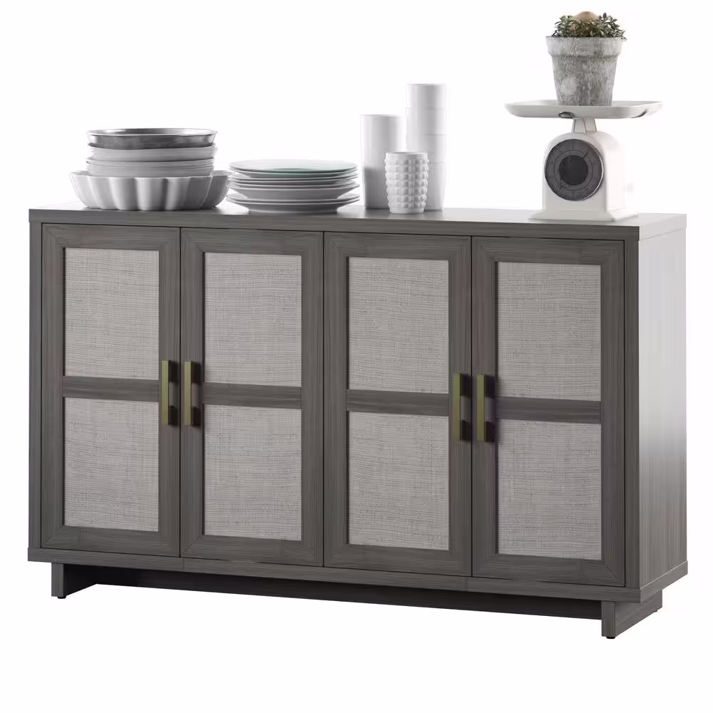 Twin Star Home Crete Oak MDF 59.5 in. Coastal Sideboard with Linen Inspired Accents