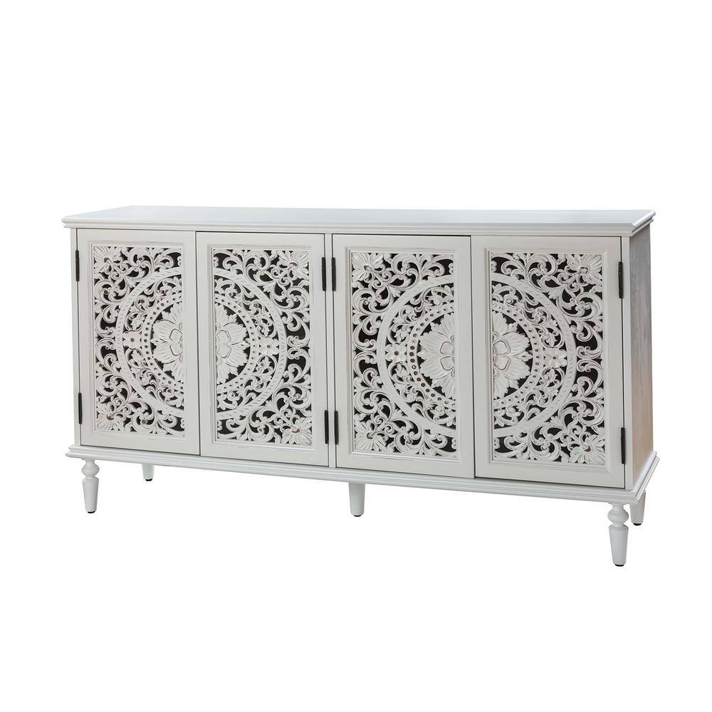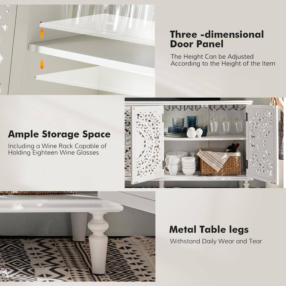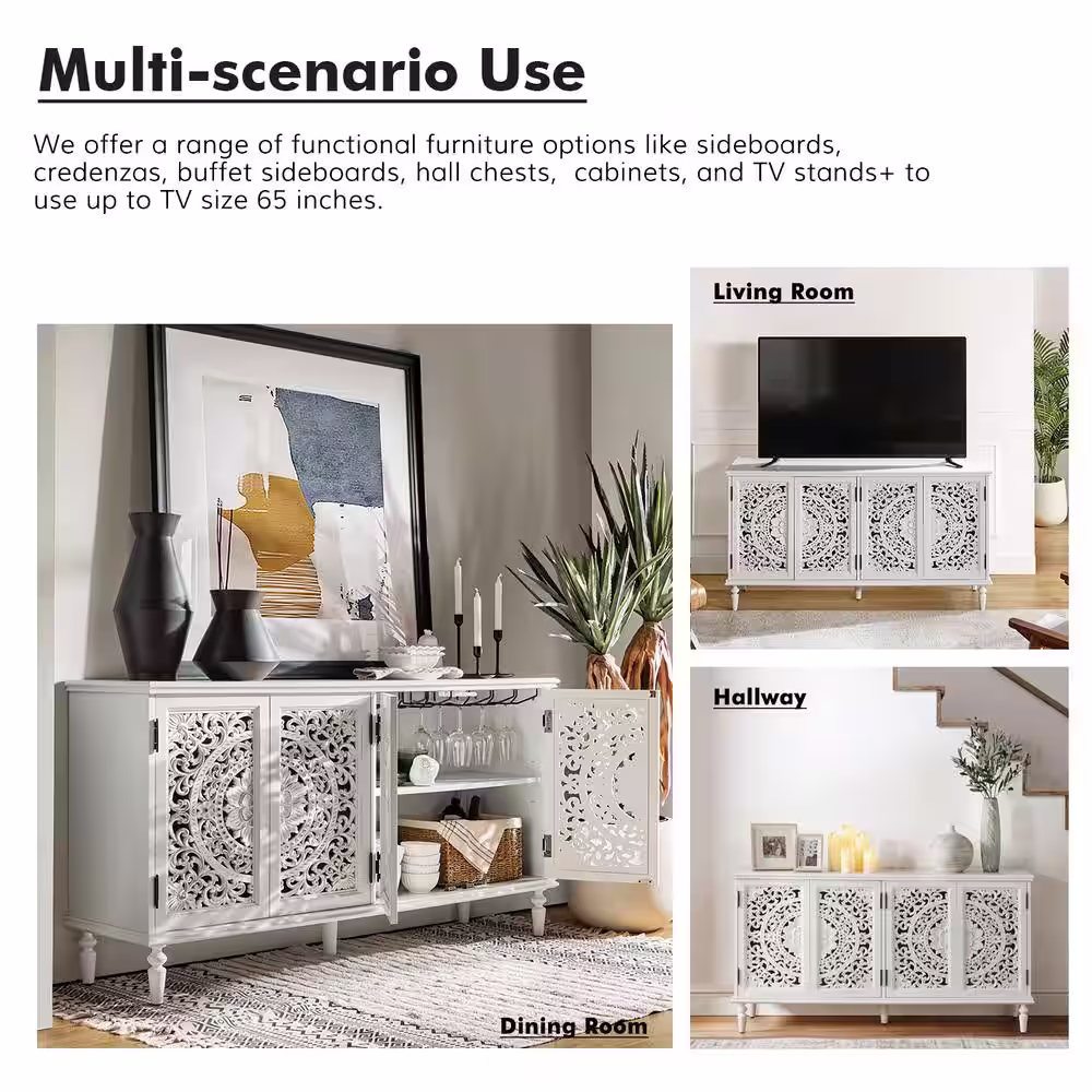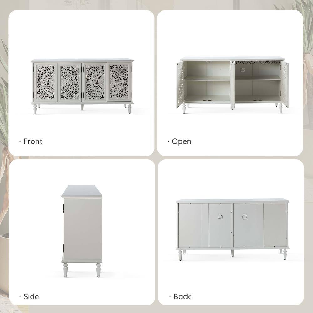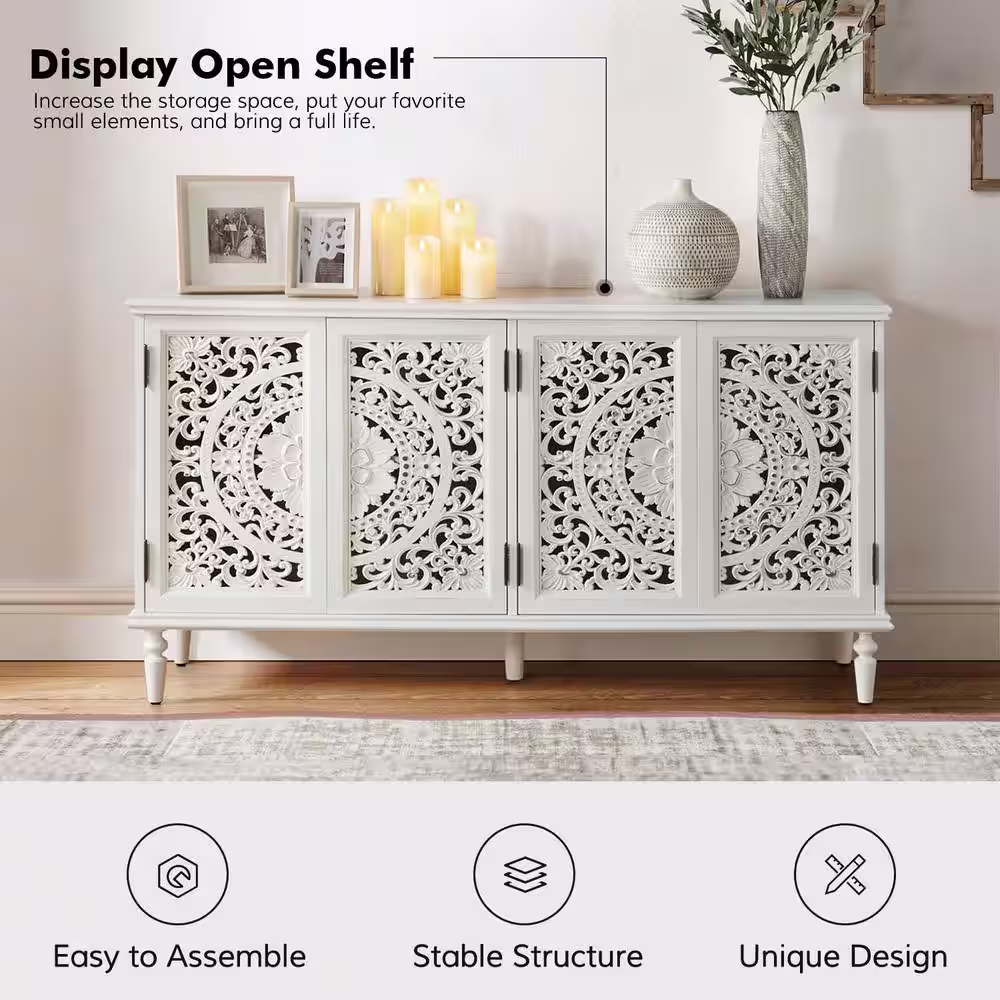 JAYDEN CREATION Herculaneum White Traditional Wooden 63 in. Wide Sideboard with 4-Doors and Adjustable Shelves
