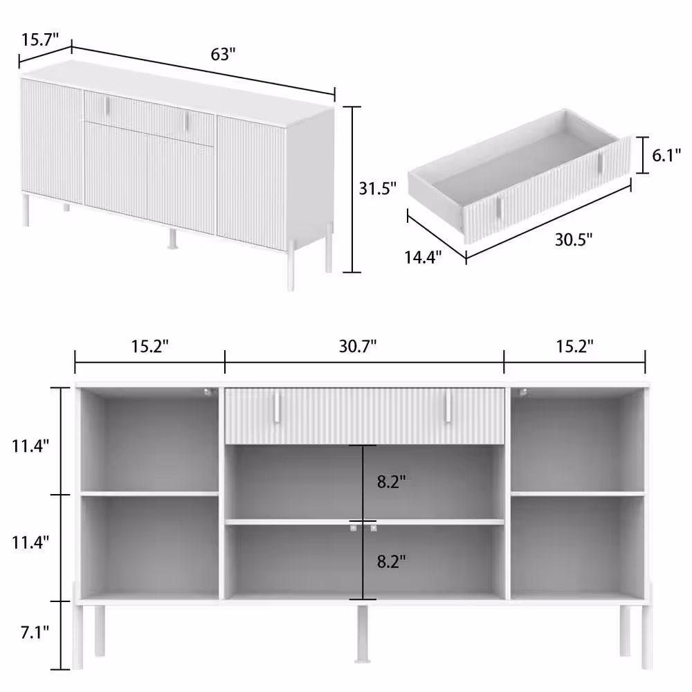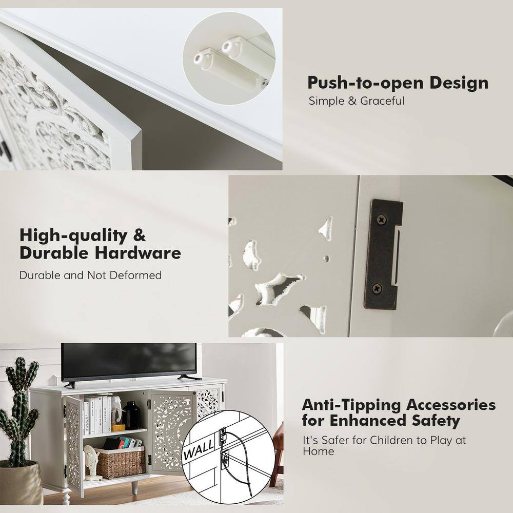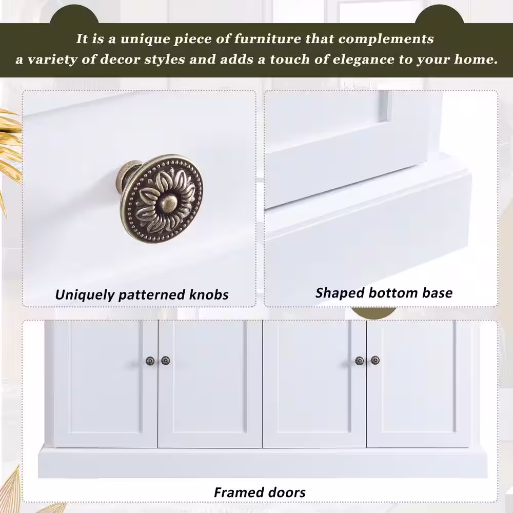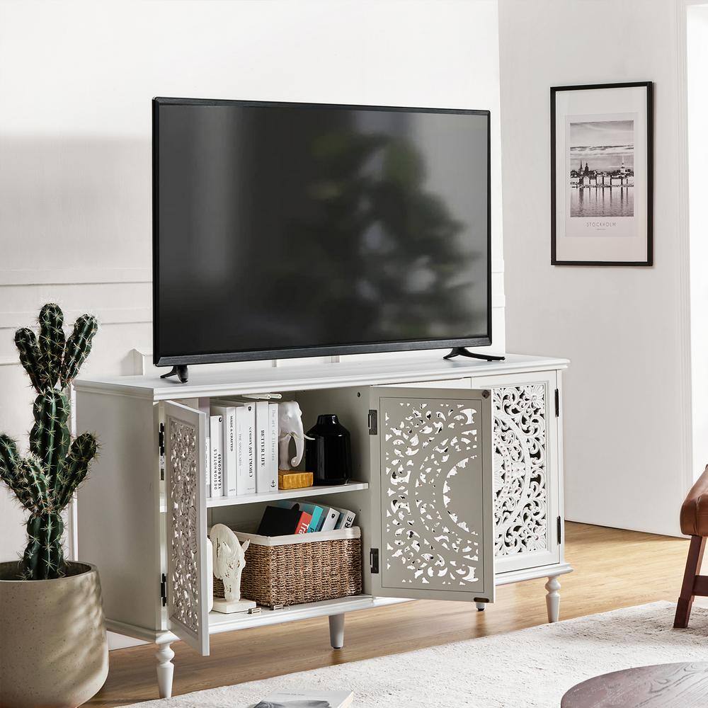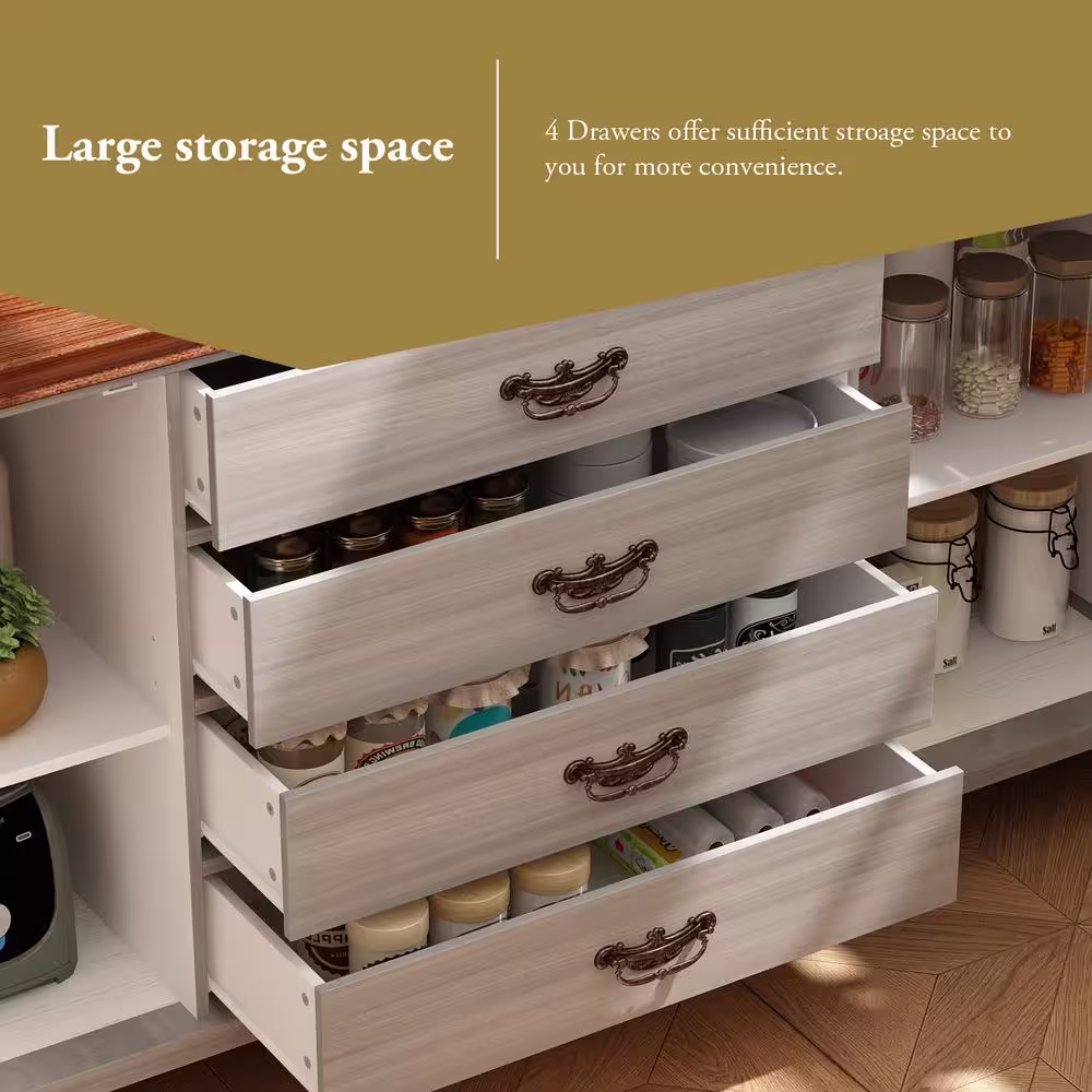 JAYDEN CREATION Herculaneum White Traditional Wooden 63 in. Wide Sideboard with 4-Doors and Adjustable Shelves