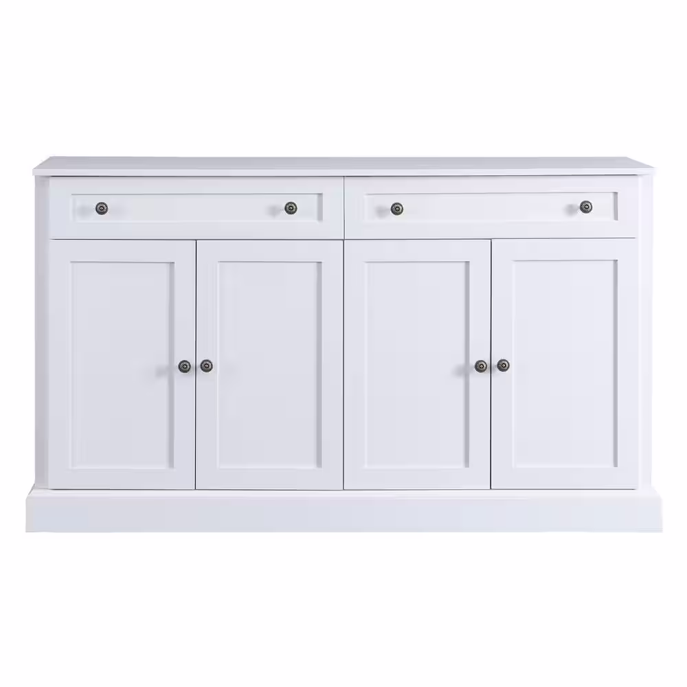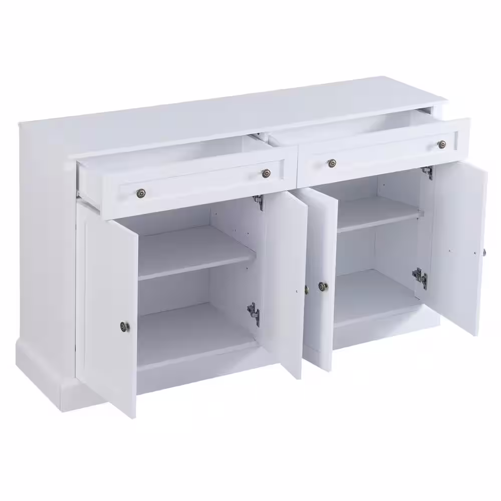 Harper & Bright Designs White Wood 60 in. Sideboard with 2 Drawers 2 Adjustable Shelves and 4 Doors