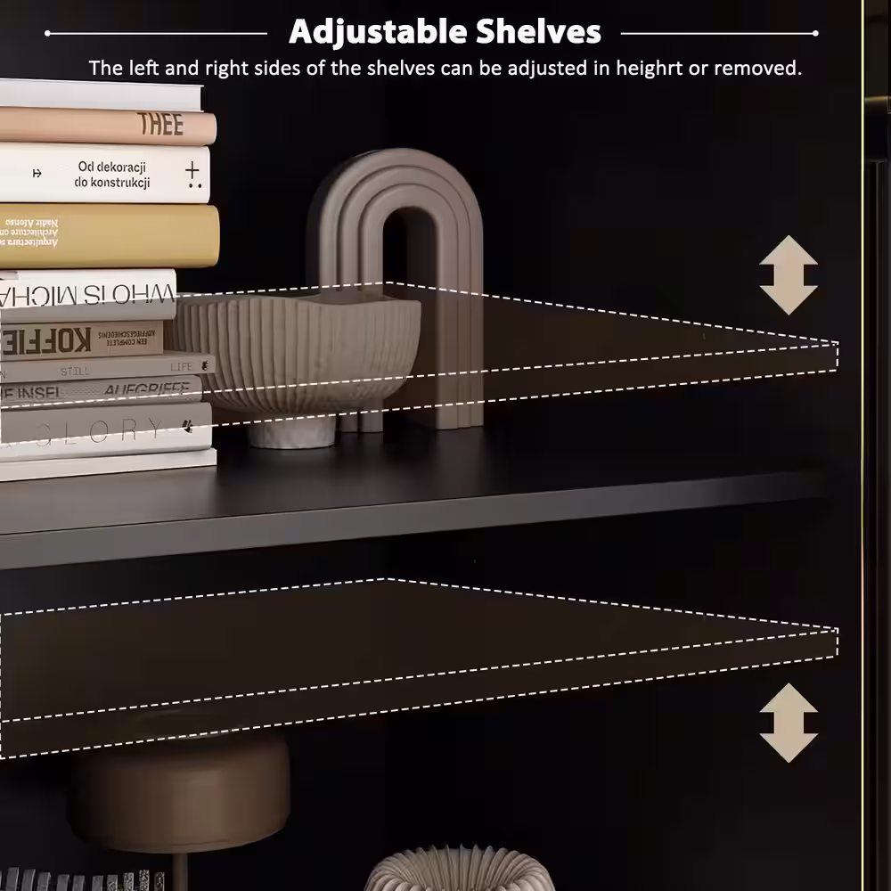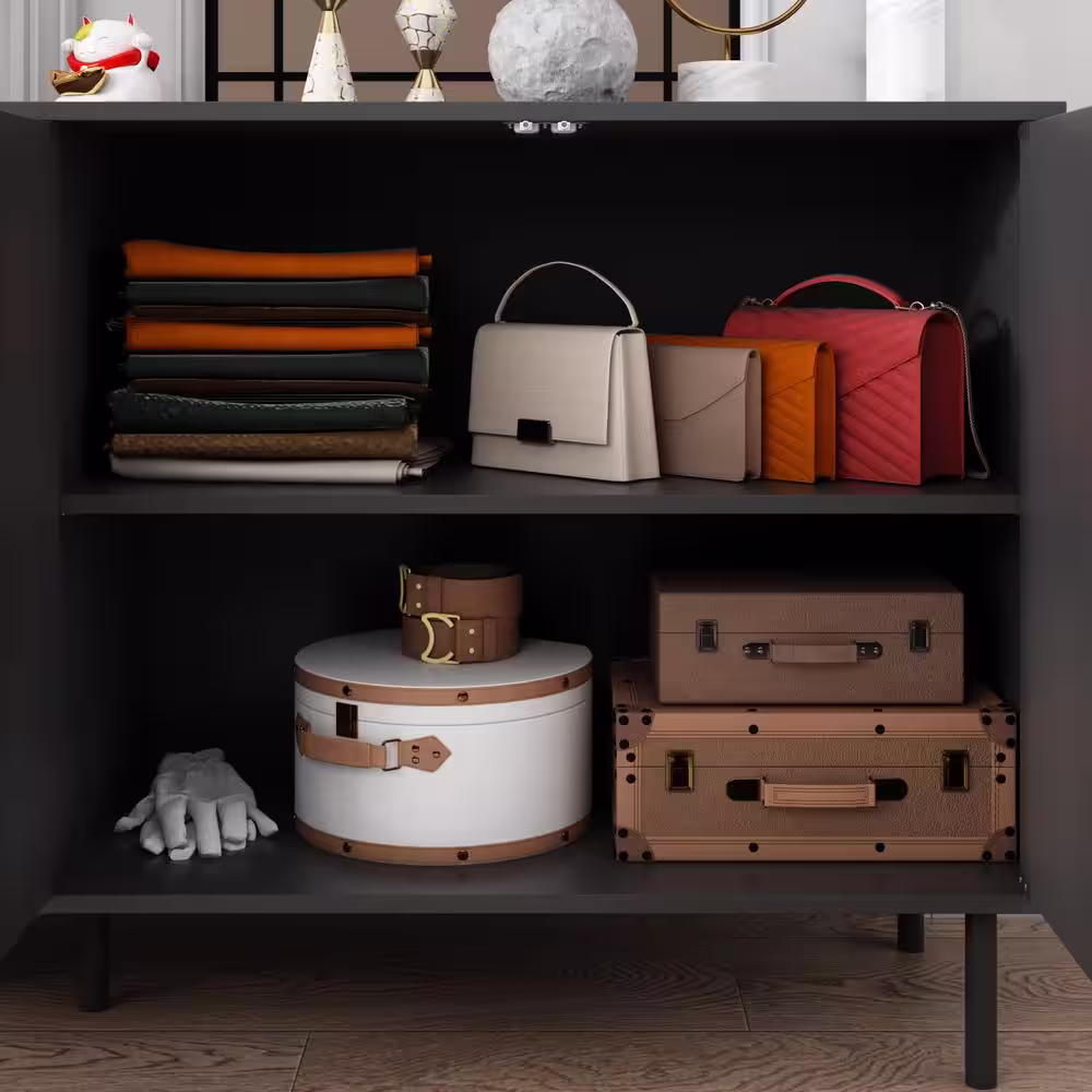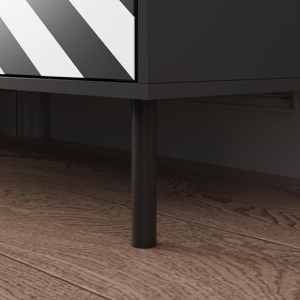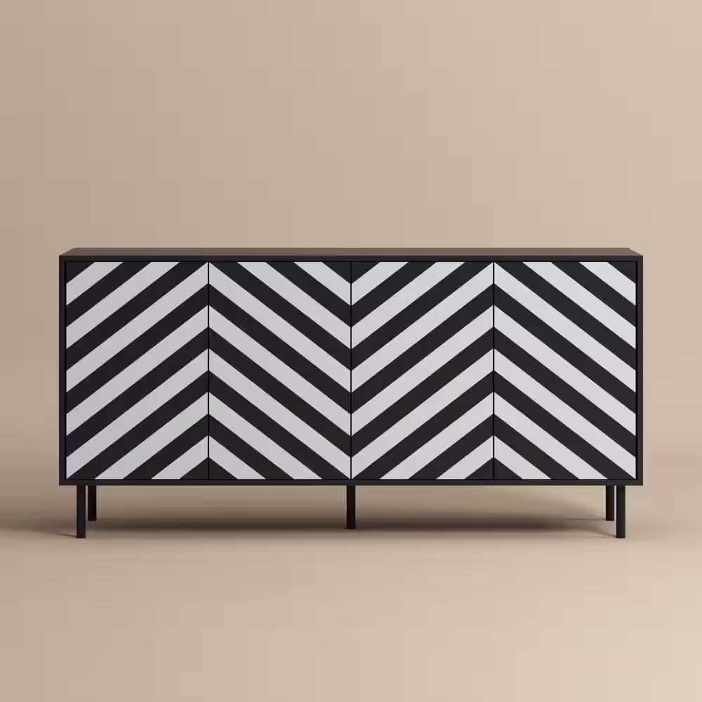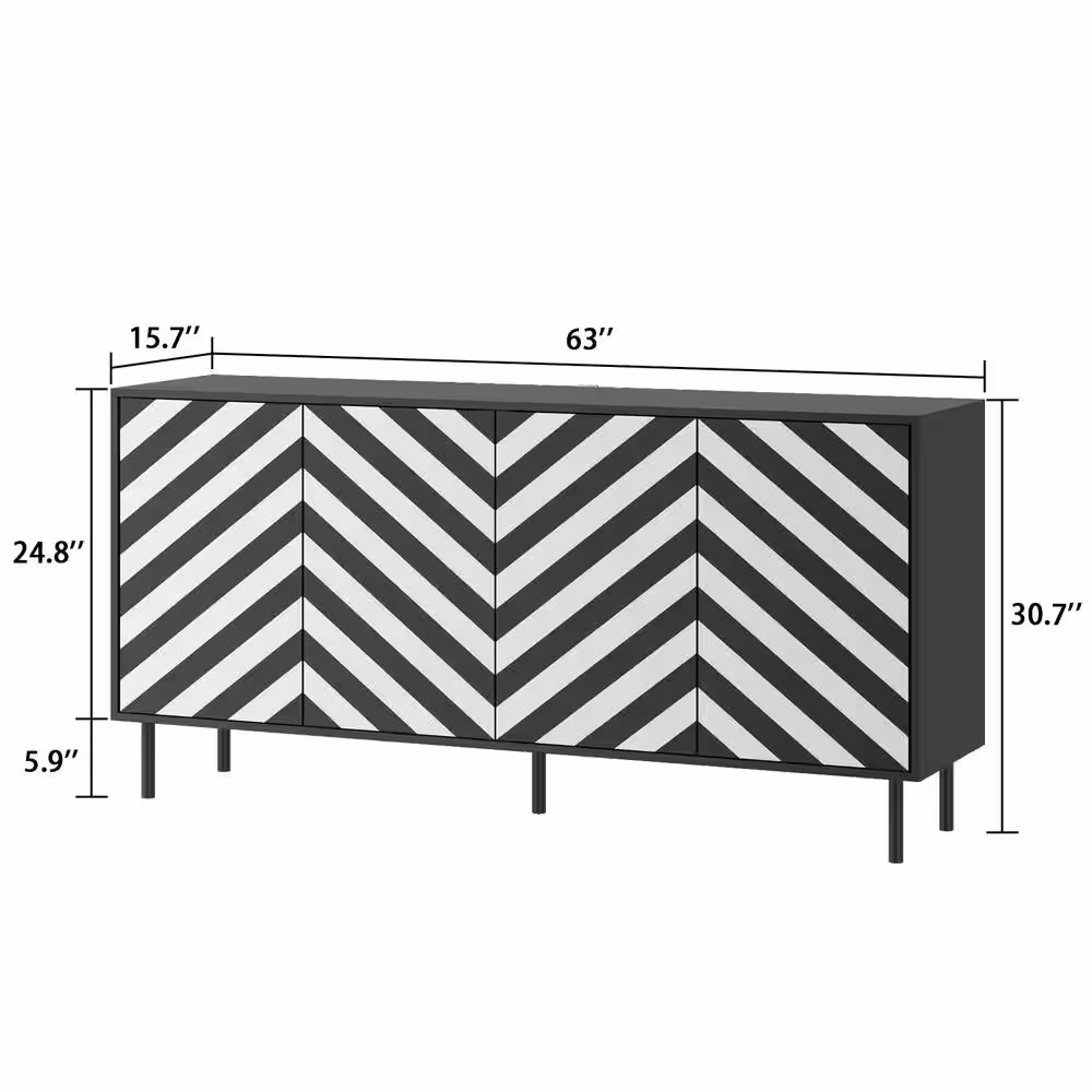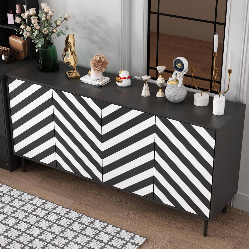 None Black Wavy Paint Finish Floor-Standing Sideboard Cupboard with 4-Doors 2-Drawers Adjustable Shelves
