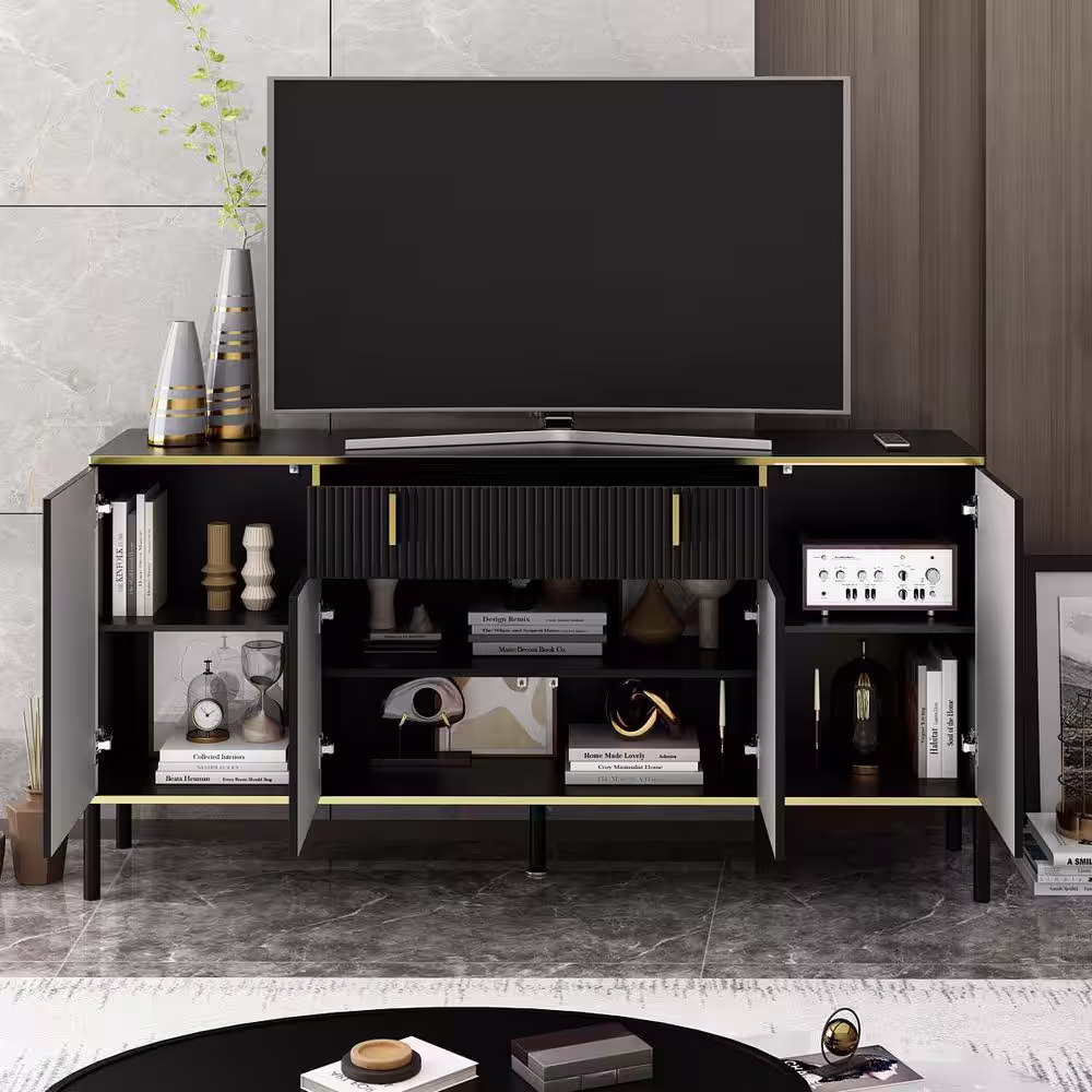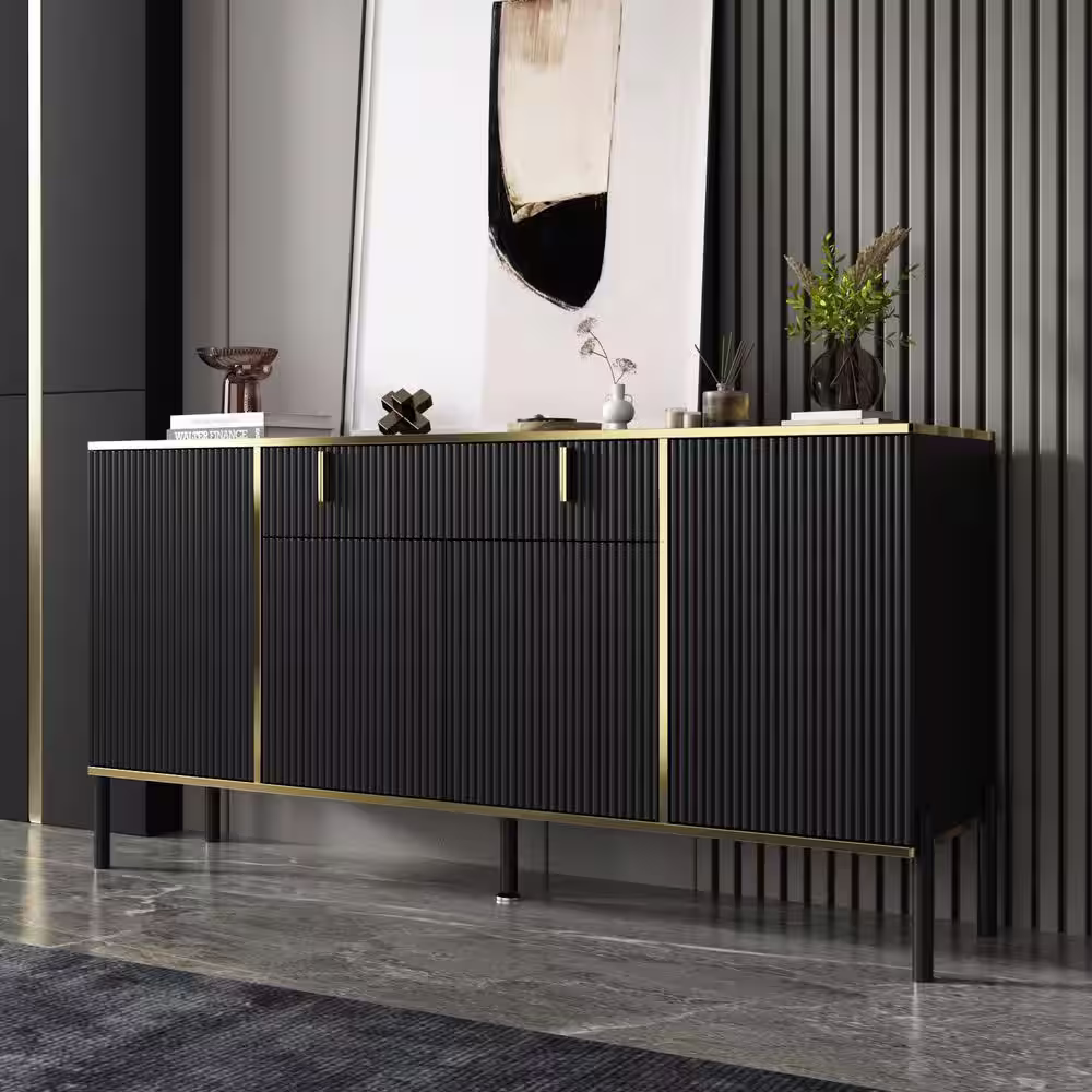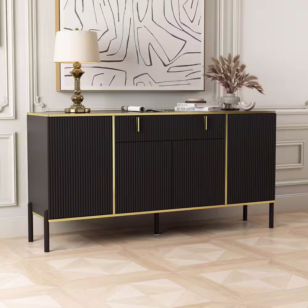 None 62.9 in. W Black Paint Sideboard Kitchen Buffet Cupboard with Drawers and Shelves, Metal Legs