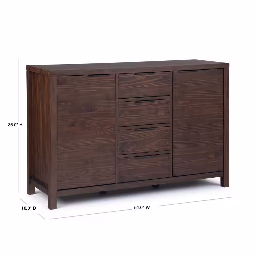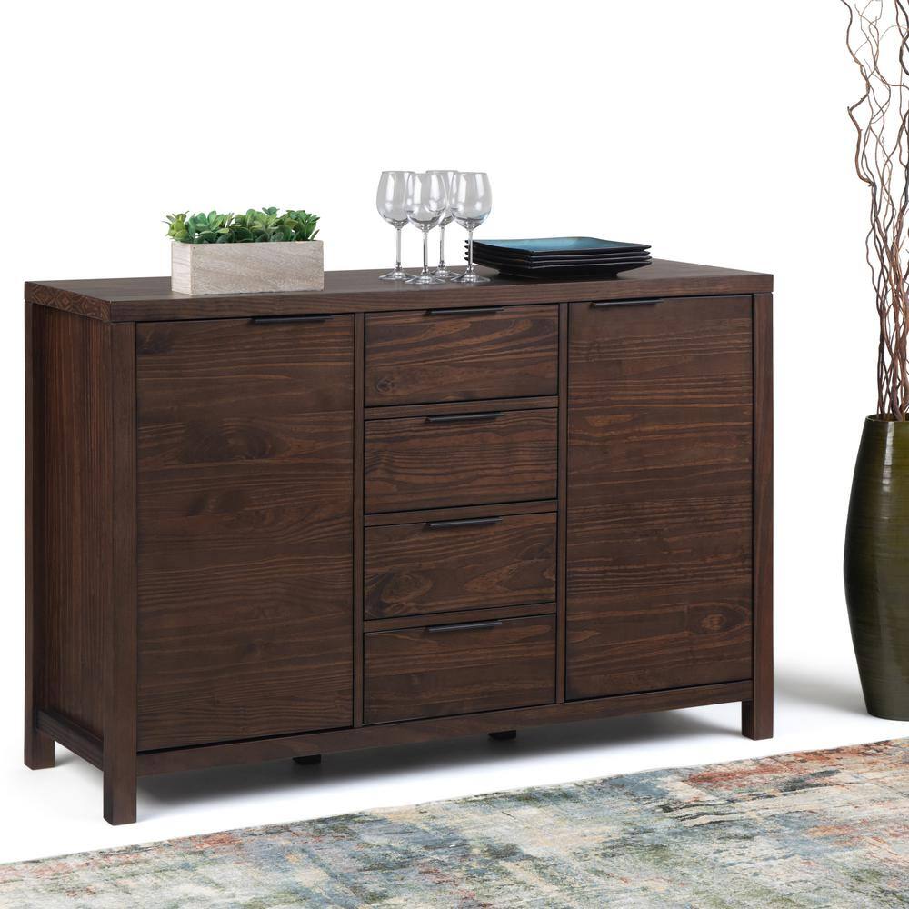 Simpli Home Hollander Solid Wood 54 in. Wide Contemporary Sideboard Buffet in Warm Walnut Brown