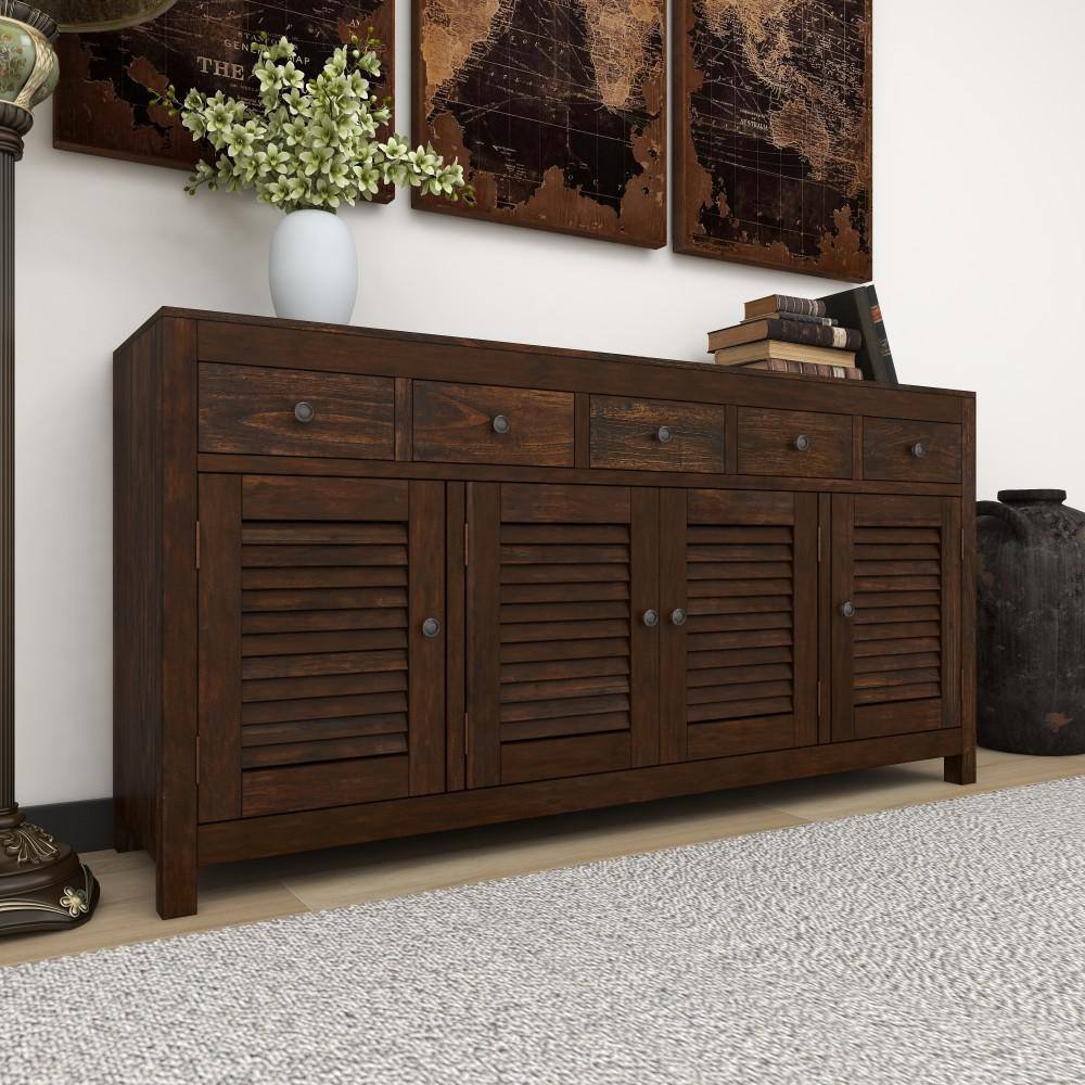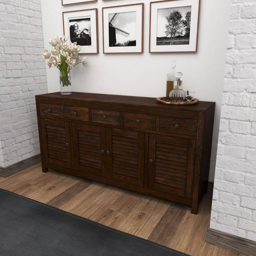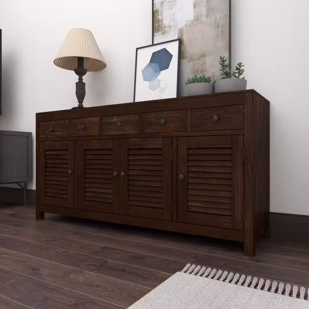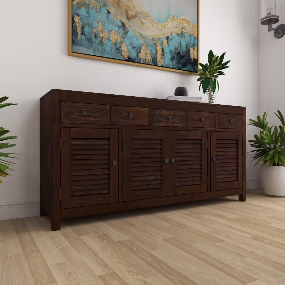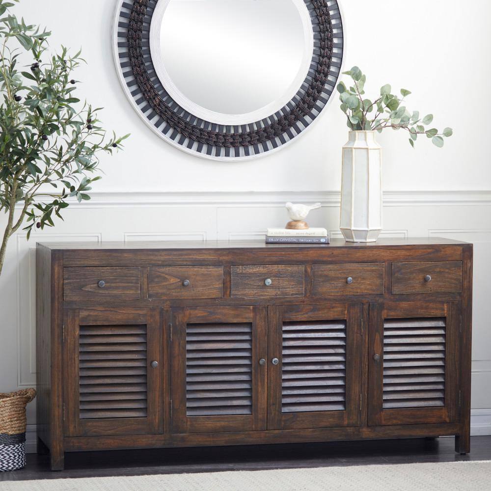 Litton Lane Brown Handmade 5 Drawers 1 Shelf and 4 Doors Buffet 63 in. x 31 in.