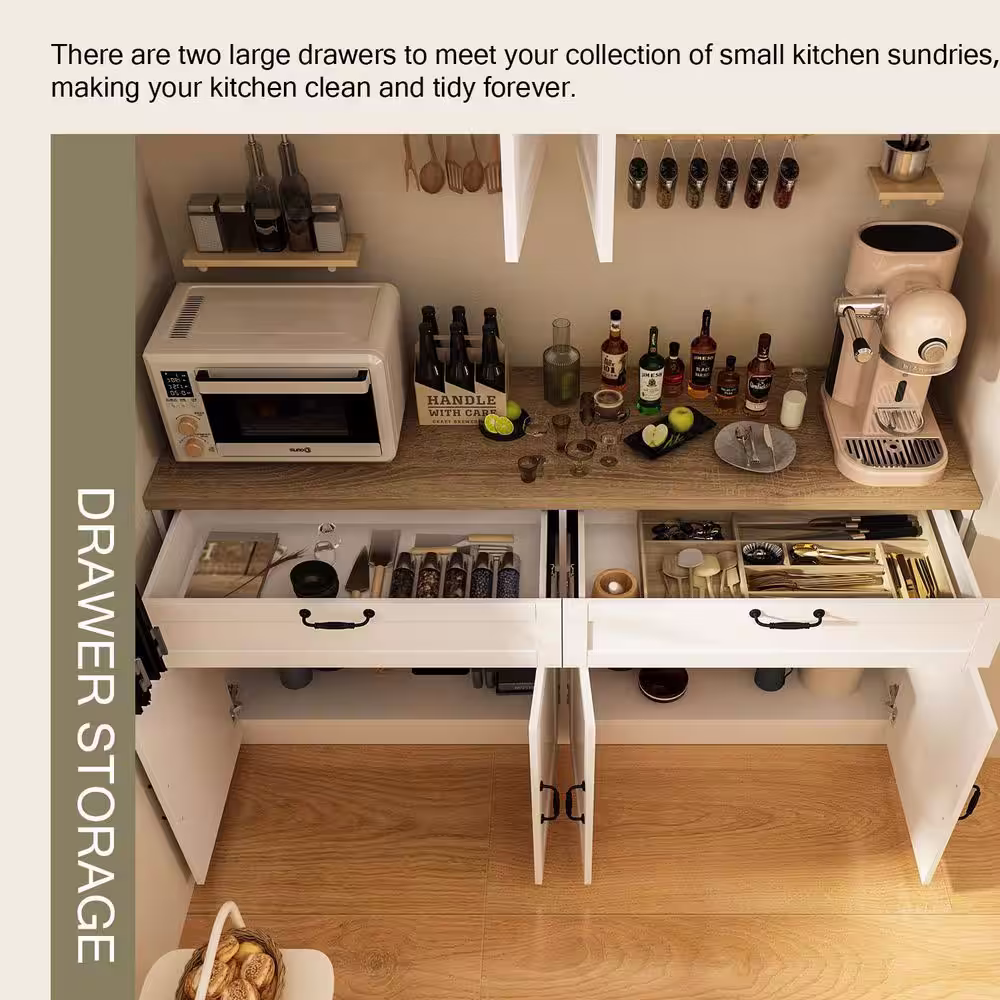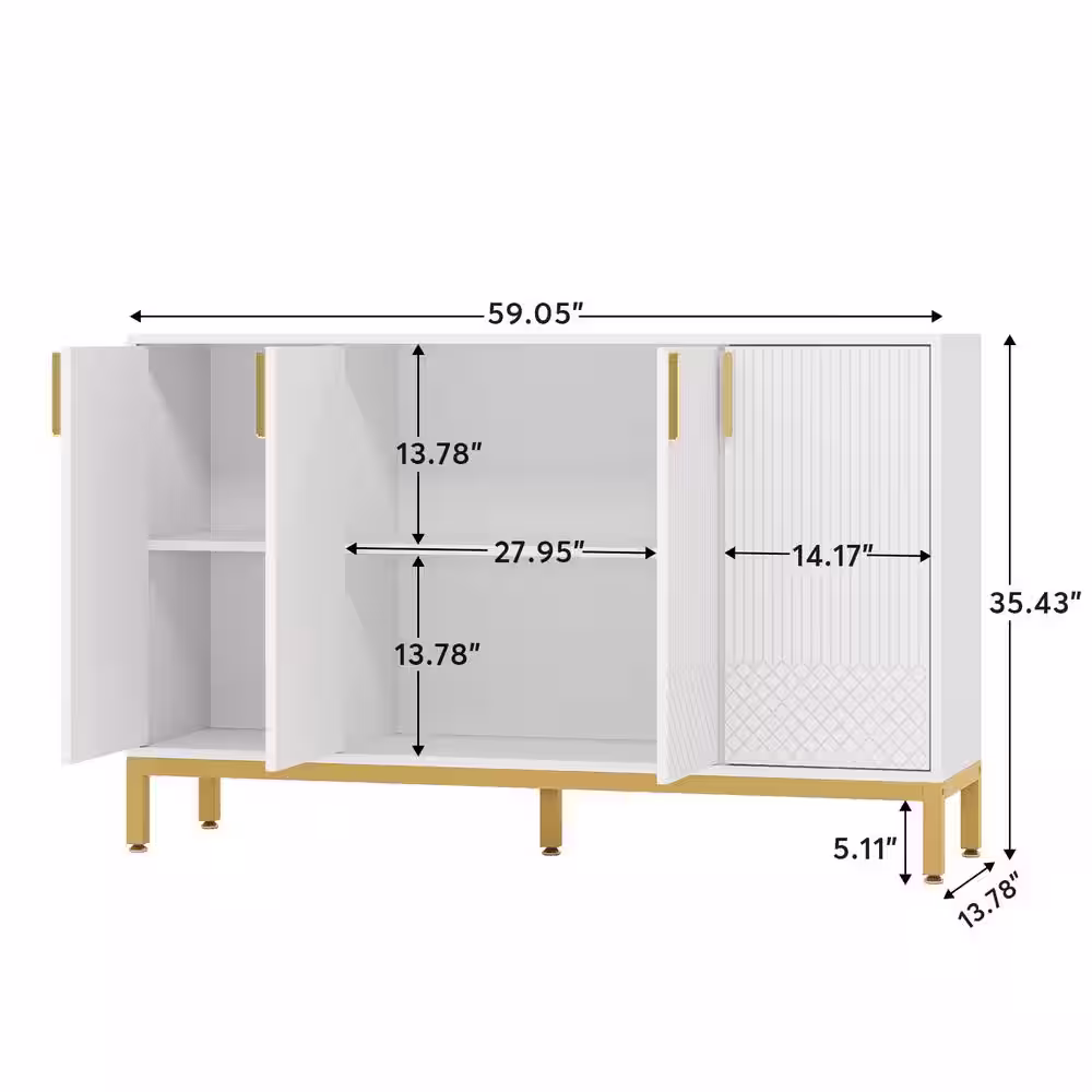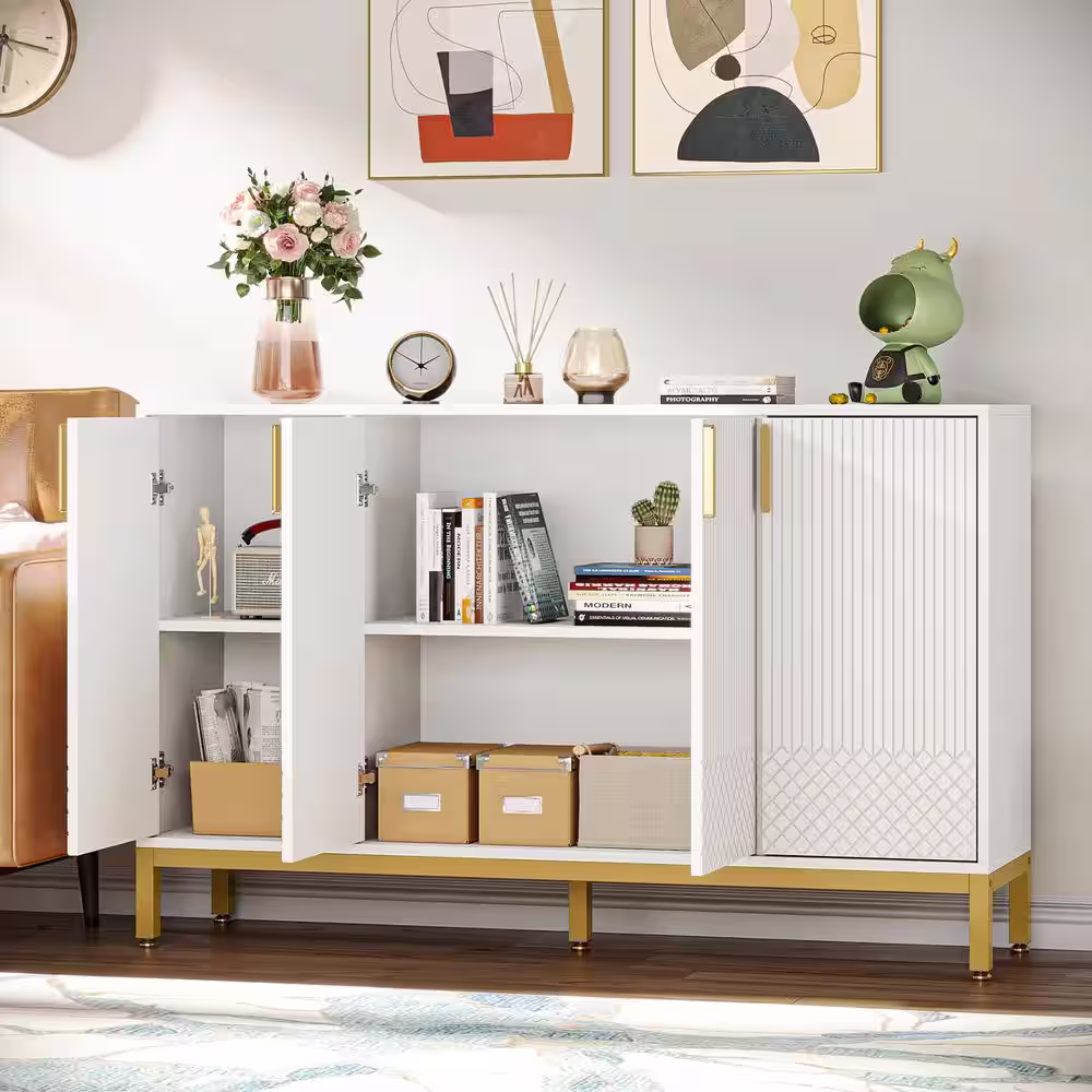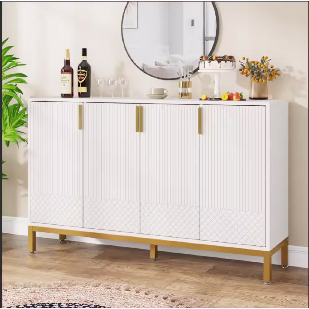 None Modern White Particle Board 59 in. Kitchen Sideboard With Storage Cabinet for Living Room Kitchen Dining Room