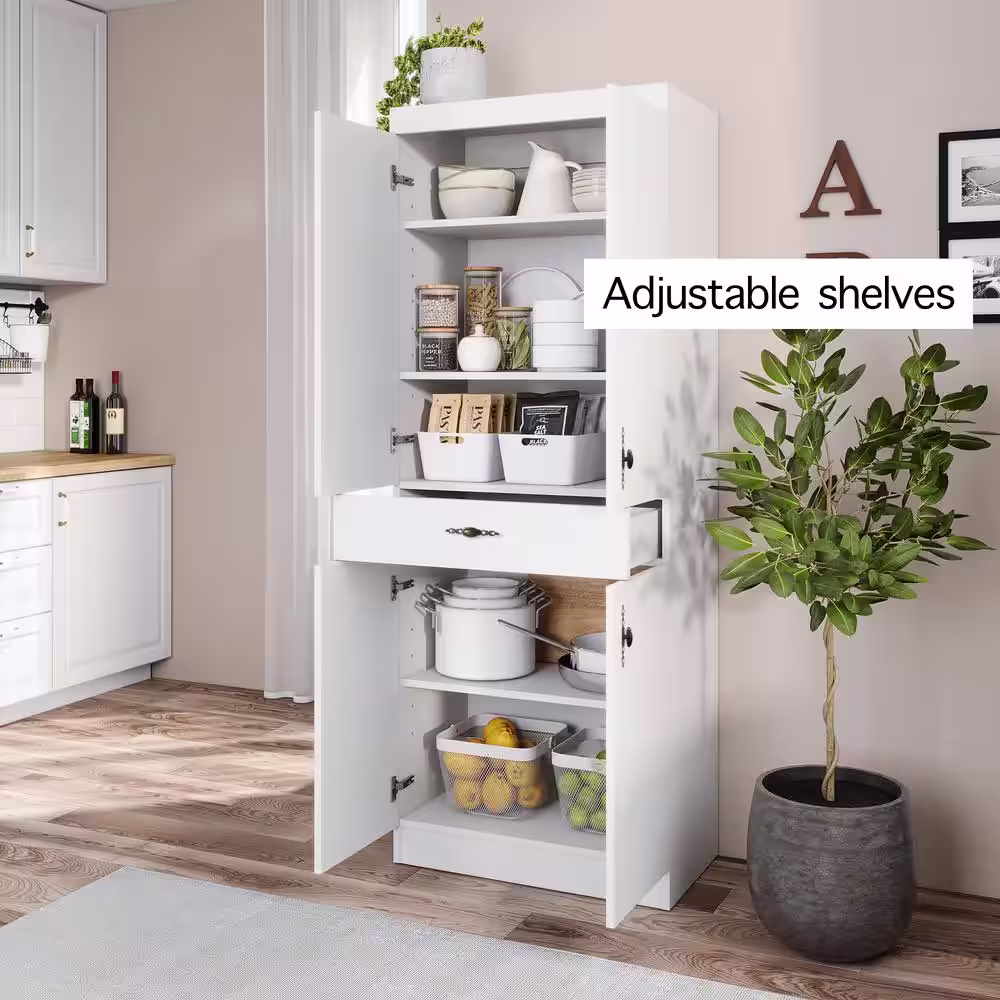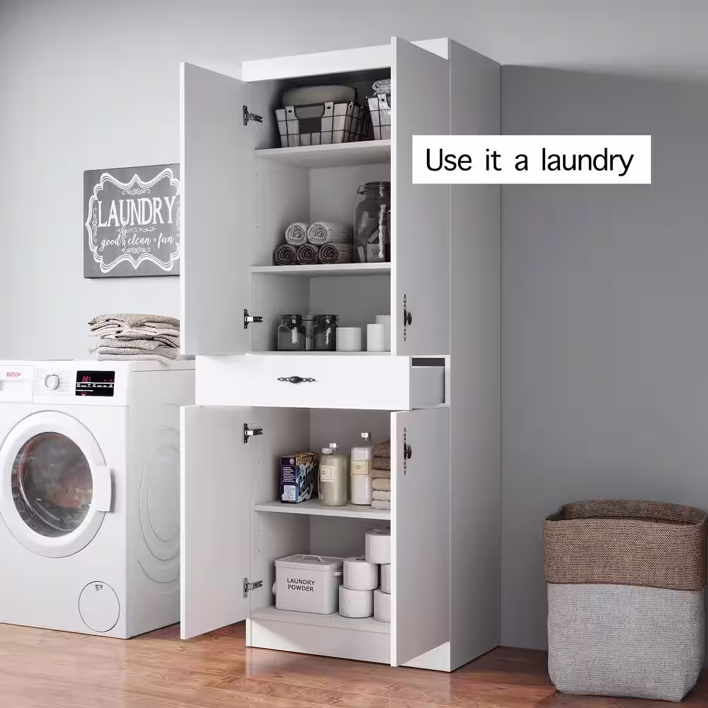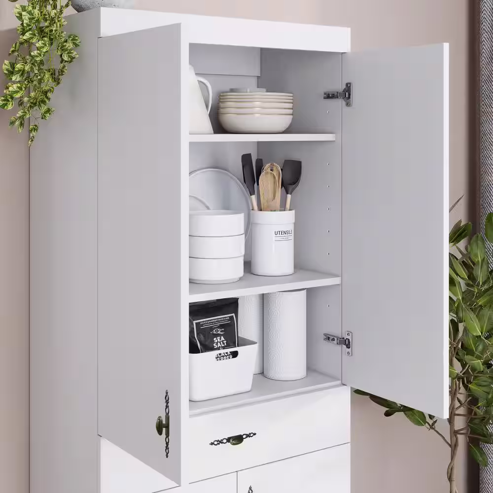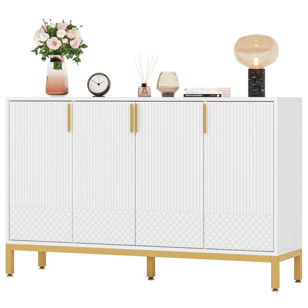 None Modern White Particle Board 59 in. Kitchen Sideboard With Storage Cabinet for Living Room Kitchen Dining Room