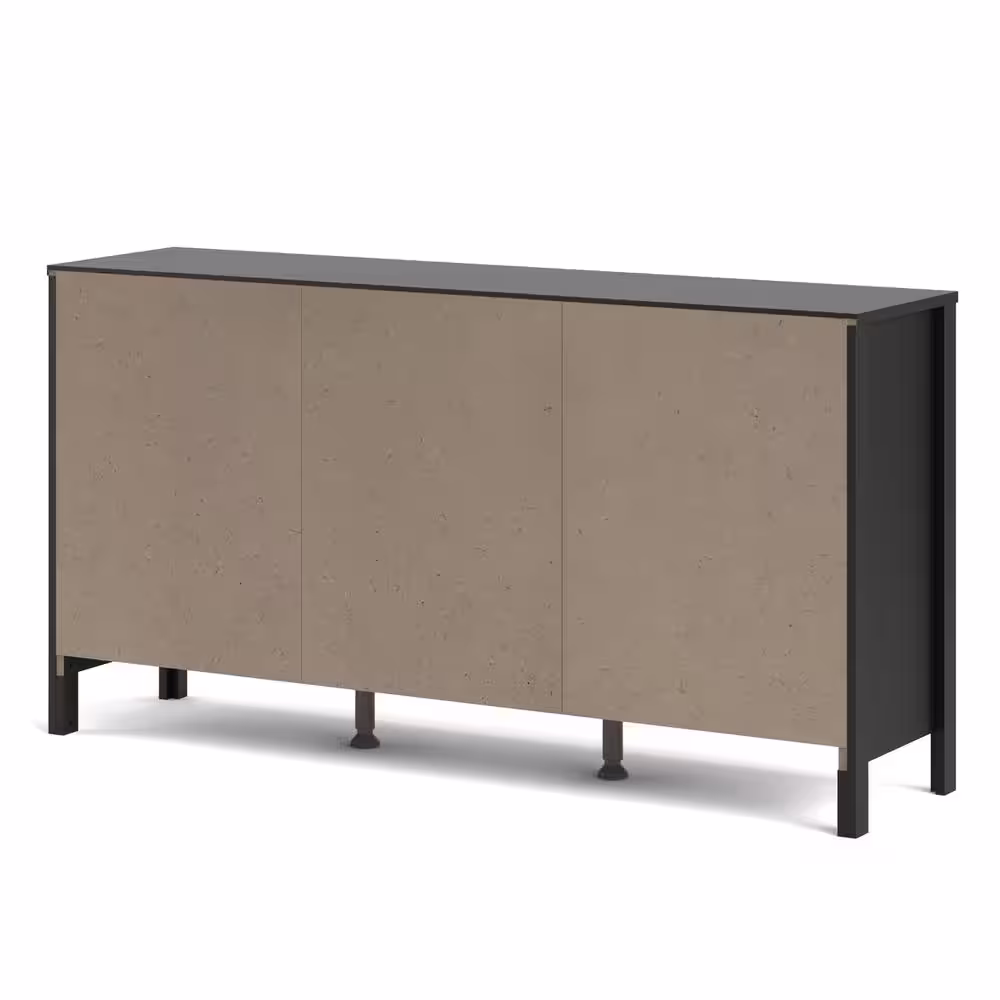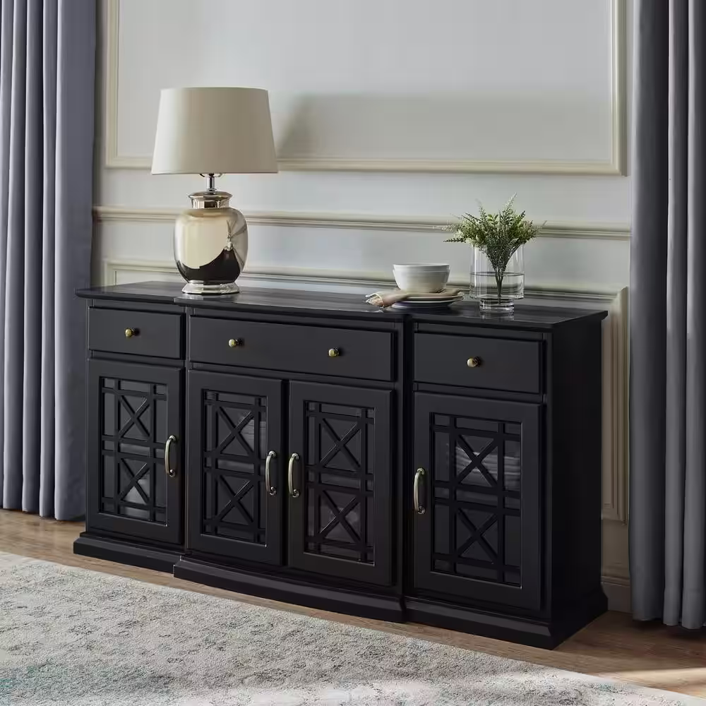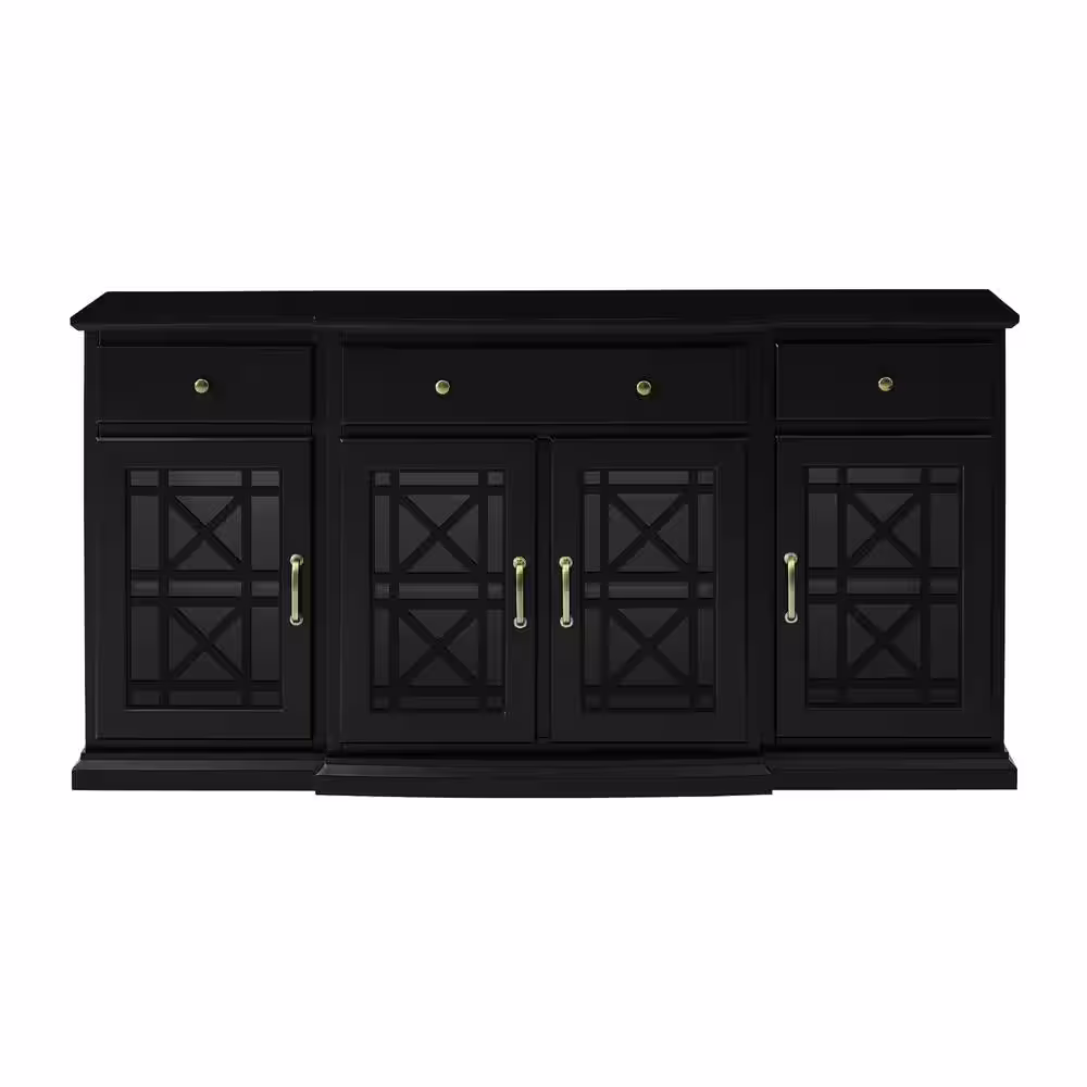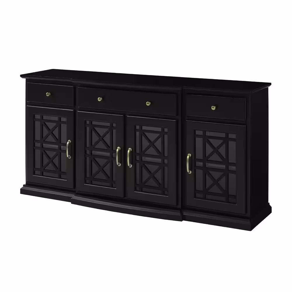 Welwick Designs Landon Fretwork 60 in. Black 4-Door Sideboard with 3-Drawers