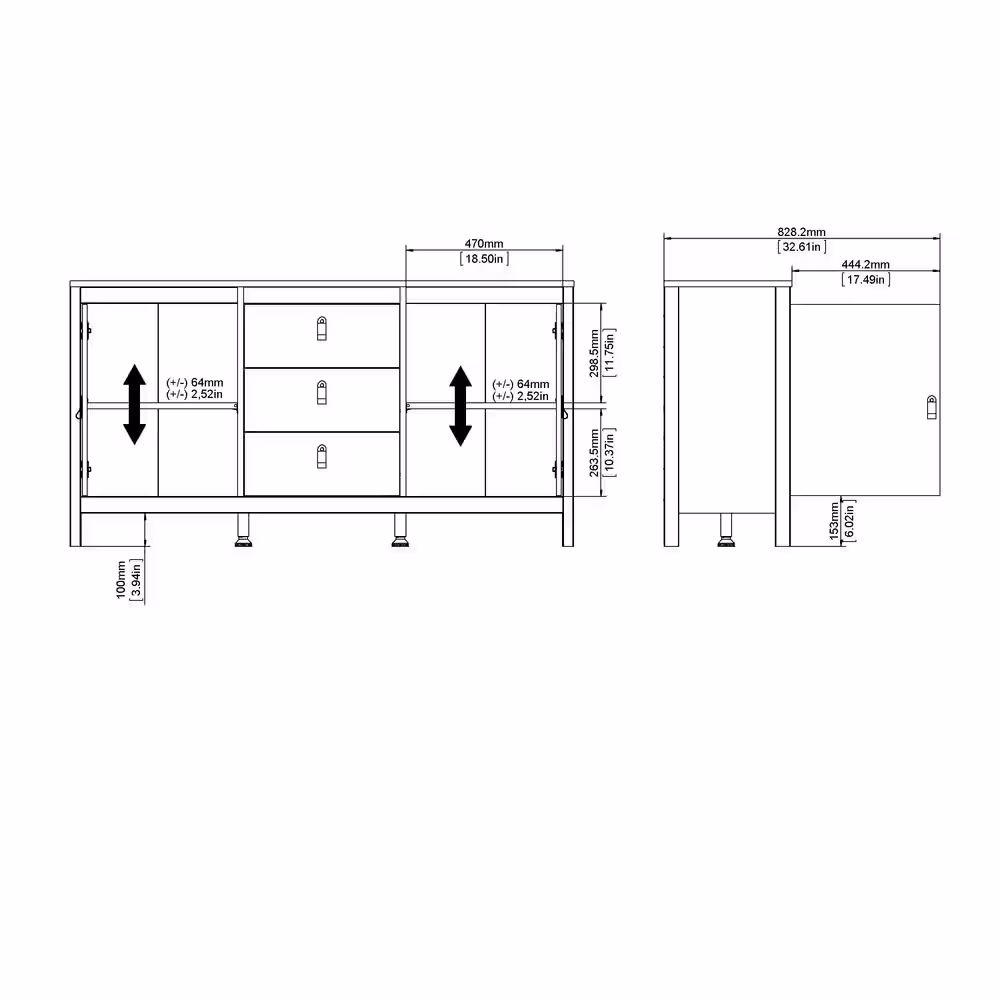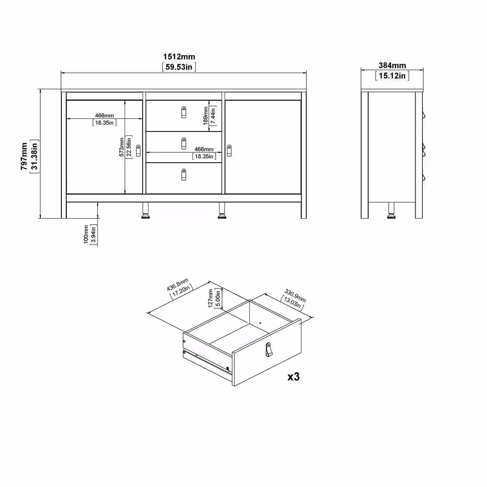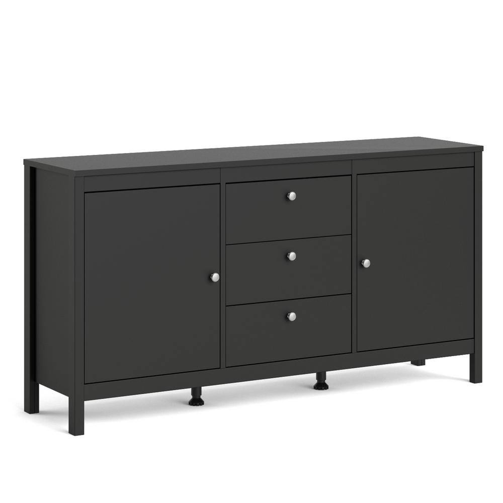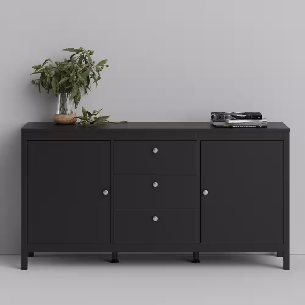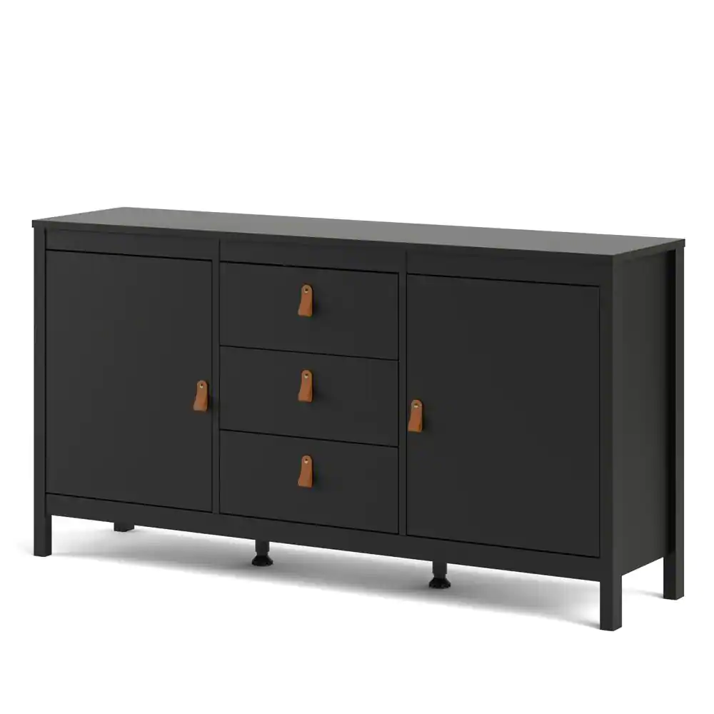 Welwick Designs Landon Fretwork 60 in. Black 4-Door Sideboard with 3-Drawers