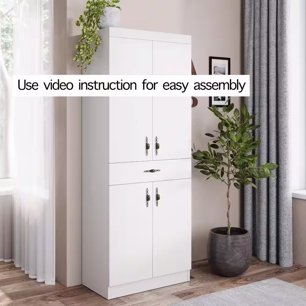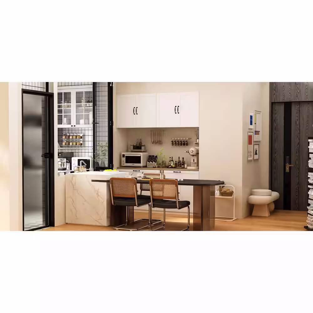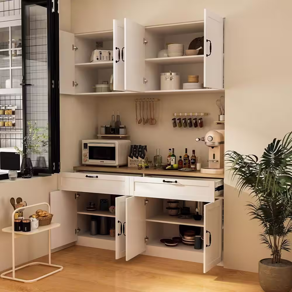 None White Wooden Sideboard, Storage Cabinet, with Wall Mounted Kitchen Cabinet( Two Parts )