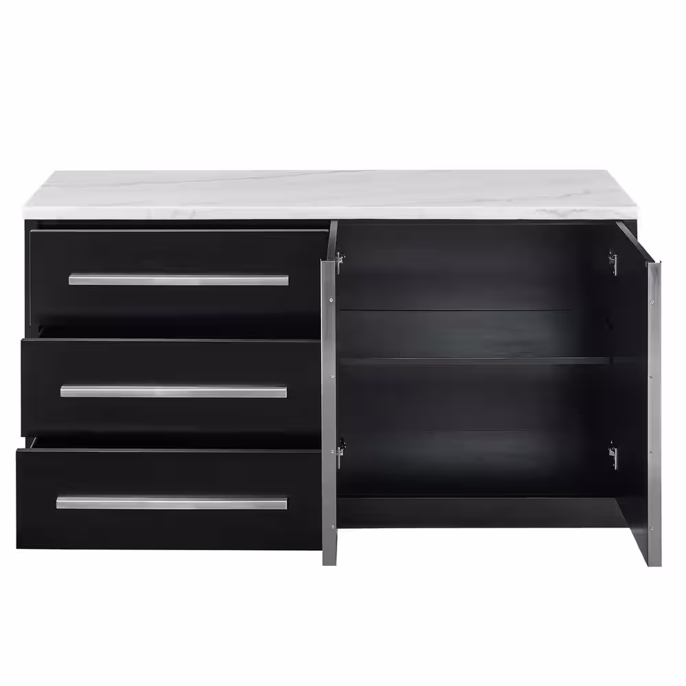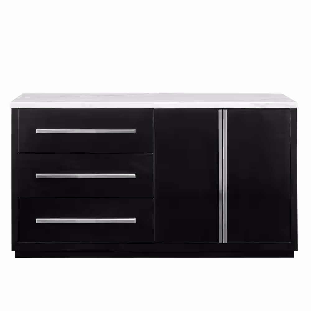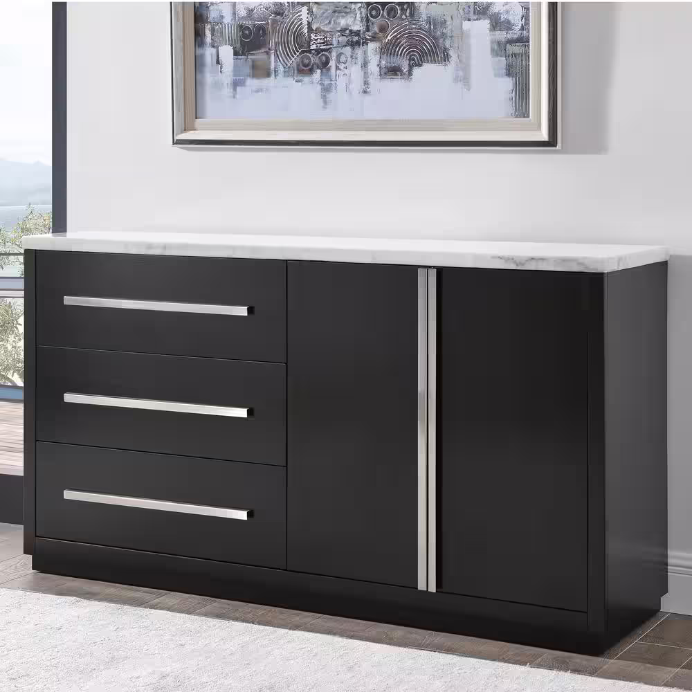 Steve Silver Camila Ebony and Marble 66 in. Sideboard with White Marble Top and Storage