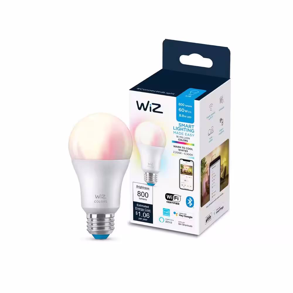 WIZ 60-Watt Equivalent A19 Dimmable Smart LED Color and Tunable White Wi-Fi Connected Light Bulb