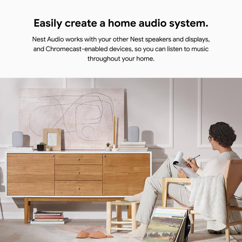 Google Nest Audio - Smart Speaker with Google Assistant in Chalk (2-Pack)