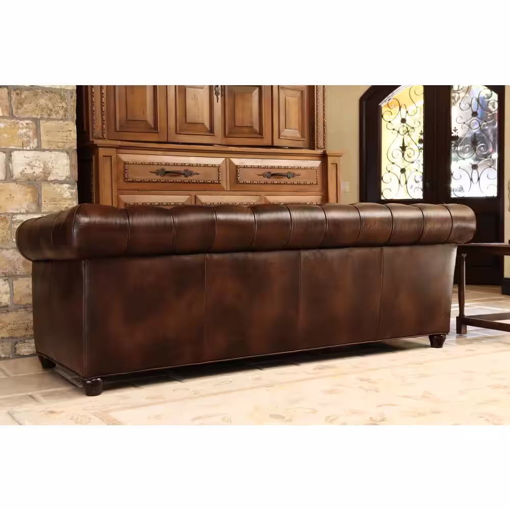DEVONÂ &Â CLAIRE 84 in. W x 39 in. D x 30 in. H Tony Tufted Leather Sofa in Brown