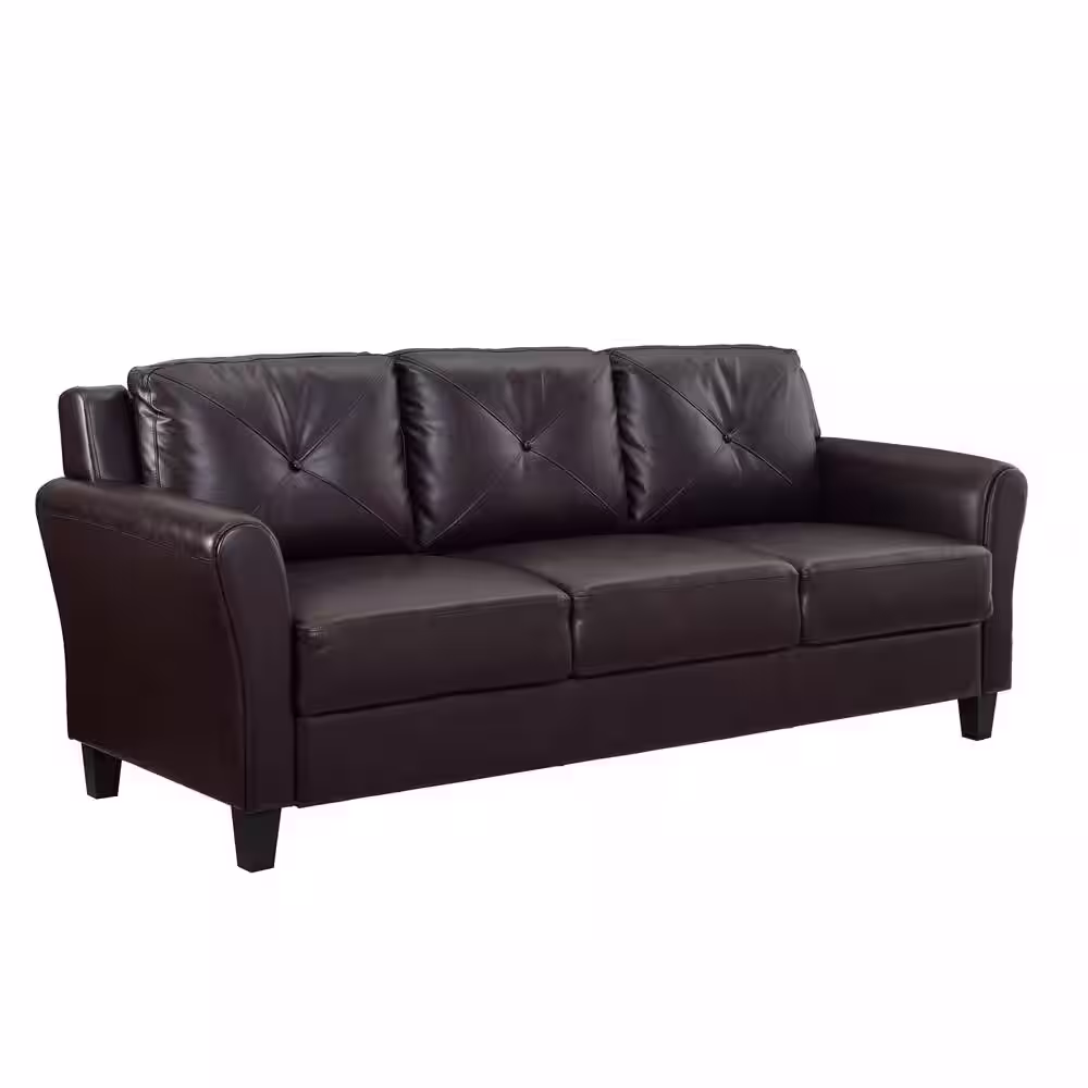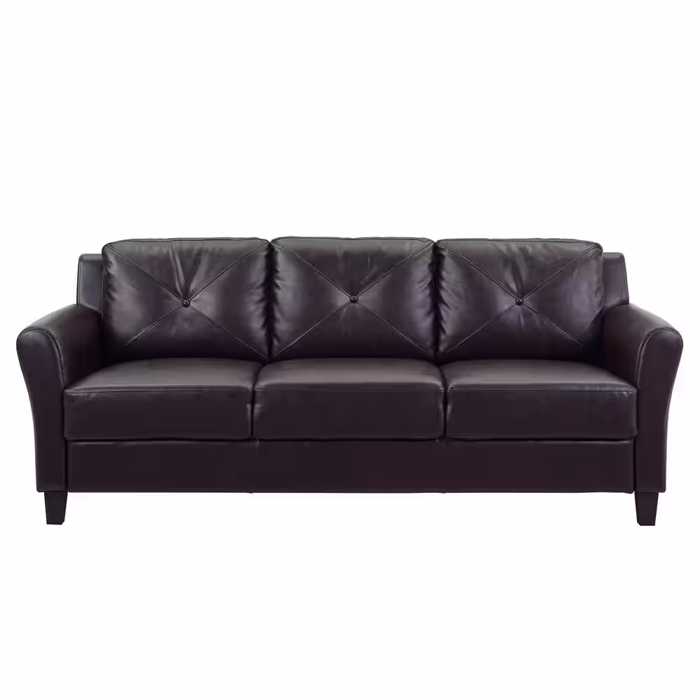 US Pride Furniture Sanuel 79.2 in.W Pillow Top Round Arm Faux Leather Mid-Century straight 3-Seater Sofa in Black