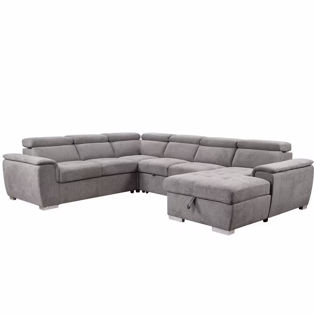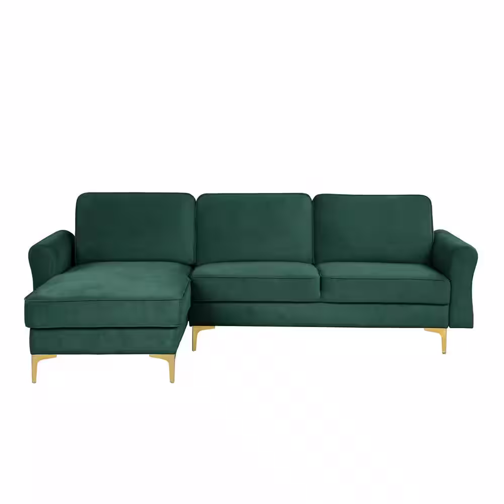 Lifestyle Solutions Landon 98.43 in. Rolled Arm Fabric L-Shaped Sectional Sofa in Green with USB Port