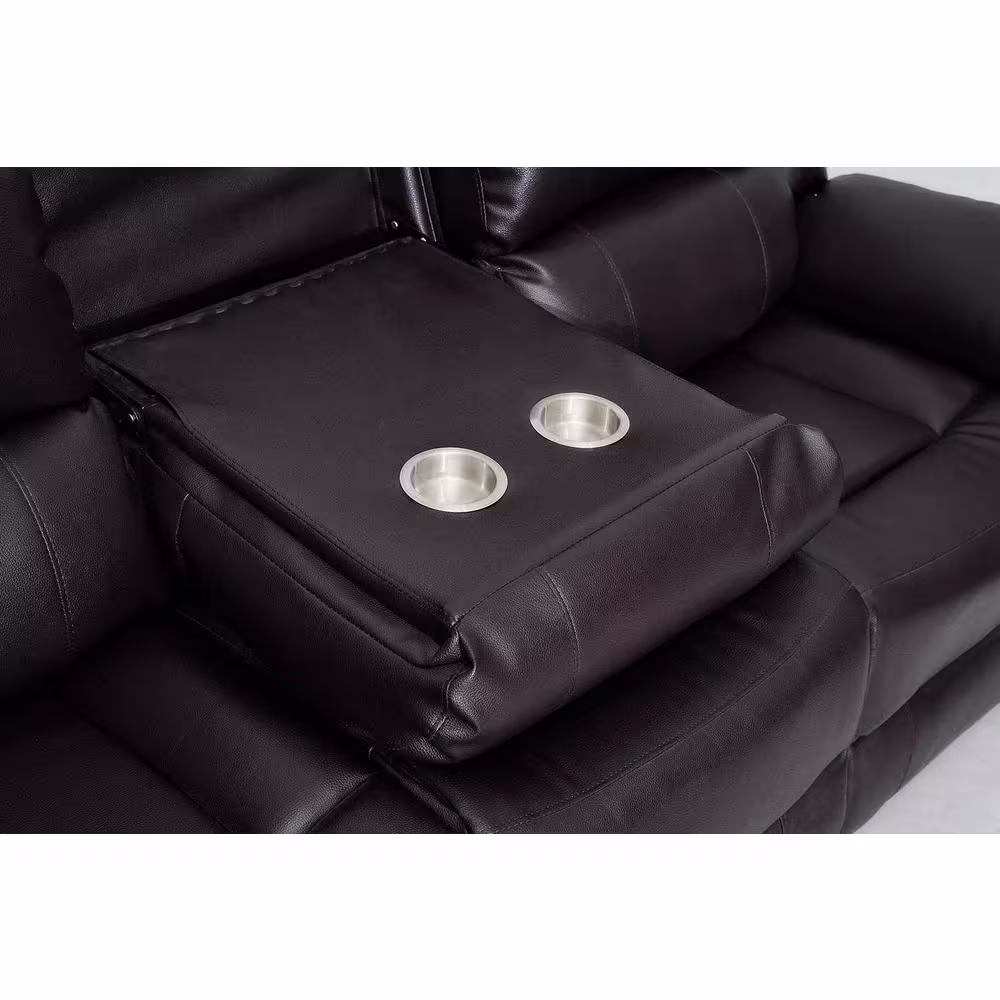 hzlagm Yingj 79 in. Wide Pillow Top Arm Faux Leather Straight Reclining and Storage Sofa in Brown