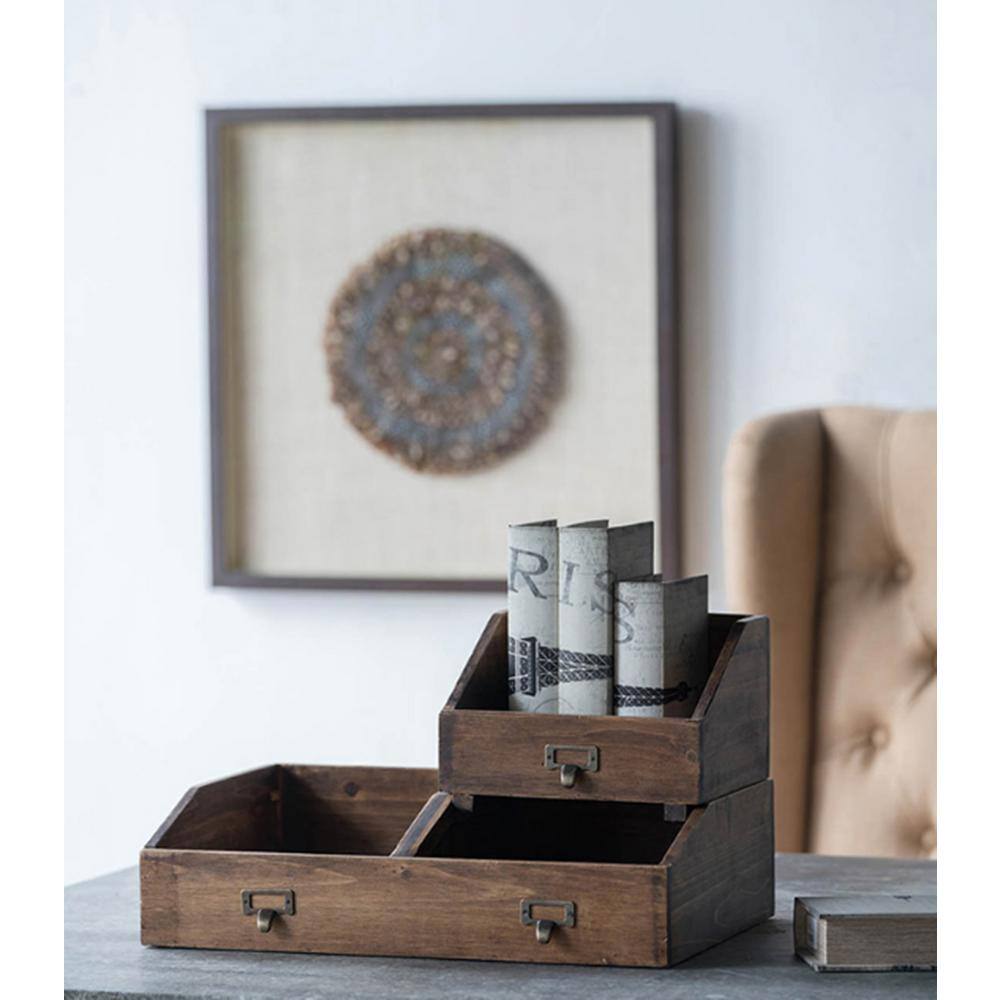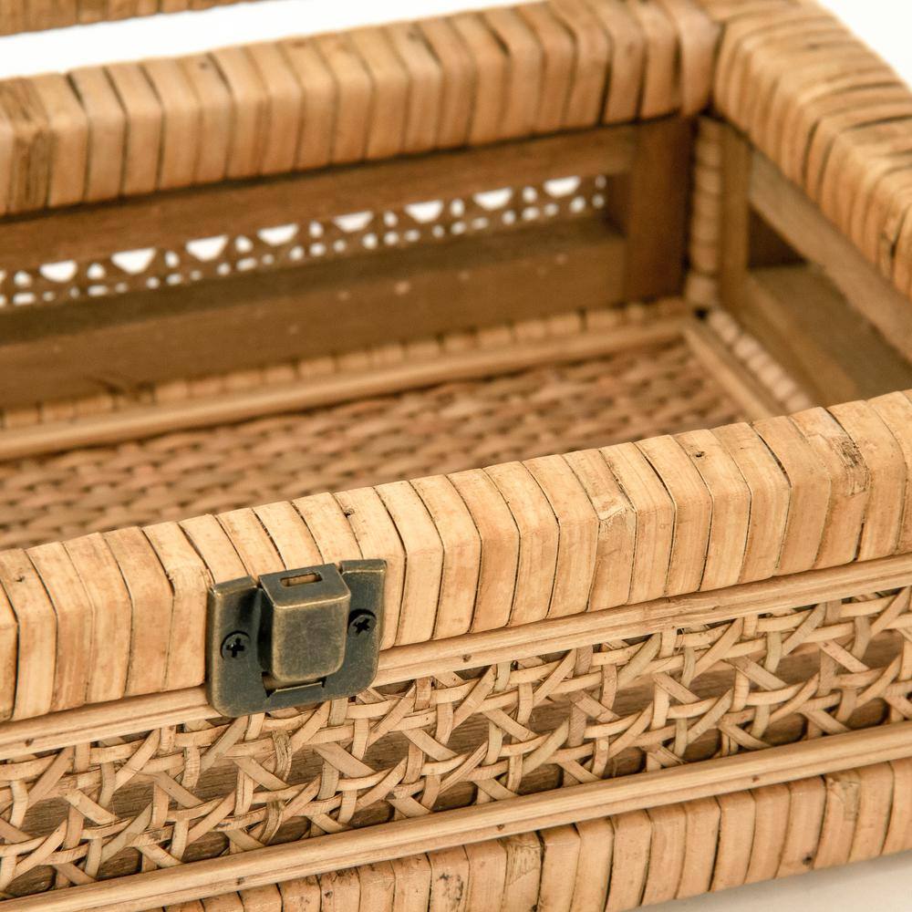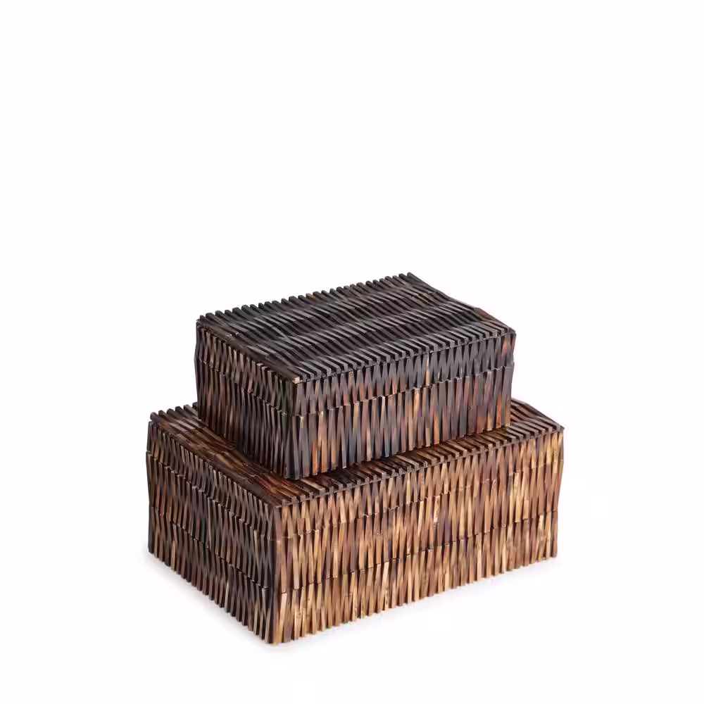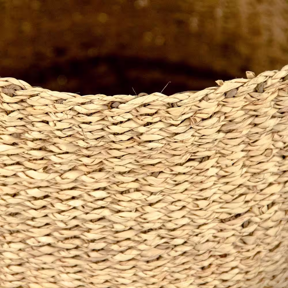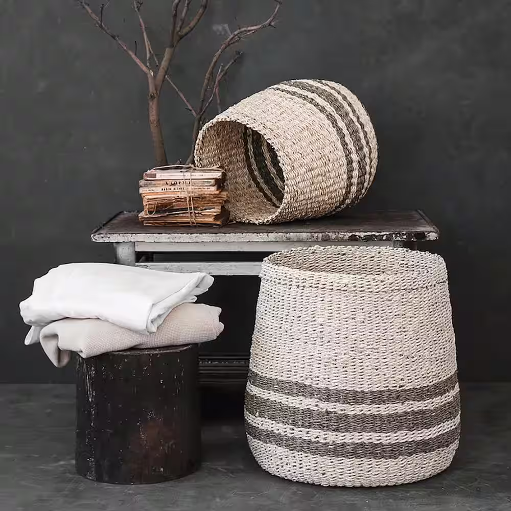 Zentique Concave Hand Woven Wicker Seagrass and Palm Leaf with Dark Pin Stripes Large Basket