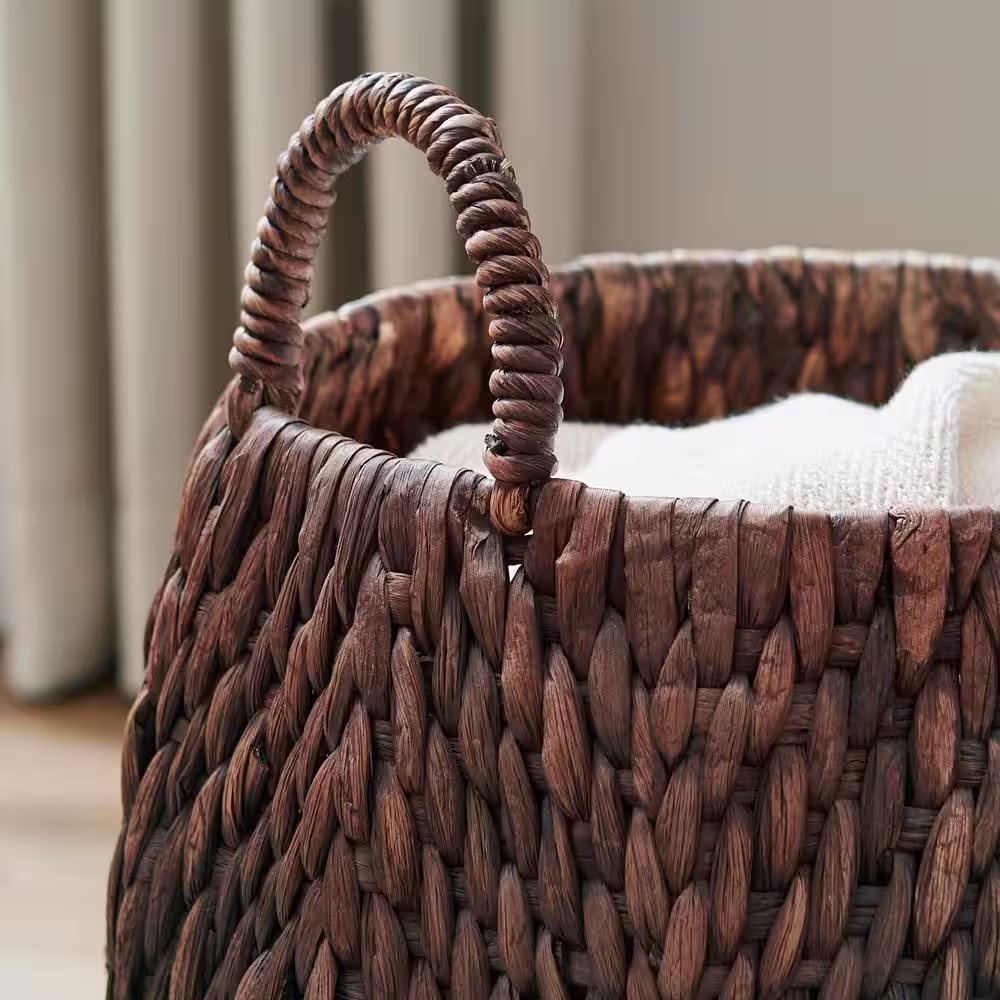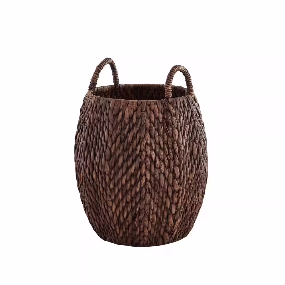 Home Decorators Collection Round Brown Woven Water Hyacinth Decorative Poppy Basket