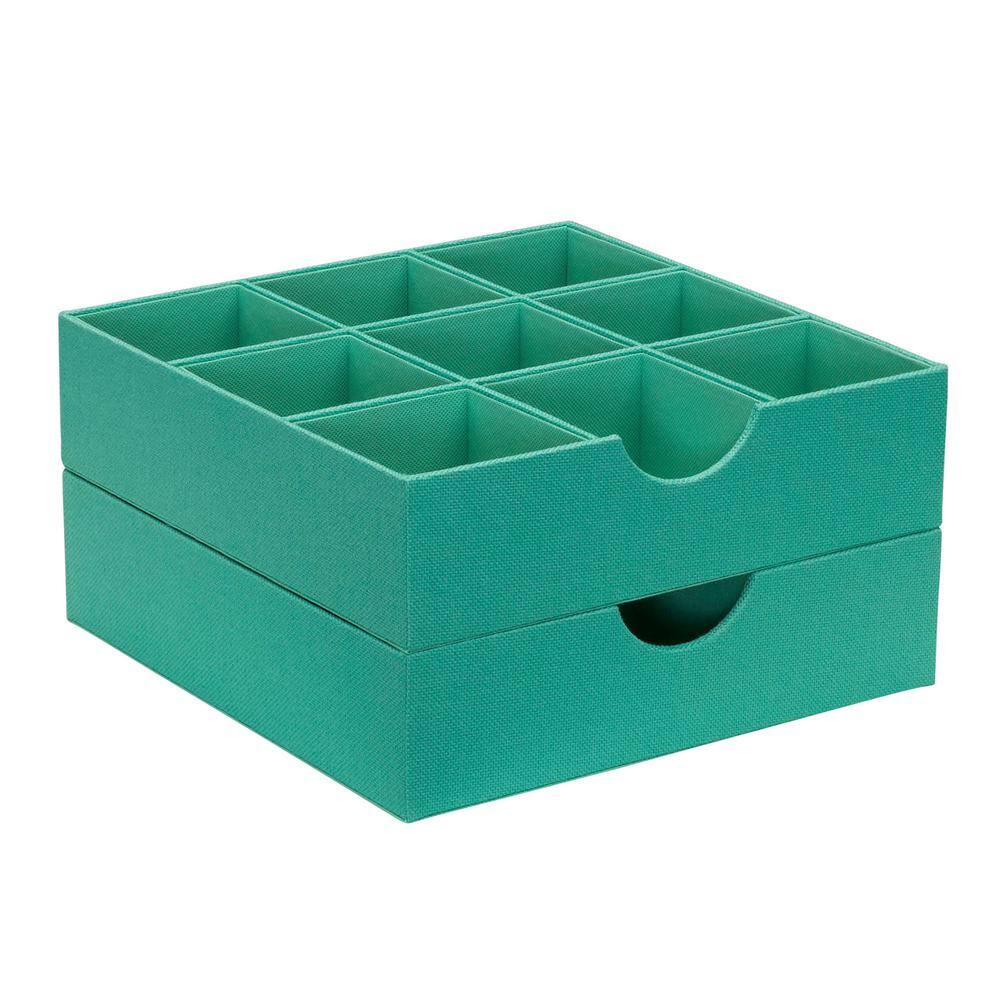 HOUSEHOLD ESSENTIALS 6 in. W x 3 in. H 1 Drawer Seafoam 3-Section Hard-Sided Linen Trays (2-Pack)
